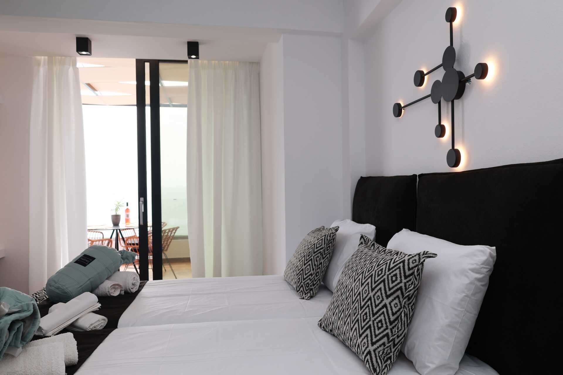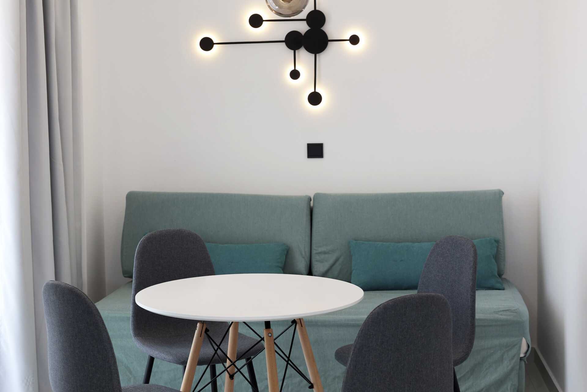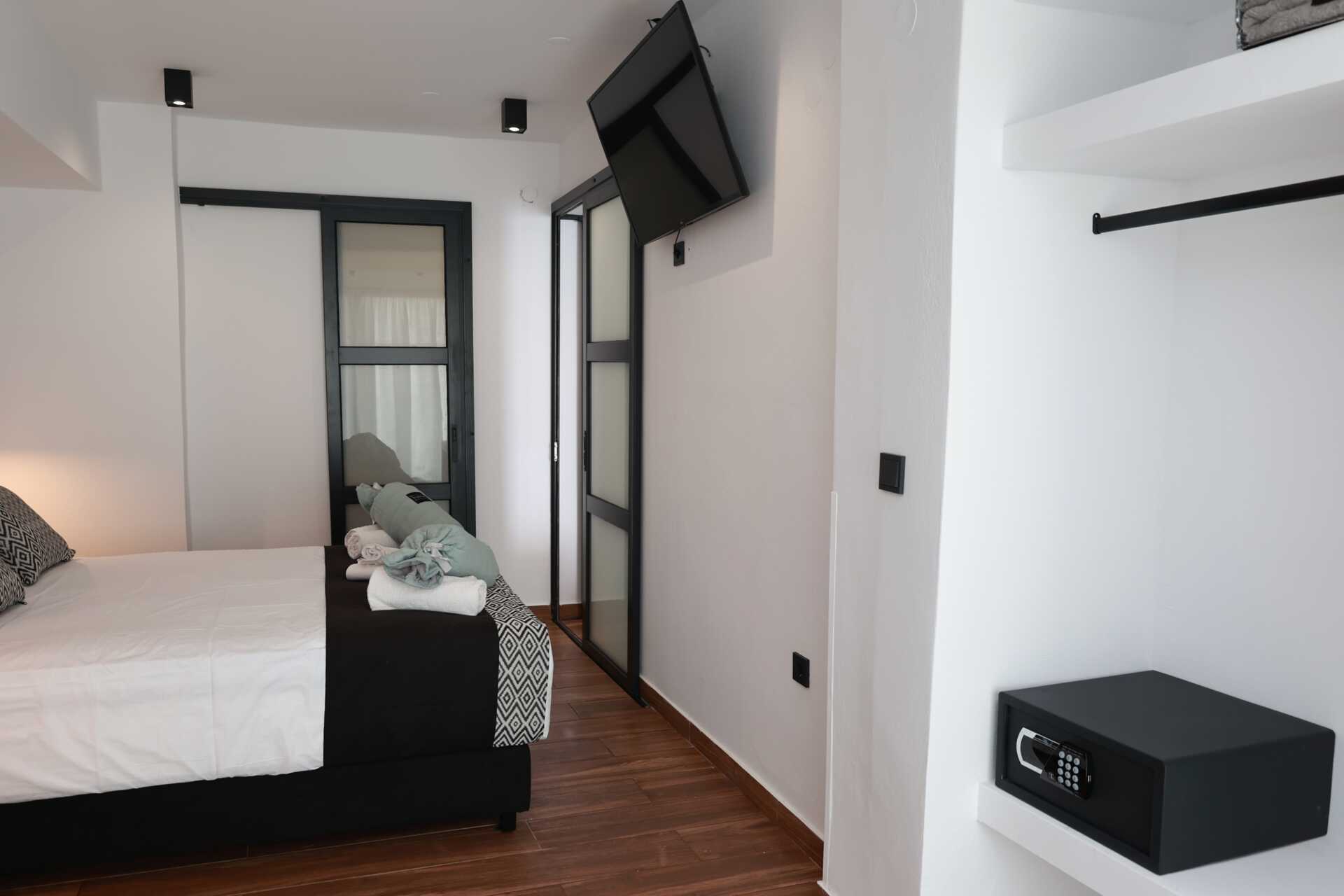 Enrumslägenhet med balkong och havsutsikt. Sovrum kombinerat med minikök. En dubbelsäng eller två enkelsängar. Minikök med kokplattor, ugn, kylskåp, kaffebryggare, vattenkokare, brödrost, smörgåsgrill och enkel köksutrustning. Wifi, luftkonditionering och deponering ingår. Tv med lokala kanaler. Hårtork. Badrum med badkar eller dusch samt wc. Ingång via uteplatsen. Städning 5 ggr/vecka.