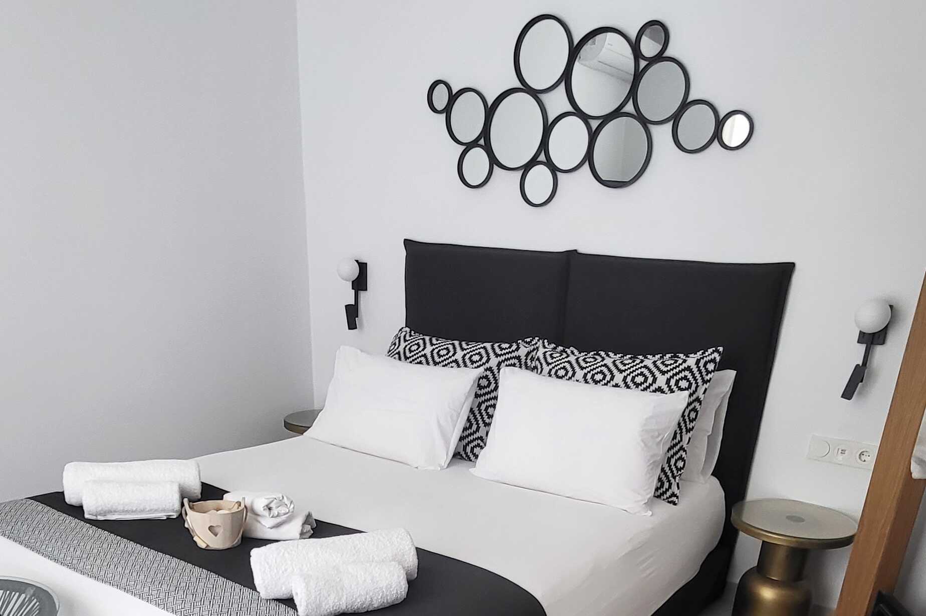 Enrumslägenhet med balkong och havsutsikt. Sovrum kombinerat med minikök. En dubbelsäng. Minikök med kokplattor, kylskåp, diskmaskin, mikrovågsugn och enkel köksutrustning. Nespressomaskin - sex kapslar ingår. Tv med internationella kanaler samt Netflix. Tvättmaskin och steamer. Tvättmedel och diskmedel till maskinerna ingår. Wifi, luftkonditionering och deponering ingår. Badrockar och tofflor. Badrum med dusch och wc. Städning 7 ggr/vecka.