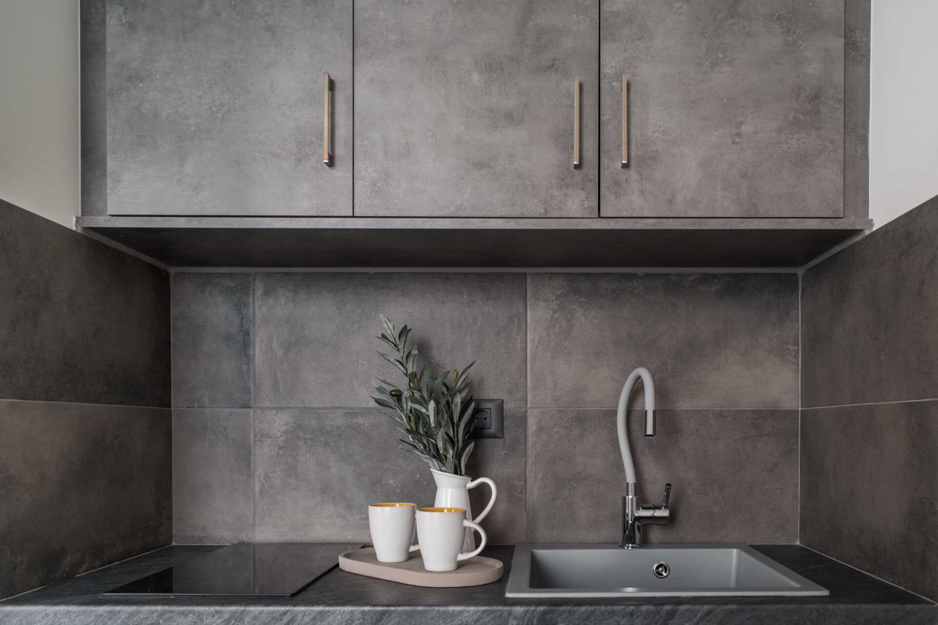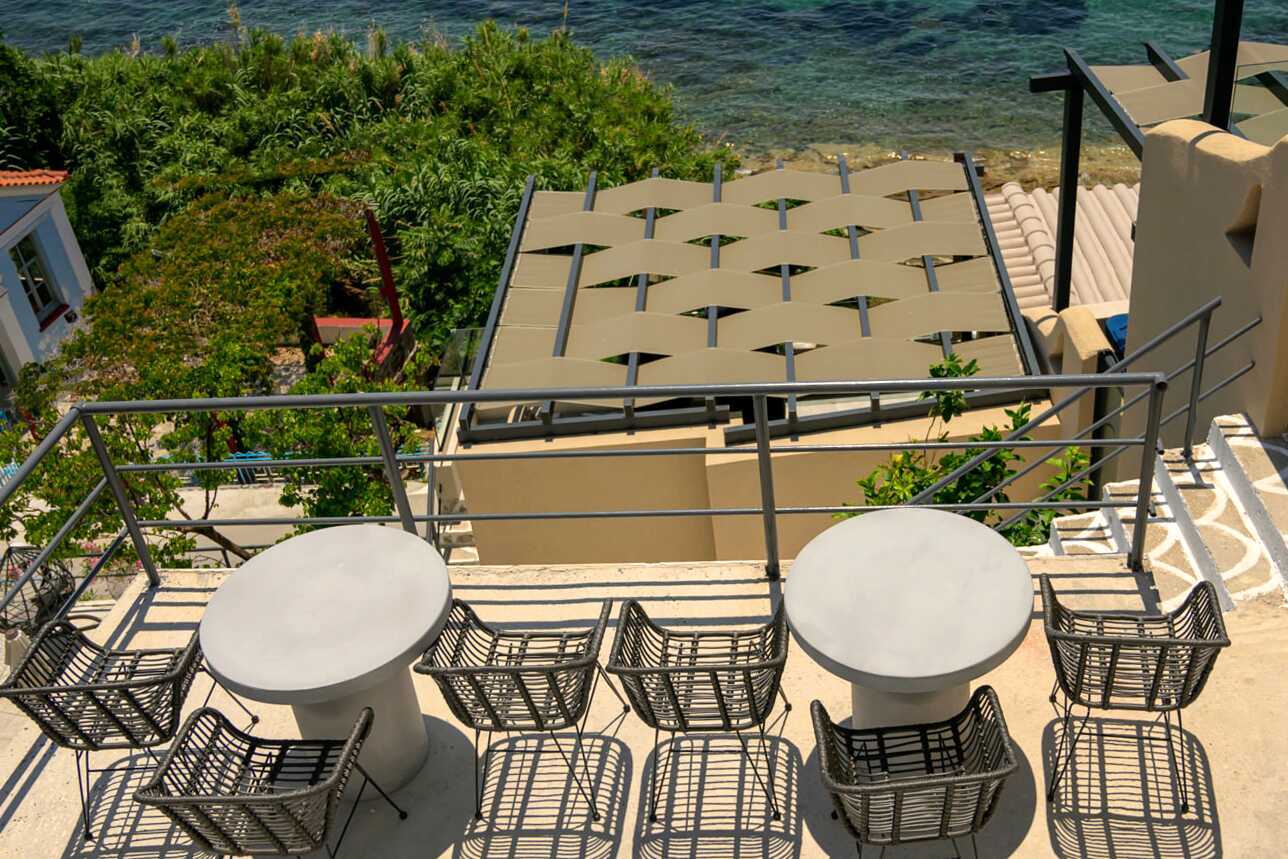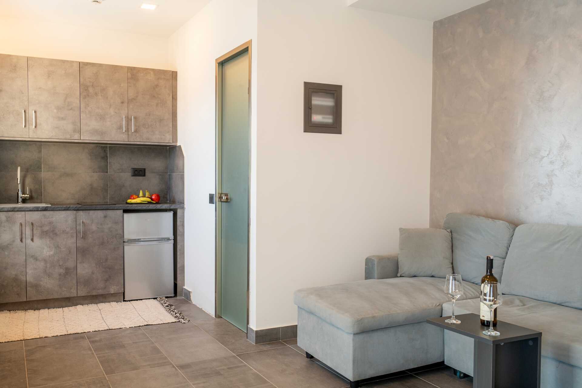 Enrumslägenhet med balkong och havsutsikt. Sovrum kombinerat med minikök. En dubbelsäng. Möjlighet till extrabädd i bäddsoffa. Minikök med kokplattor, kylskåp med en liten frys, mikrovågsugn, smörgåsgrill och enkel köksutrustning. Wifi, luftkonditionering och deponering ingår. Tv med internationella kanaler. Badrockar. Hårtork. Badrum med dusch samt wc. Städning 7 ggr/vecka.