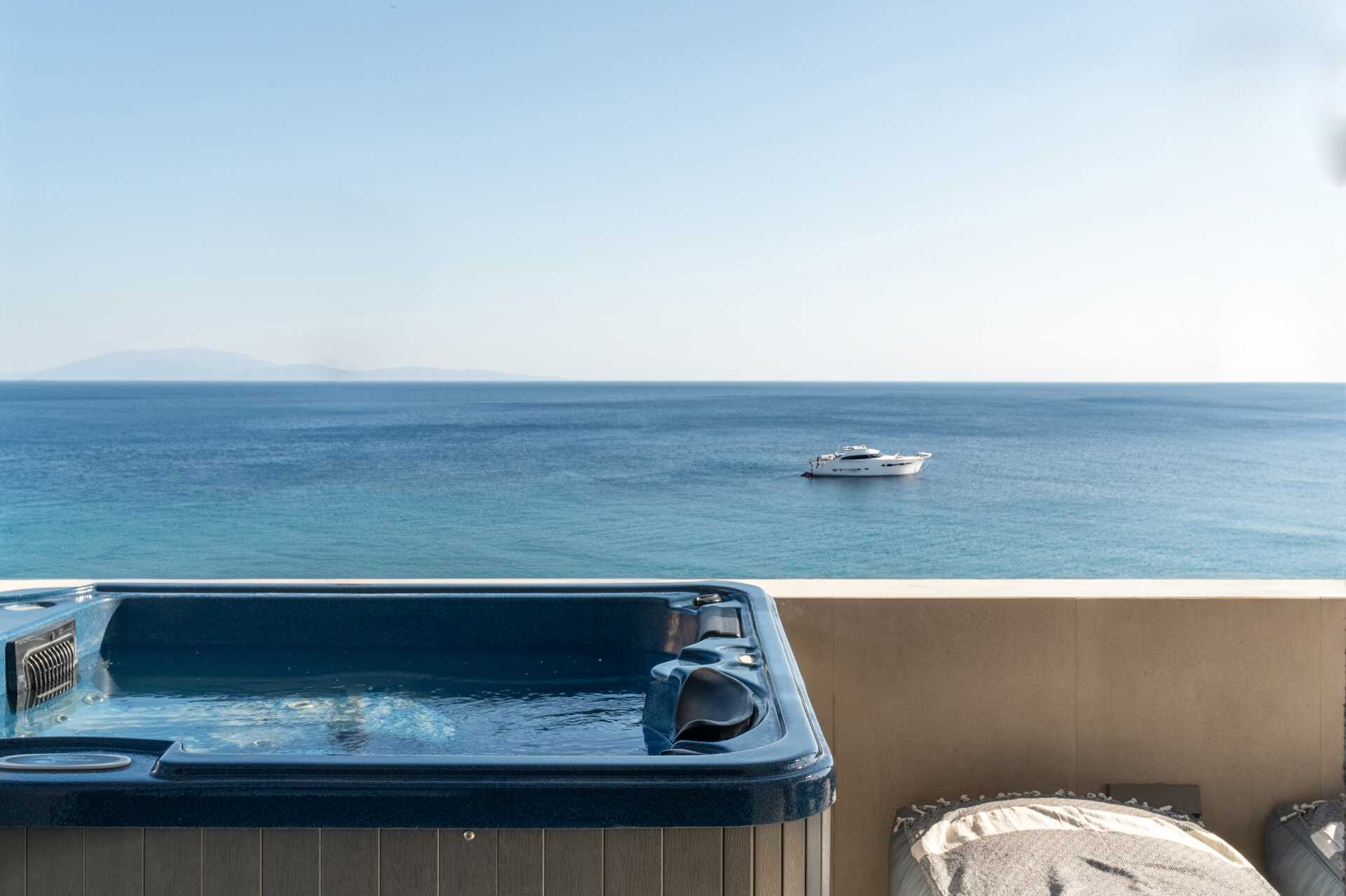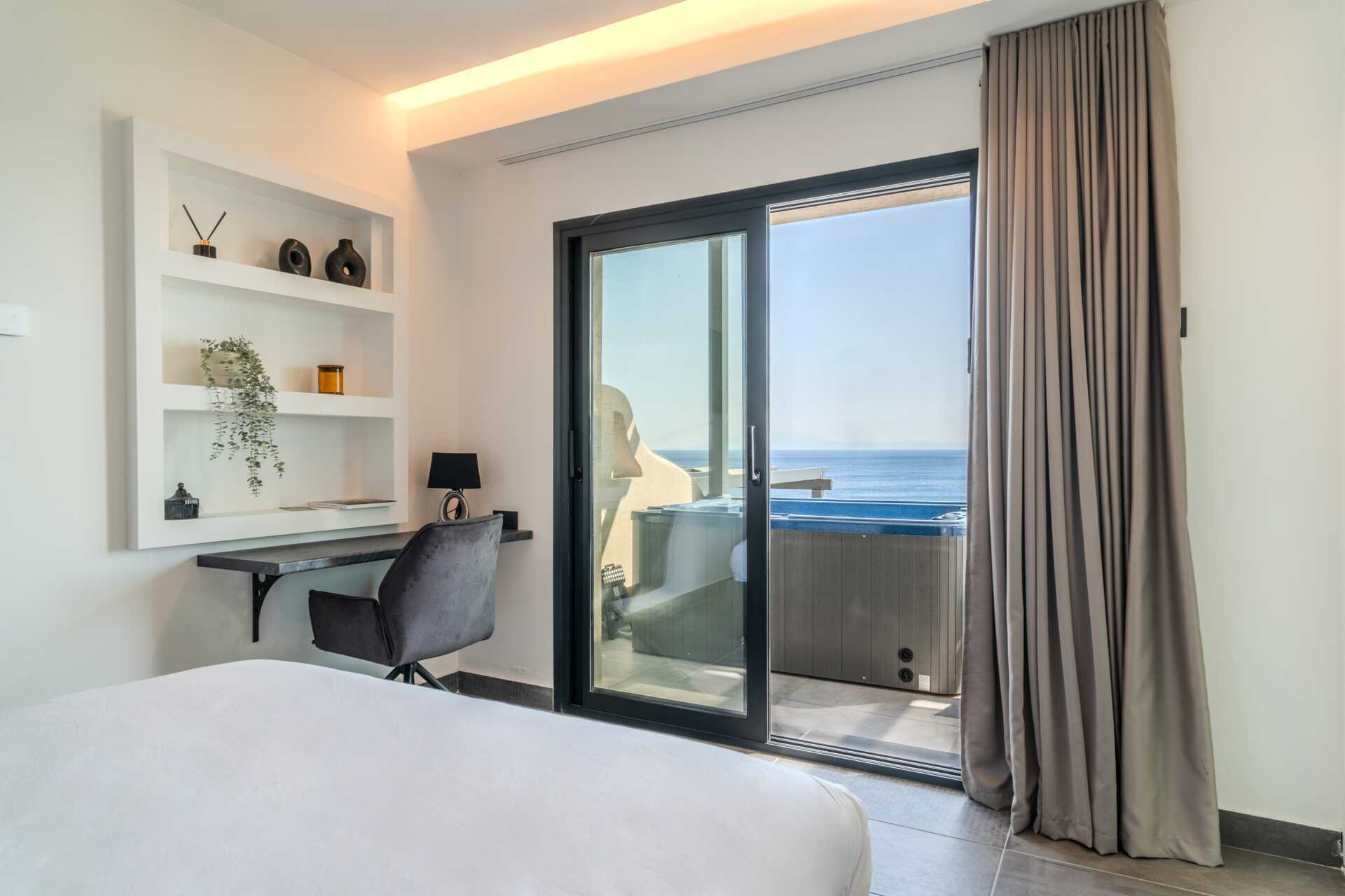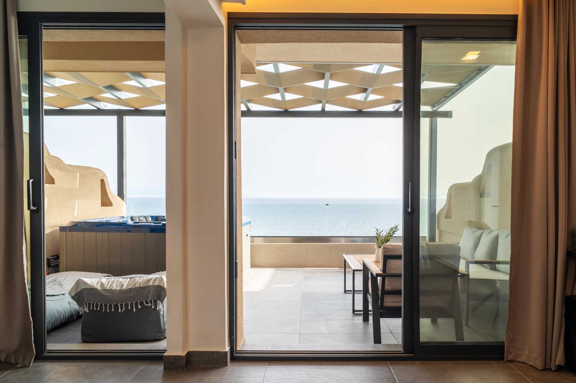 Enrumslägenhet med balkong och havsutsikt. På balkongen finns en jacuzzi samt solstolar. Sovrum kombinerat med minikök. En dubbelsäng. Möjlighet till extrabädd. Minikök med kokplattor, kylskåp, mikrovågsugn, brödrost och enkel köksutrustning. Wifi, luftkonditionering och deponering ingår. Tv med internationella kanaler. Steamer. Badrockar. Hårtork. Badrum med dusch samt wc. Städning 7 ggr/vecka.
