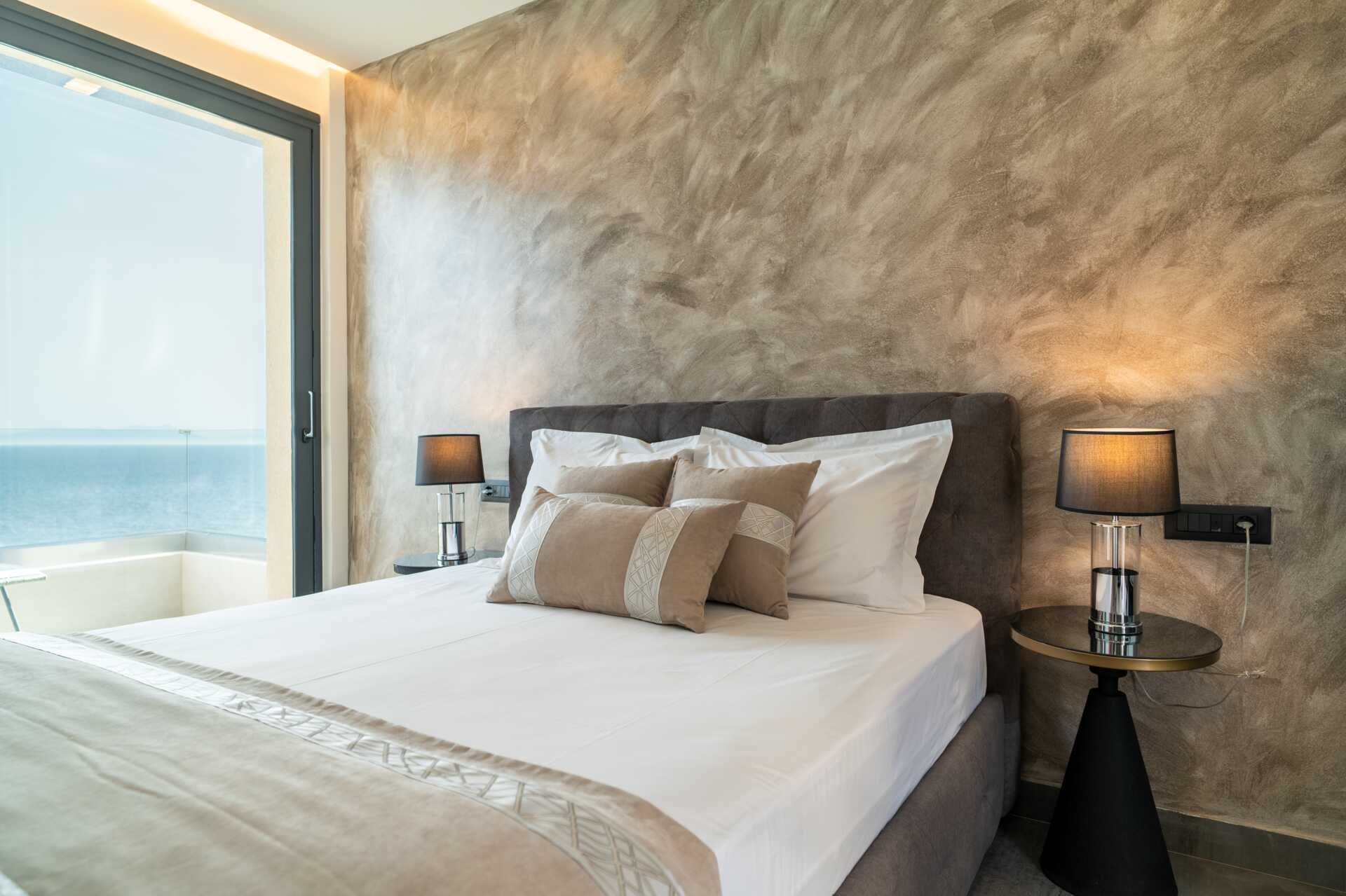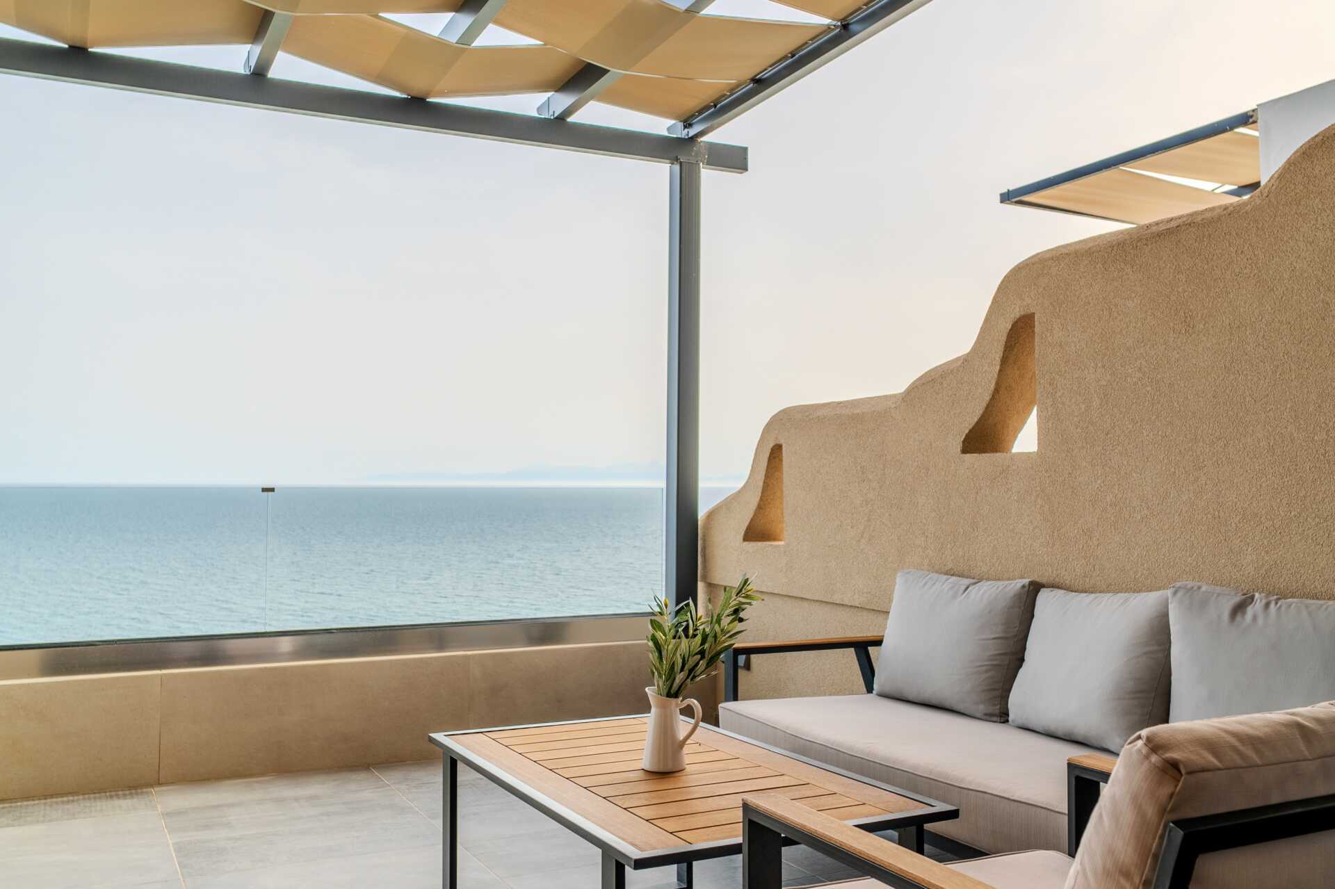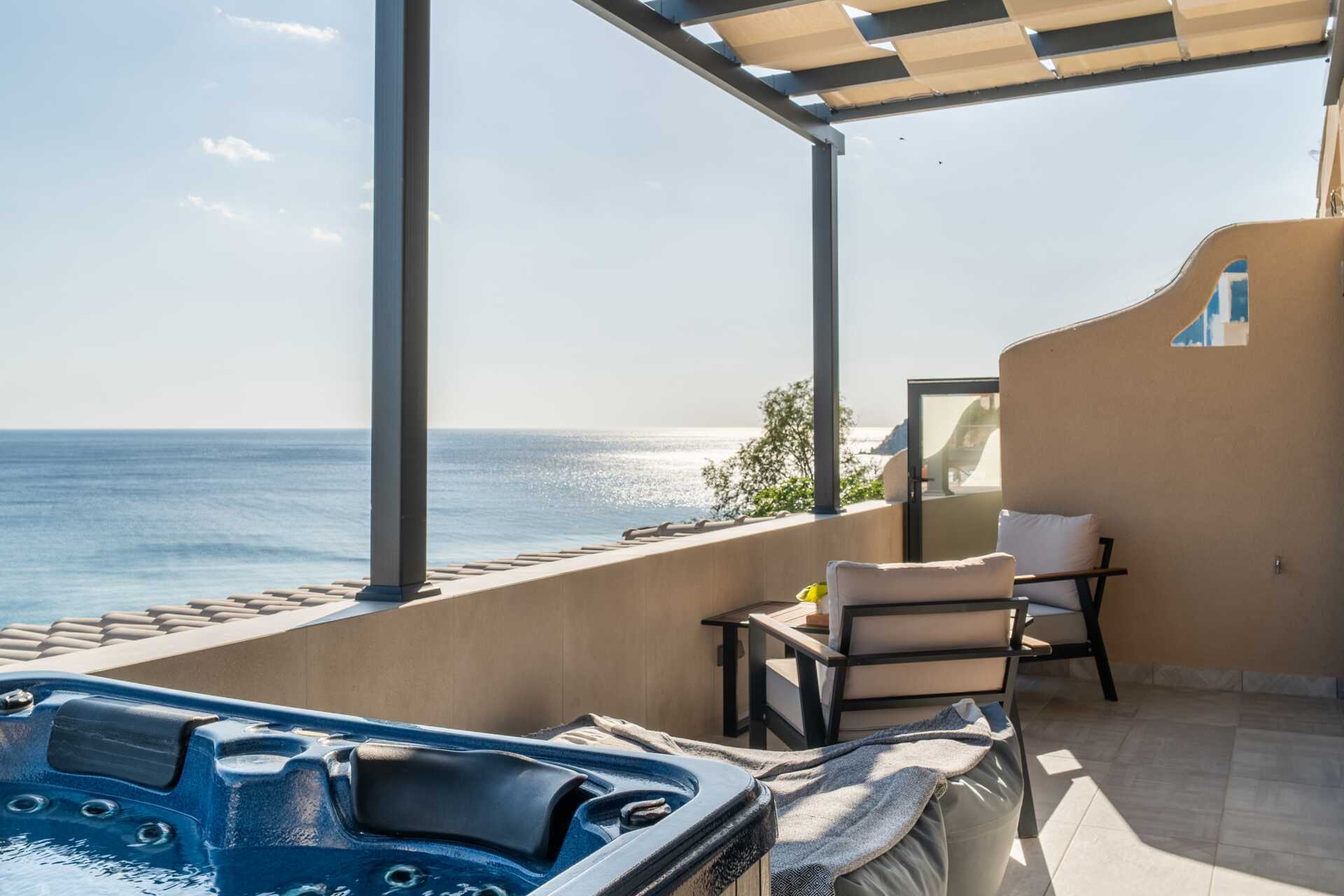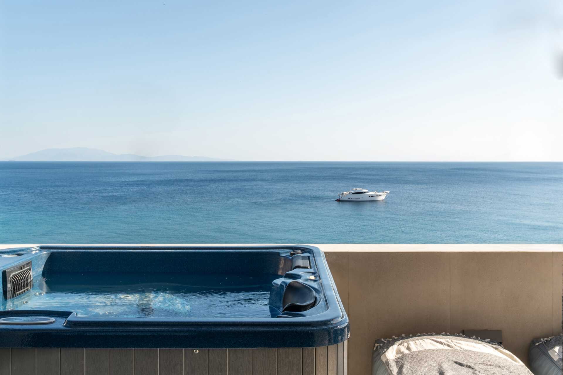 Enrumslägenhet med balkong och havsutsikt. På balkongen finns en jacuzzi samt solstolar. Sovrum kombinerat med minikök. En dubbelsäng. Möjlighet till extrabädd. Minikök med kokplattor, kylskåp, mikrovågsugn, brödrost och enkel köksutrustning. Wifi, luftkonditionering och deponering ingår. Tv med internationella kanaler. Steamer. Badrockar. Hårtork. Badrum med dusch samt wc. Städning 7 ggr/vecka.