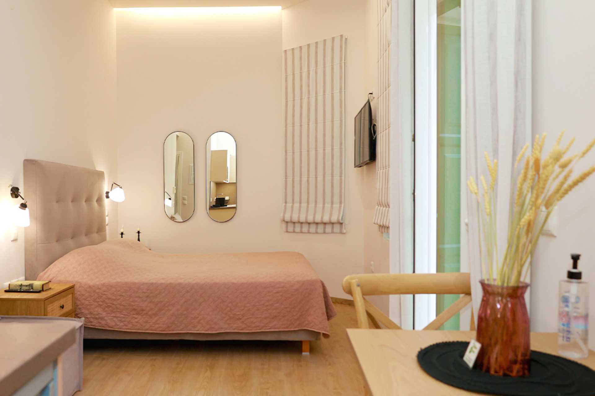 Större enrumslägenhet med fransk balkong. Sovrum kombinerat med minikök. En dubbelsäng eller två enkelsängar. Möjlighet till extrabädd i bäddsoffa. Minikök med kokplattor, kylskåp, mikrovågsugn, vattenkokare, kaffemaskin och enkel köksutrustning. Wifi, luftkonditionering och deponering ingår. Tv med internationella kanaler. Tvättmaskin. Badrockar. Hårtork. Badrum med dusch och wc. Städning 6 ggr/vecka.
