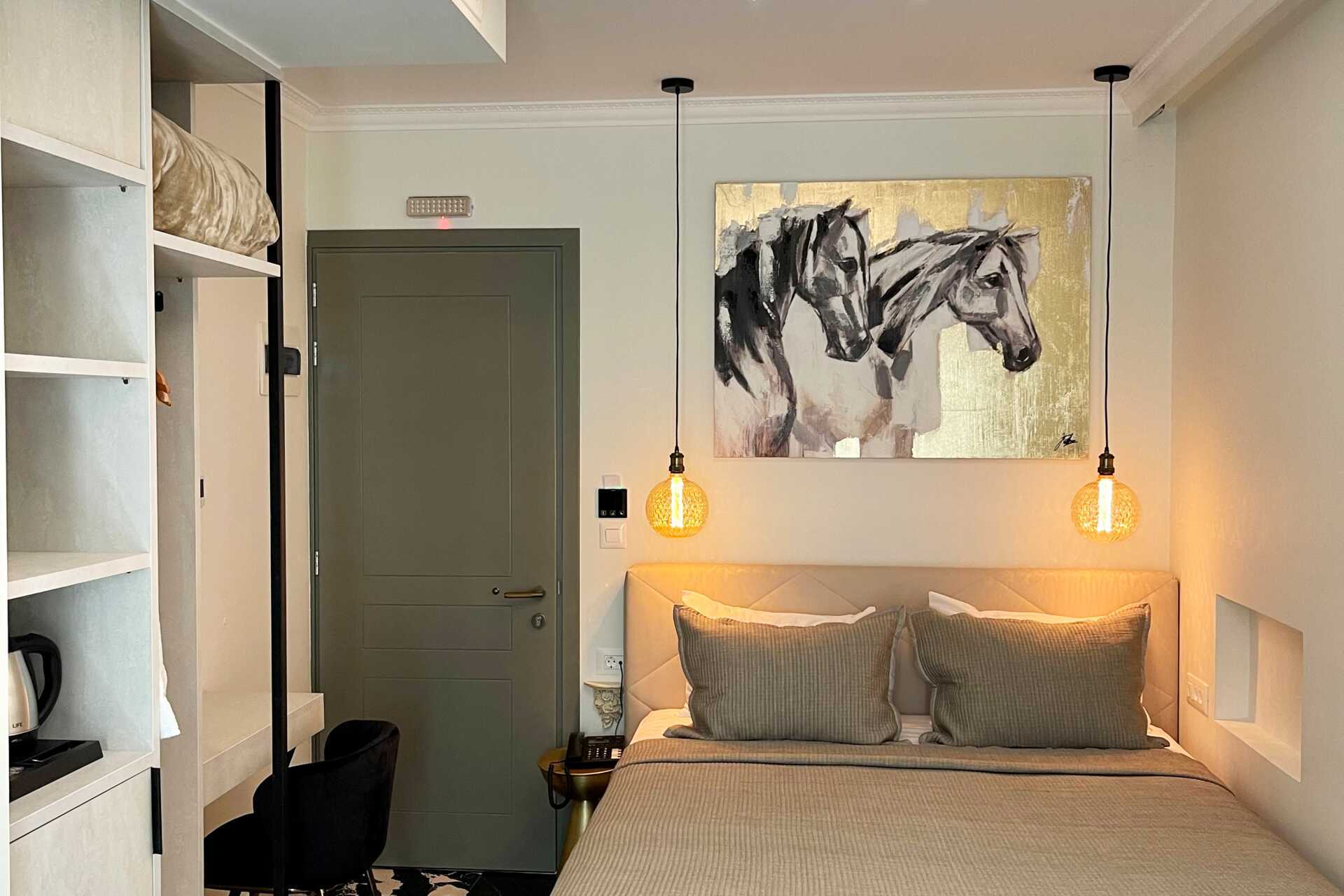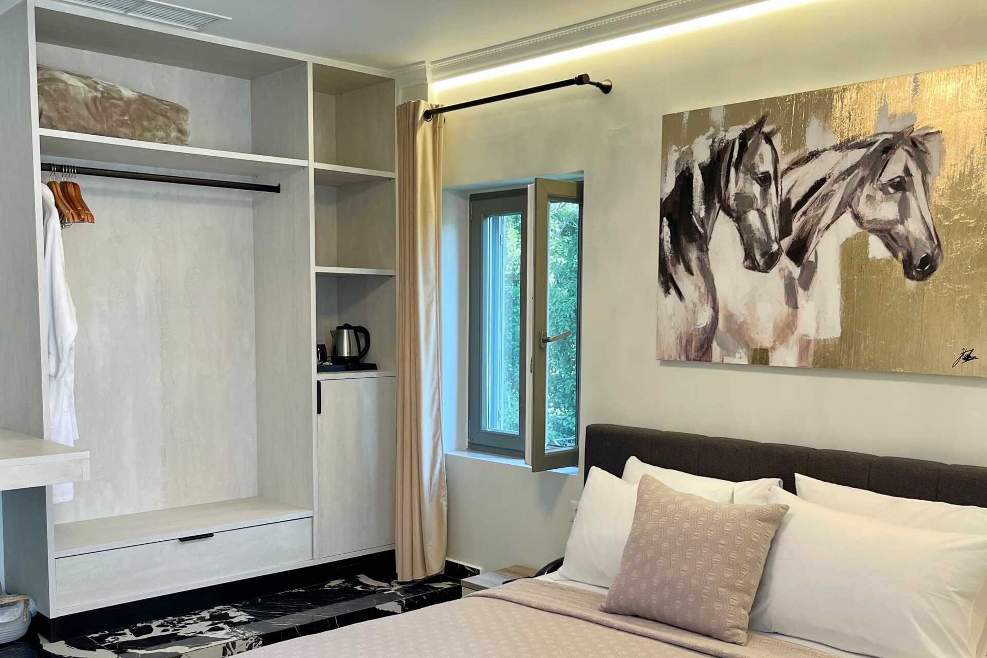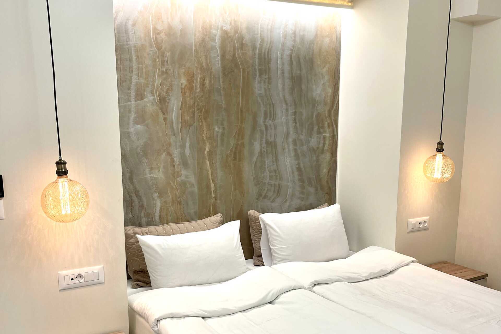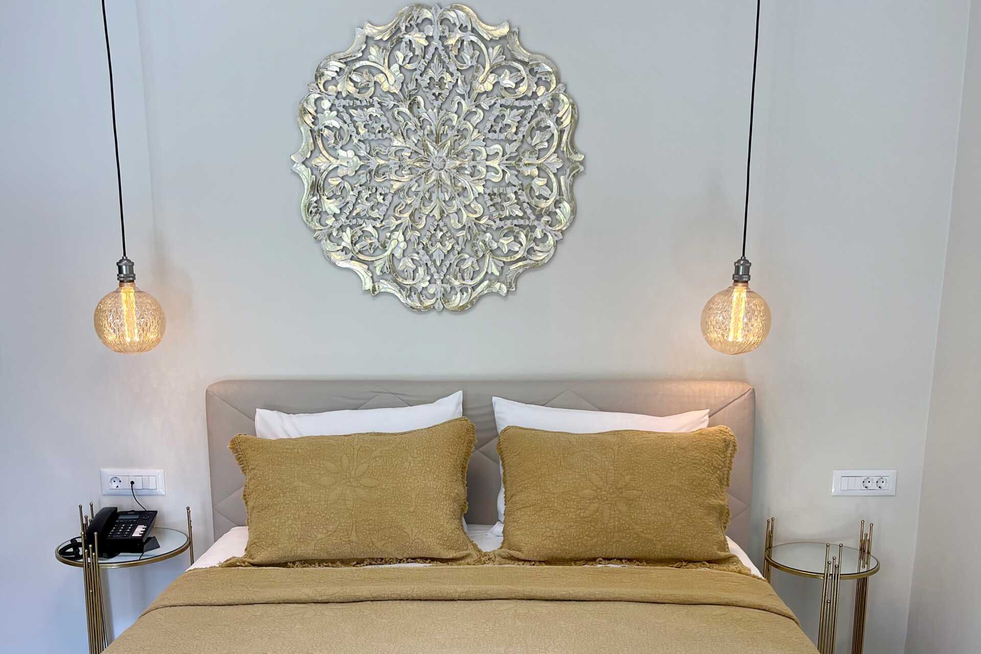 Dubbelrum, vissa med balkong och vissa utan uteplats. En dubbelsäng eller två enkelsängar. Wifi, luftkonditionering och deponering ingår. Kylskåp. Tv med internationella kanaler. Badrockar och tofflor. Hårtork. Badrum med badkar eller dusch samt wc. Städning 6 ggr/vecka. Barn under två år räknas in i max antal personer i rummet.