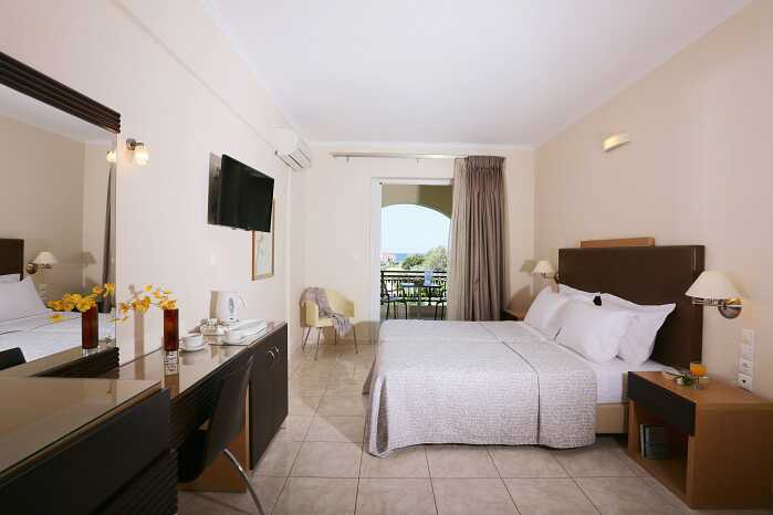 Dubbelrum med balkong. En dubbelsäng eller två enkelsängar. Möjlighet till extrabädd i bäddsoffa eller i hopvikbar säng. Wifi, luftkonditionering och deponering ingår. Kylskåp. Vattenkokare. Tv med internationella kanaler. Badrockar och tofflor. Hårtork. Badrum med badkar eller dusch samt wc. Barn under två år räknas in i maxantalet personer i rummet.