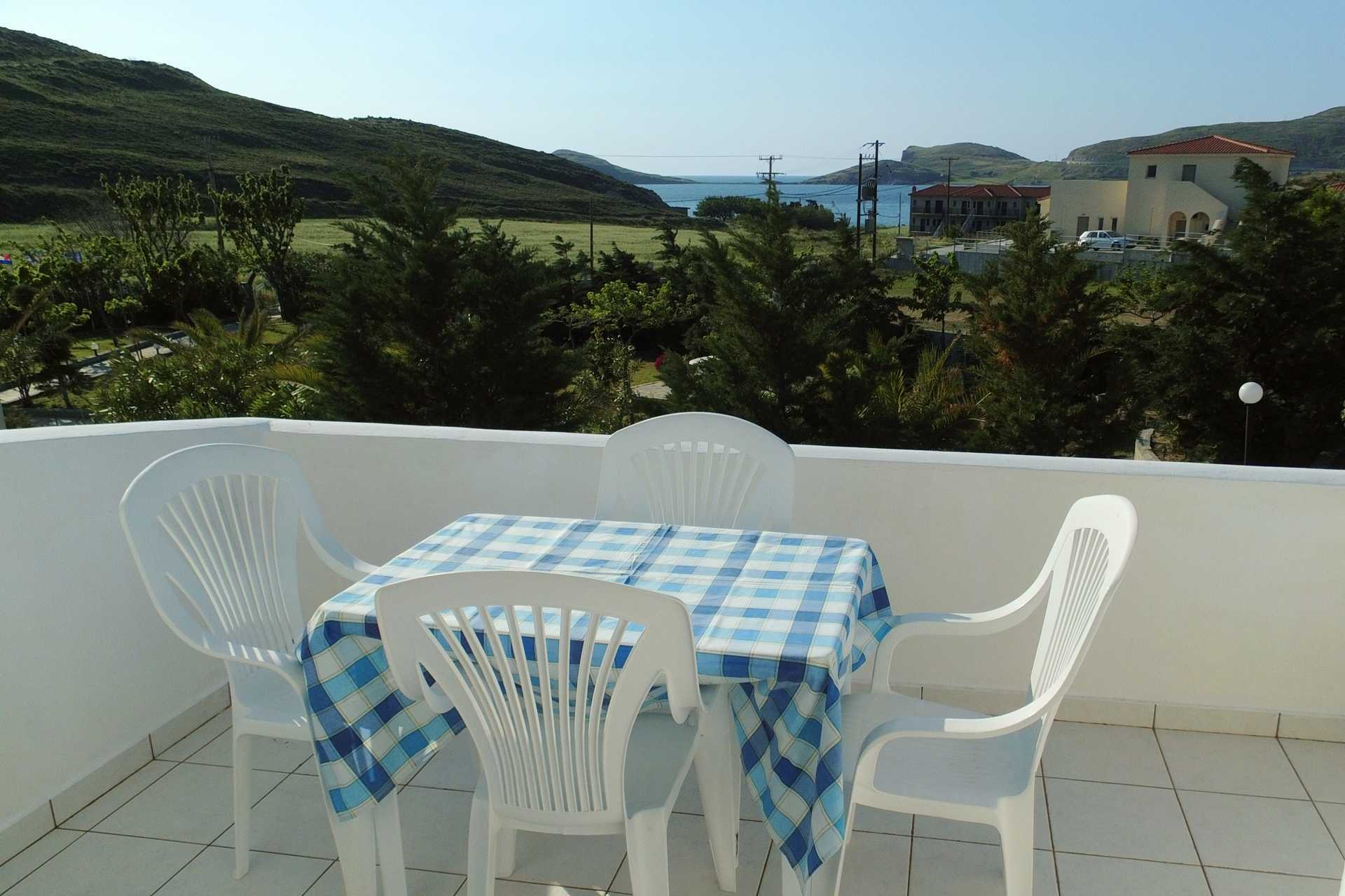 Enrumslägenhet med balkong eller terrass. Kombinerat sovrum med minikök. En dubbelsäng eller två enkelsängar. Minikök med kokplattor, ugn, kylskåp och enkel köksutrustning. Wifi, luftkonditionering och deponering ingår. Tv med lokala kanaler. Badrum med dusch och wc. Städning 6 ggr/vecka.