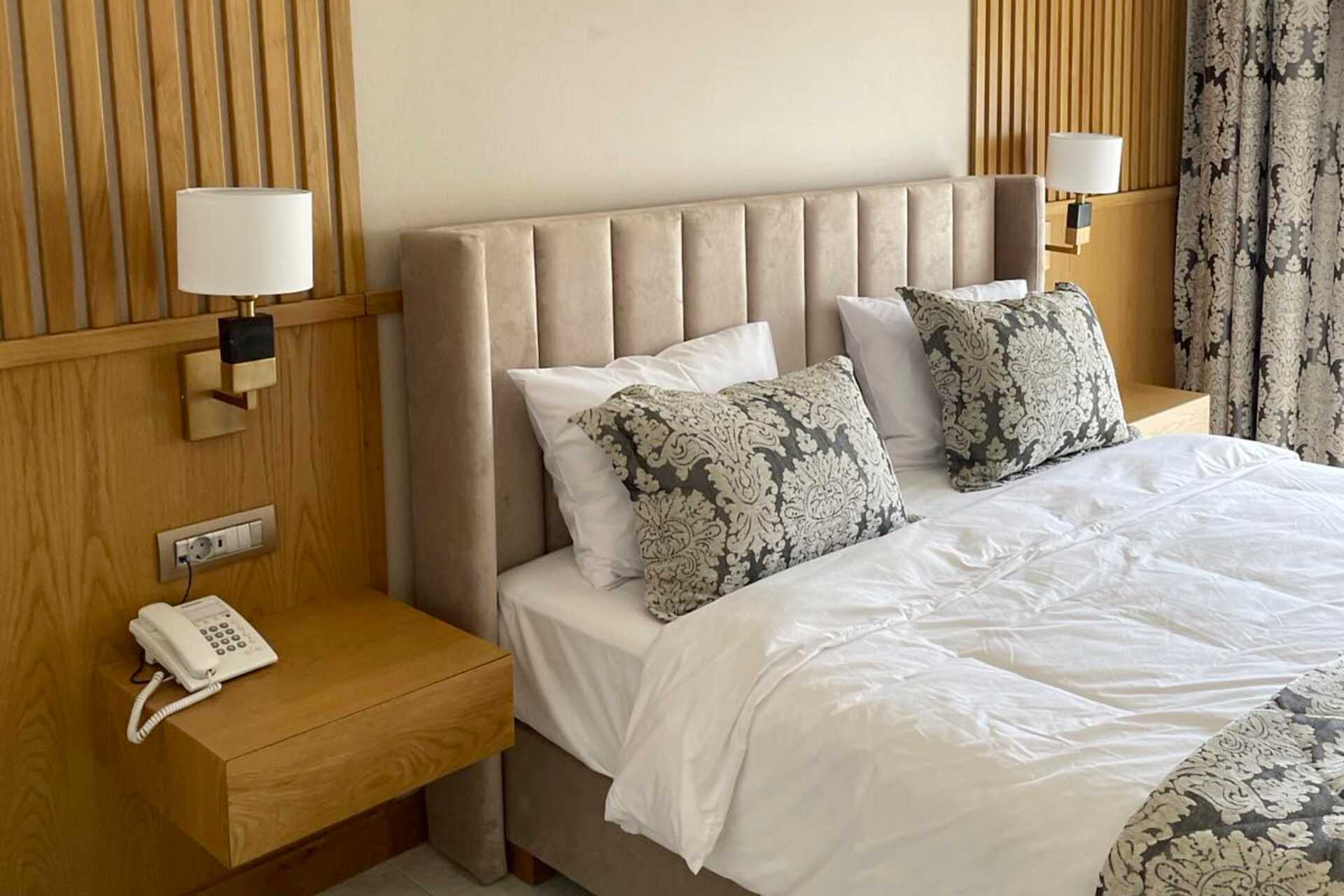 Superiorrum med balkong eller terrass. En dubbelsäng eller två enkelsängar. Wifi, luftkonditionering och deponering ingår. Kylskåp. Vattenkokare samt kaffe och te. Tv med internationella kanaler. Hårtork. Badrum med dusch och wc. Städning 7 ggr/vecka.
