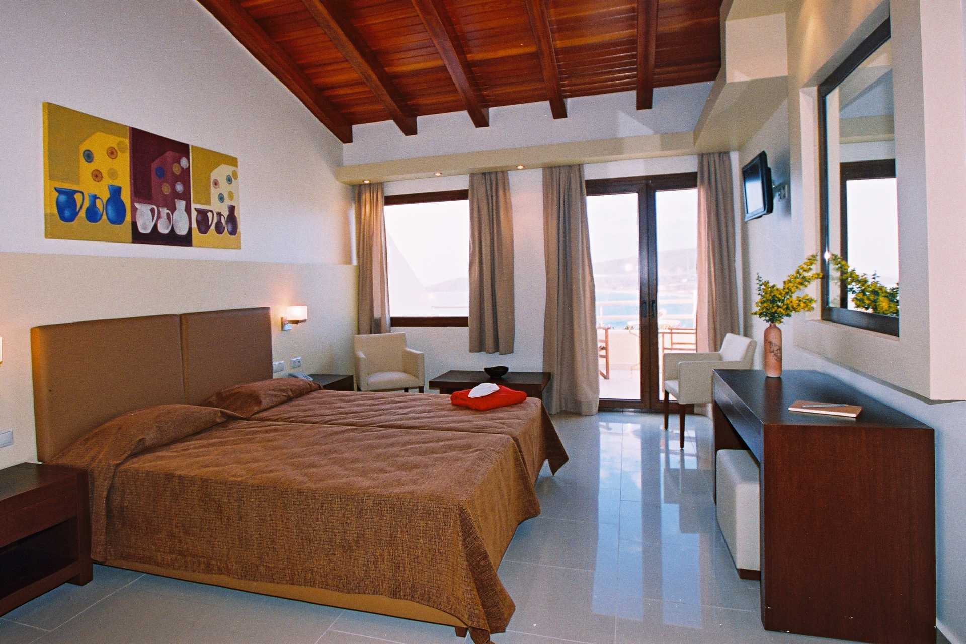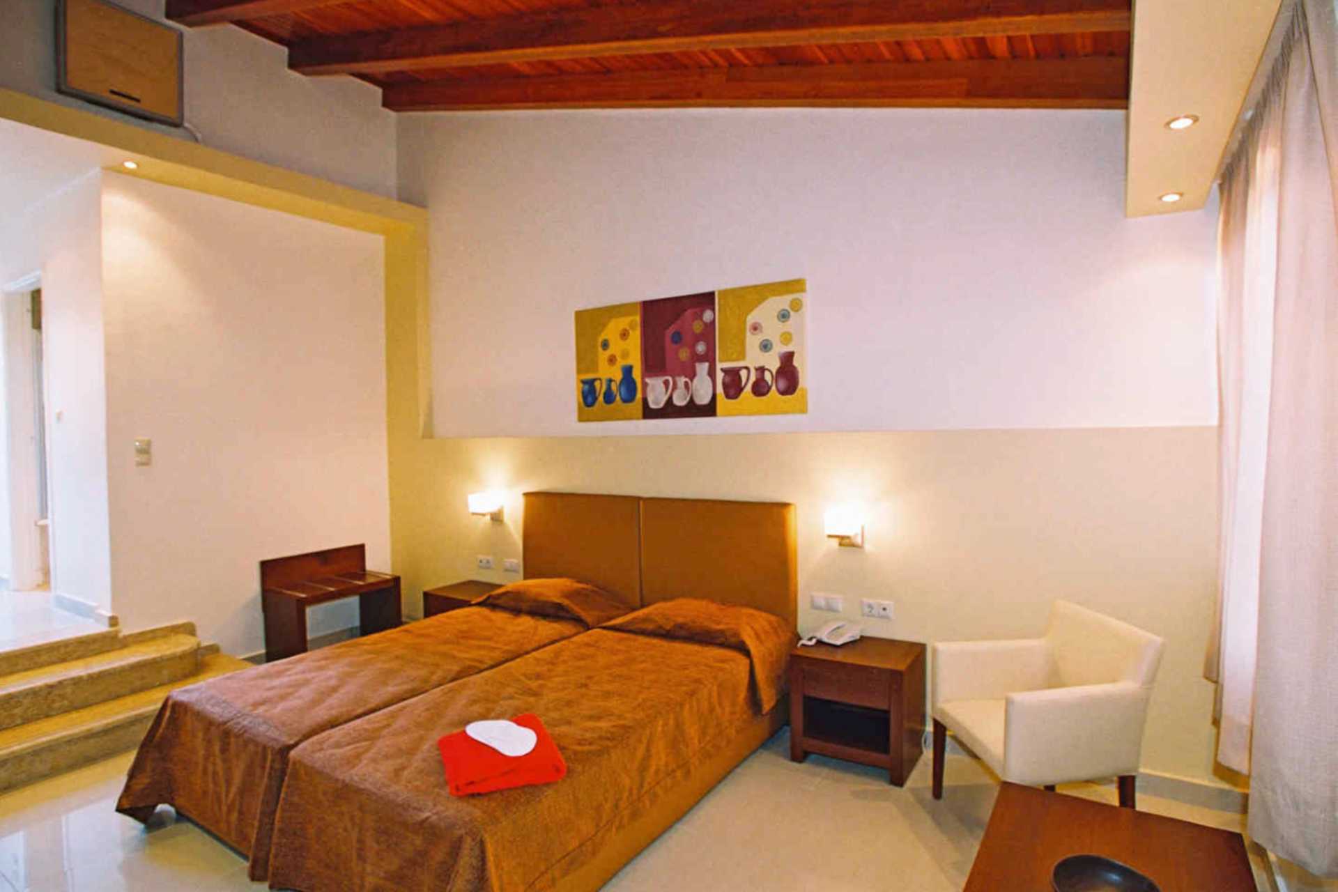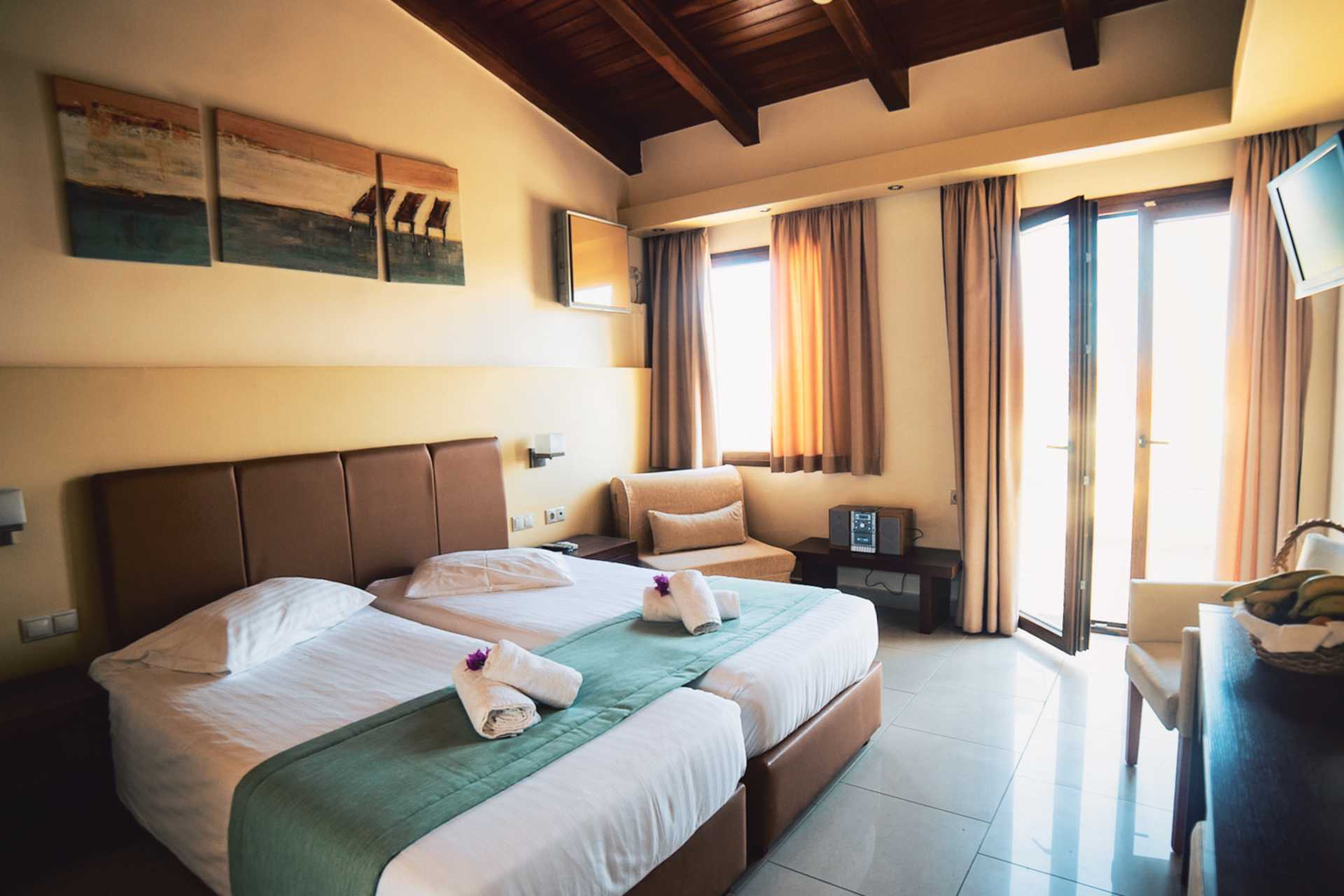 Dubbelrum med balkong och havsutsikt eller begränsad havsutsikt. Två enkelsängar. Möjlighet till extrabädd i enkelsäng. Wifi och luftkonditionering ingår. Kylskåp. Vattenkokare samt kaffe och te. Tv med internationella kanaler. Nivåskillnader med några trappsteg i rummen. Hårtork. Badrum med badkar och wc. Städning 7 ggr/vecka.
