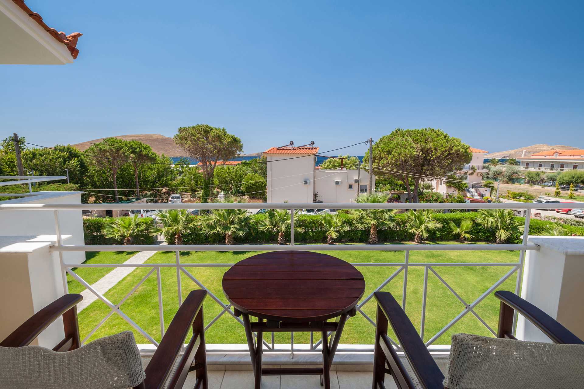 Sandstranden närmast hotellet, Playt beach, har miljömärkningen Blå Flagg och erbjuder solstolar och parasoller till uthyrning. Längs stranden finns små tavernor där du kan slå dig ner och prova lokala specialiteter eller din grekiska favoriträtt, i övrigt är det mycket lugna omgivningar. Till Myrina, med stort utbud av butiker, tavernor och barer, tar du dig enklast med hyrbil eller taxi.