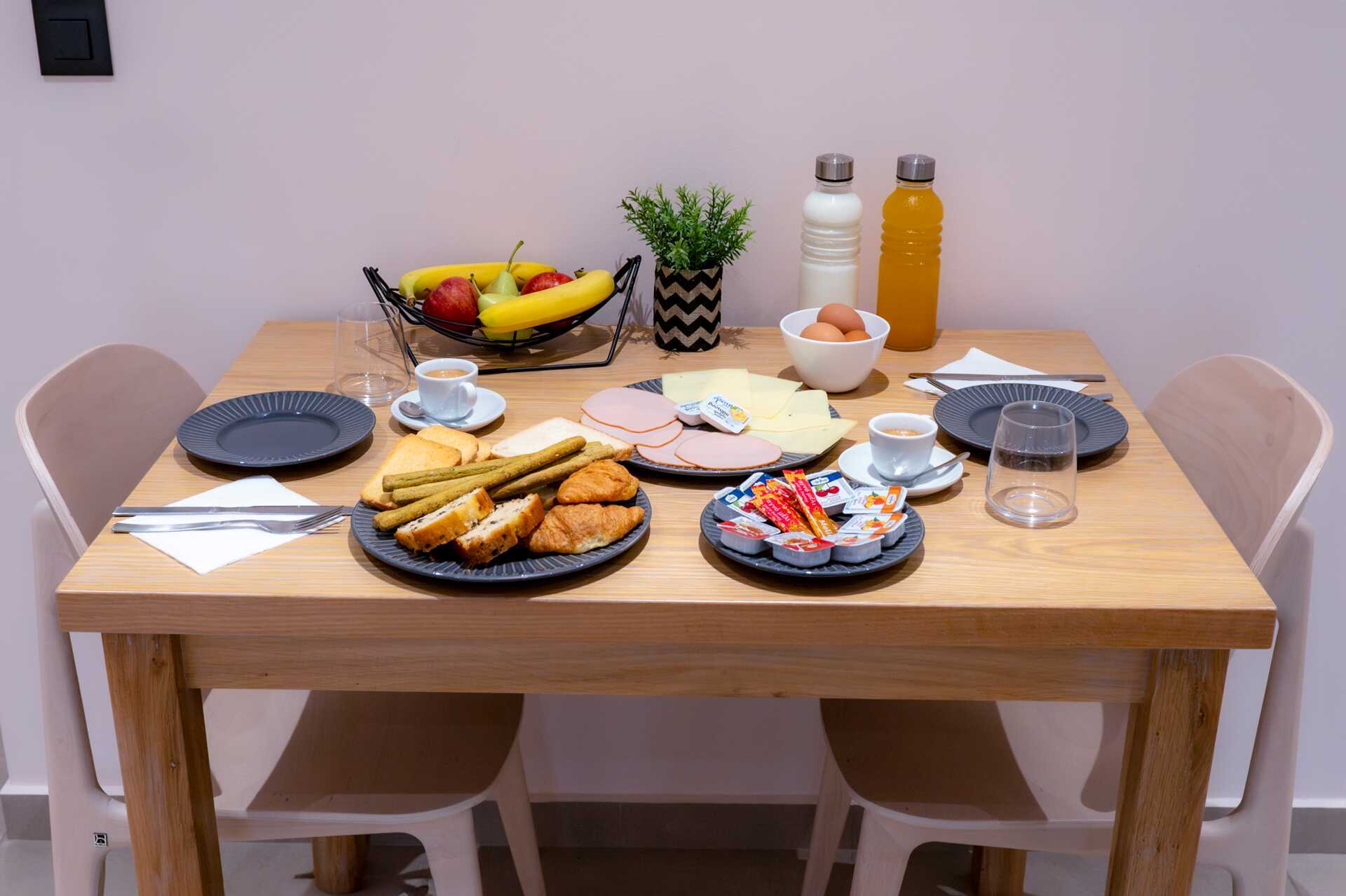Du beställer själv när du vill äta din frukost. En frukostkorg finns på rummet och fylls dagen före till morgondagens frukost.