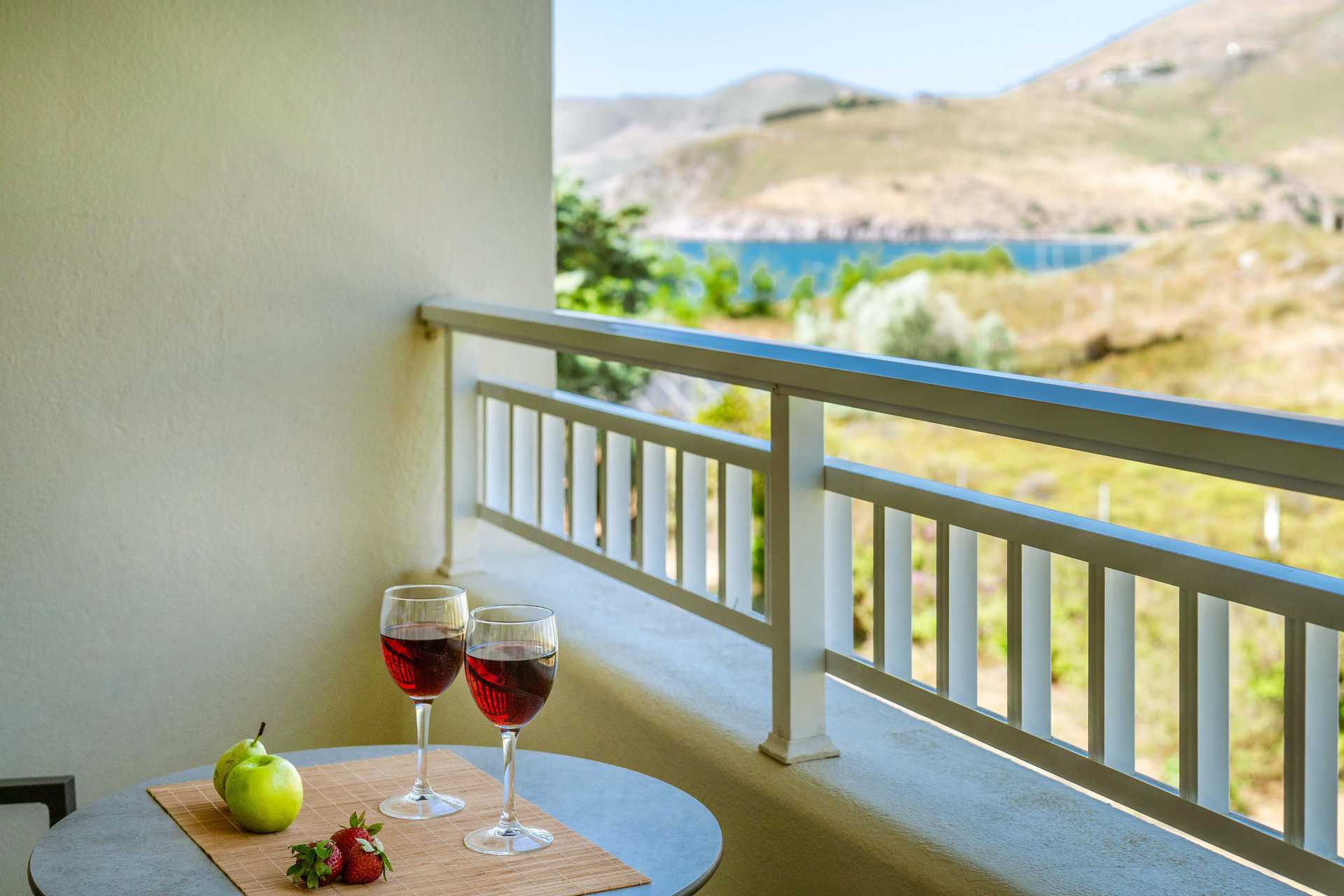 Större dubbelrum med balkong och havsutsikt. En dubbelsäng eller två enkelsängar. Möjlighet till extrabädd i hopfällbar säng. Wifi, luftkonditionering och deponering ingår. Kylskåp. Vattenkokare samt kaffe och te. Tv med internationella kanaler. Hårtork. Badrum med badkar eller dusch samt wc. Städning 7 ggr/vecka.