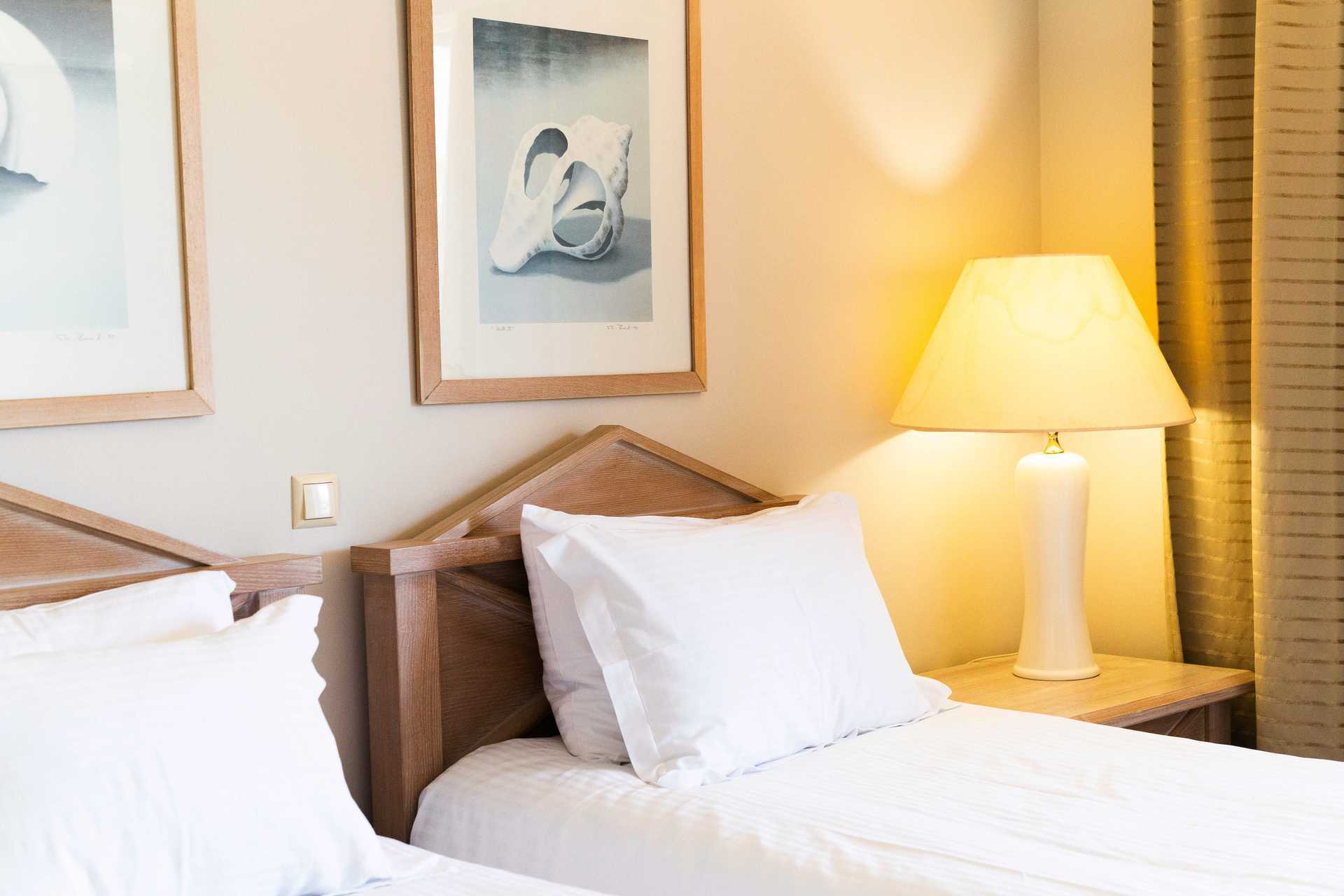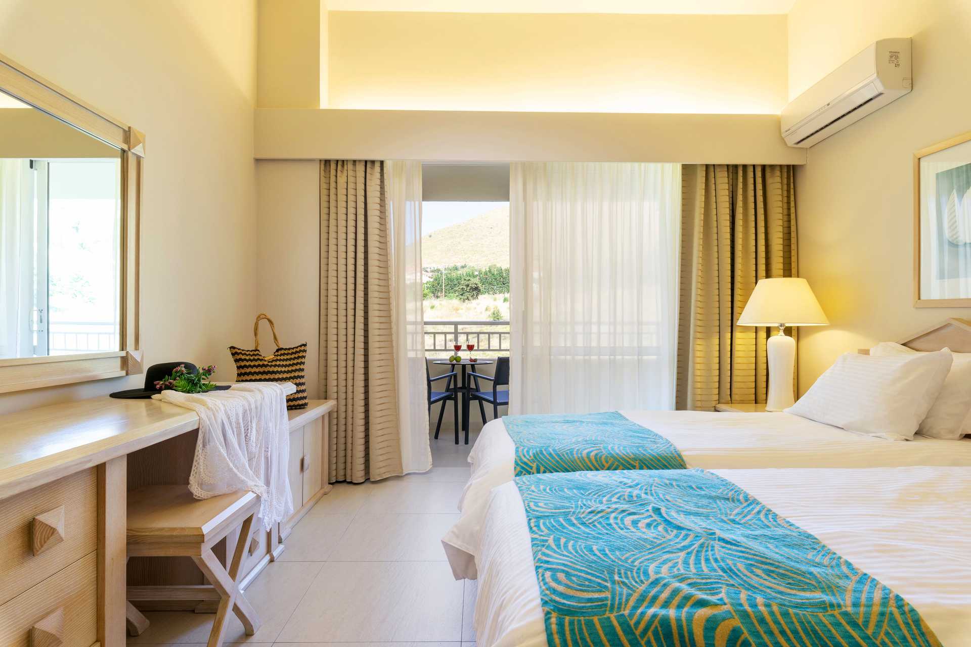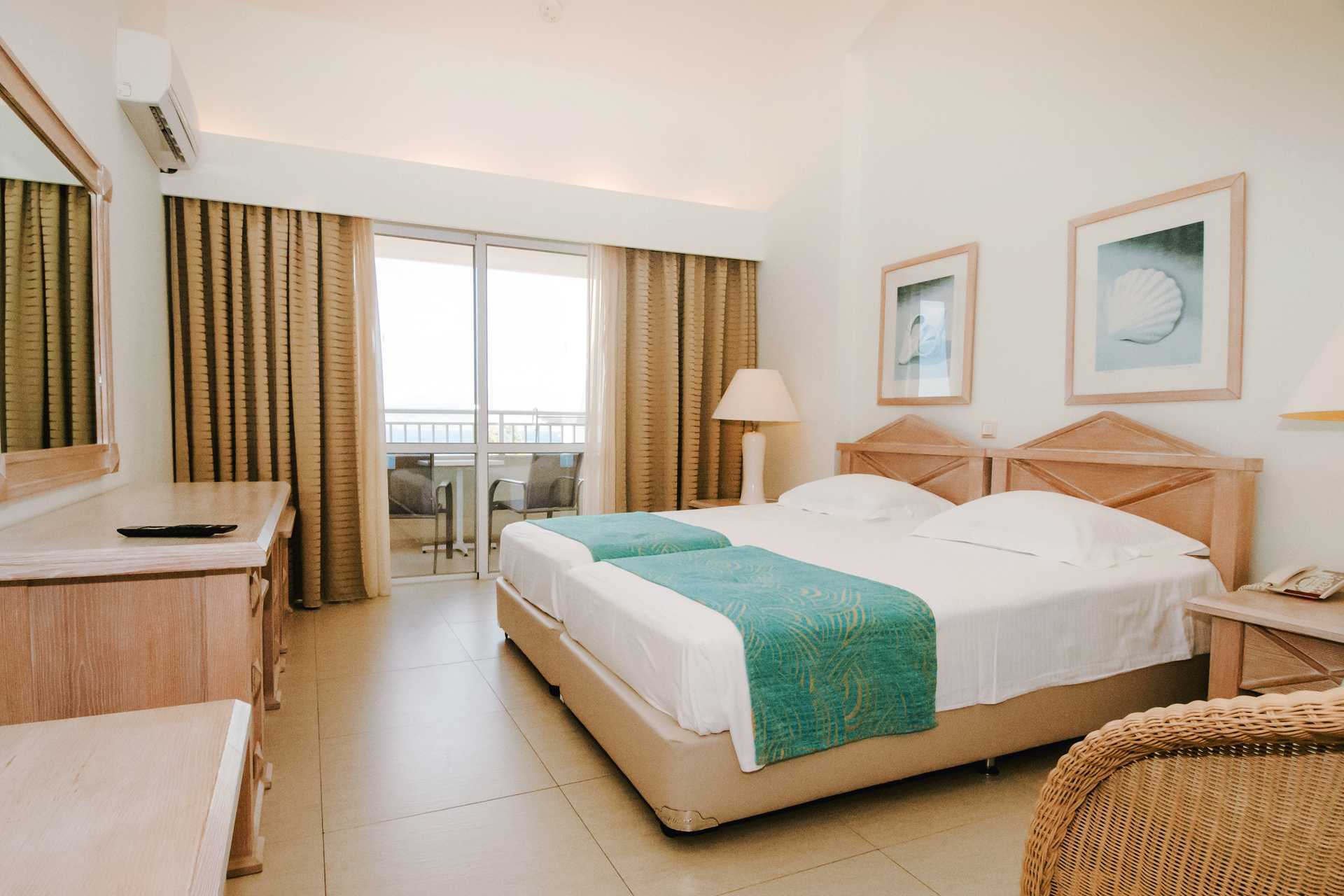 Dubbelrum med balkong, vissa med havsutsikt eller begränsad havsutsikt eller med stor balkong. En dubbelsäng eller två enkelsängar. Möjlighet till extrabädd i hopfällbar säng. Wifi, luftkonditionering och deponering ingår. Kylskåp. Vattenkokare samt kaffe och te. Tv med internationella kanaler. Hårtork. Badrum med badkar eller dusch samt wc. Städning 7 ggr/vecka.
