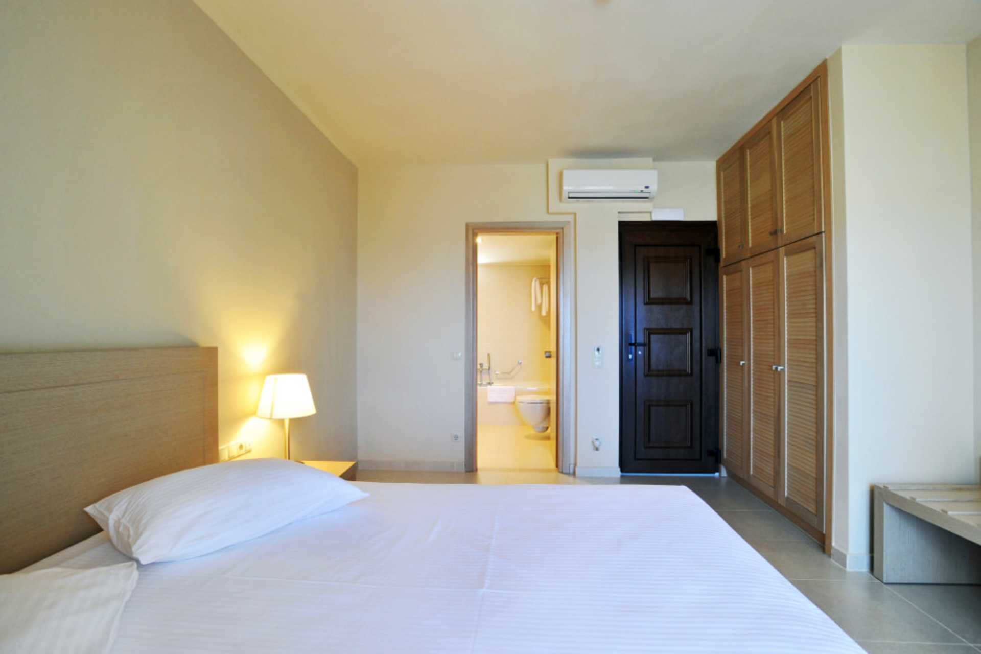 Större dubbelrum med balkong med havsutsikt eller med begränsad havsutsikt. En dubbelsäng eller två enkelsängar. Möjlighet till extrabädd i enkelsäng. Wifi, luftkonditionering och deponering ingår. Kylskåp - en flaska vatten ingår vid ankomst. Vattenkokare samt kaffe och te. Tv med internationella kanaler. Hårtork. Badrum med bad/dusch och wc. Städning 7 ggr/vecka.