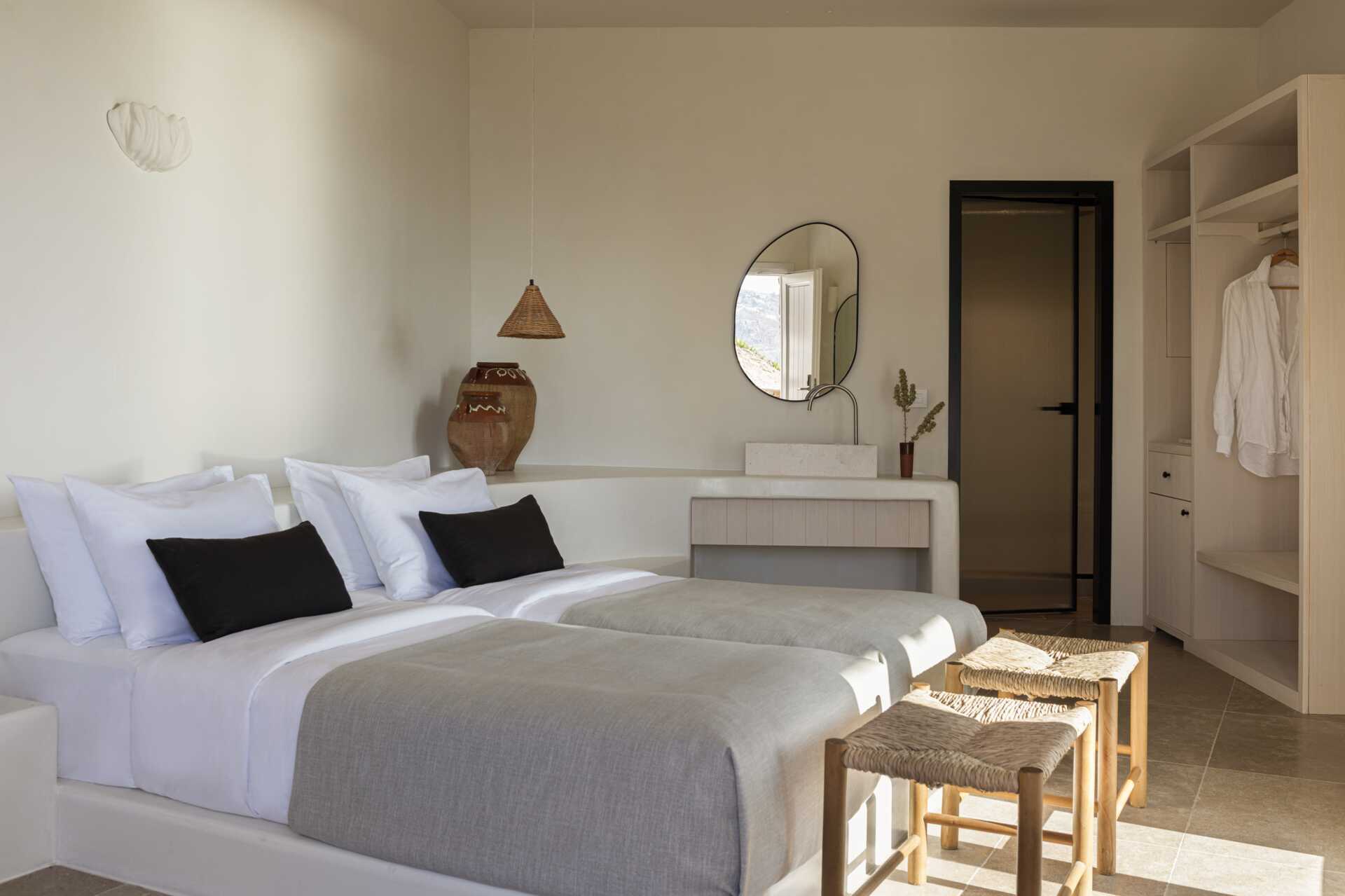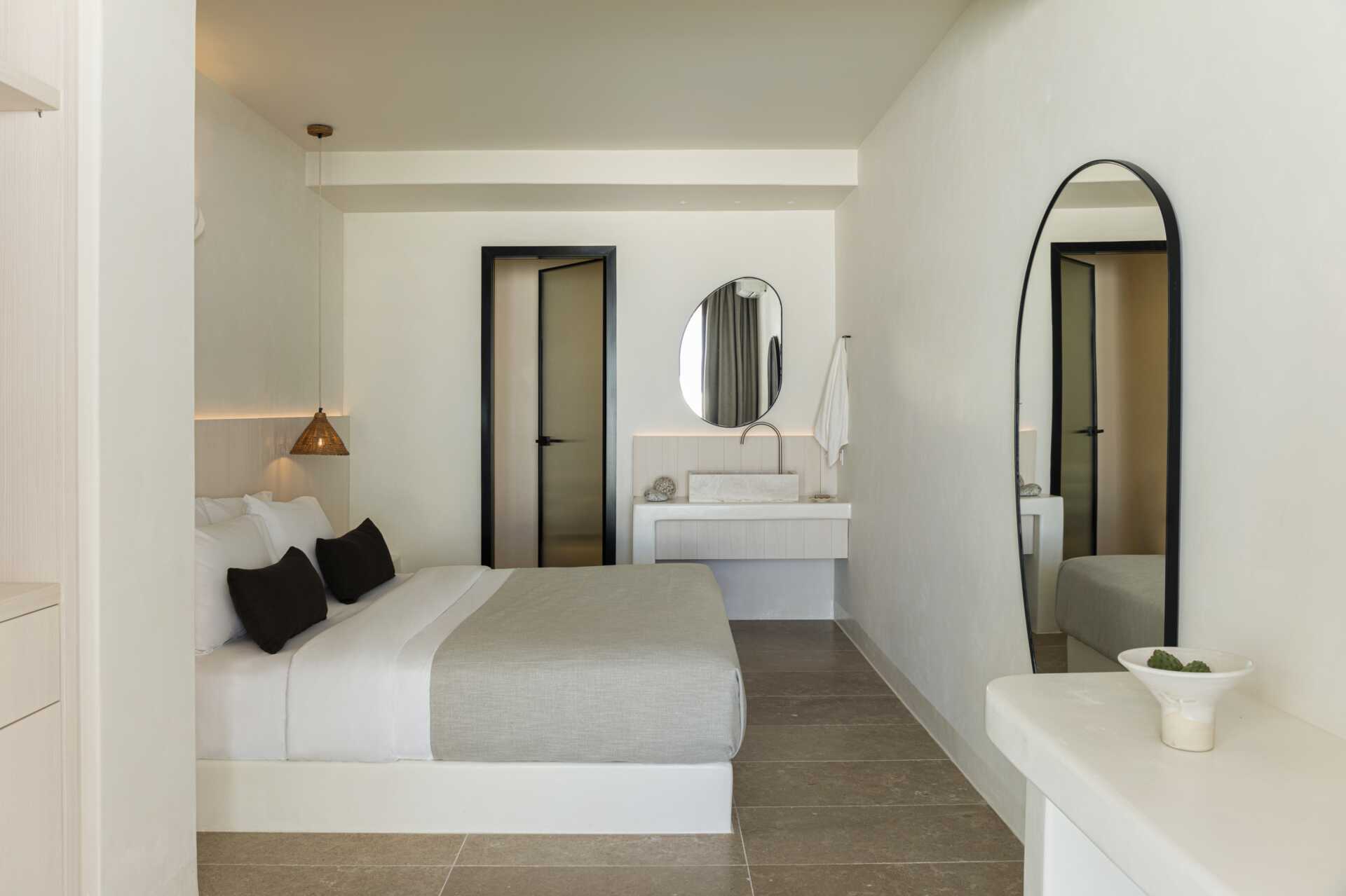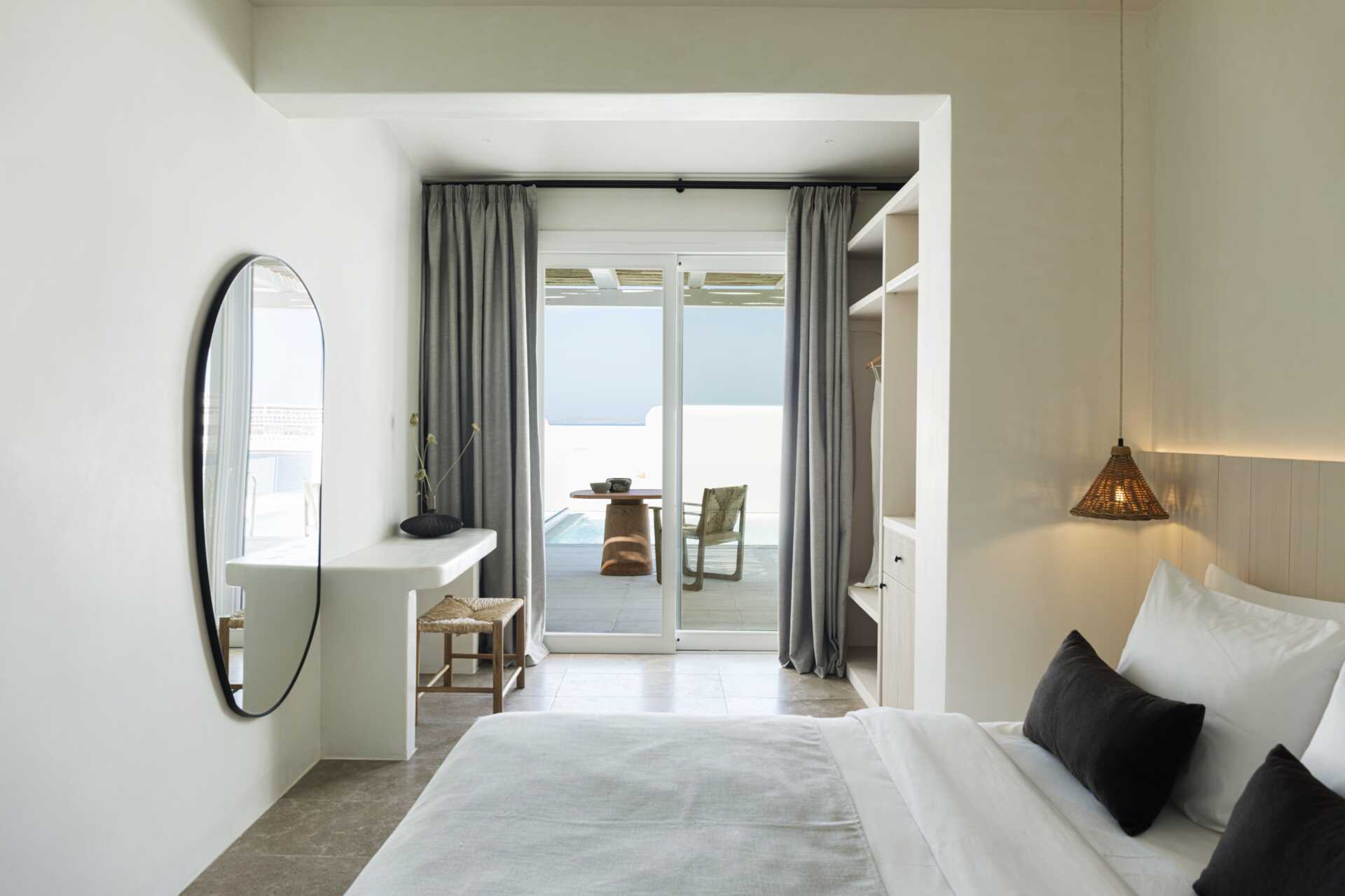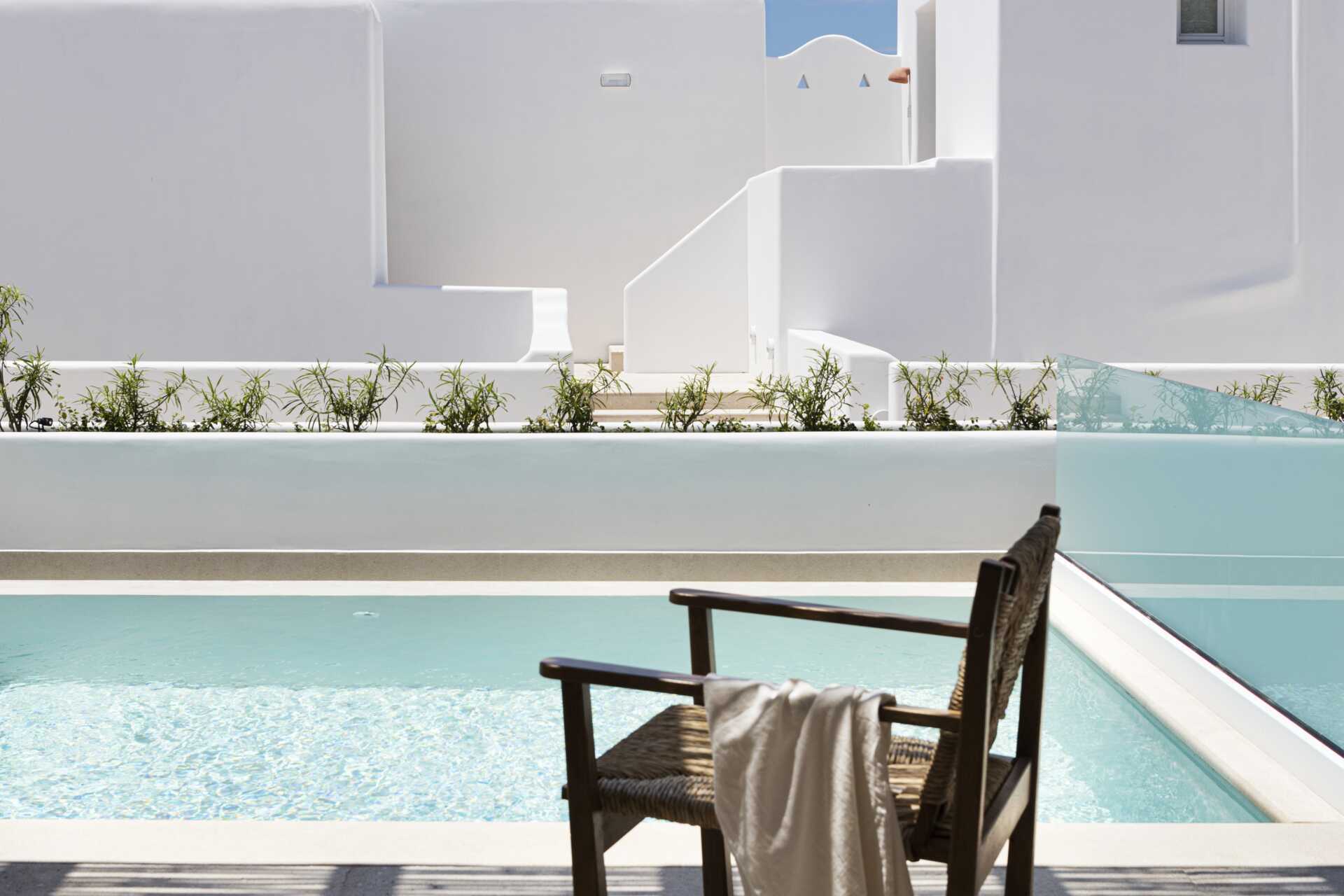 Deluxerum med uteplats med privat pool. En dubbelsäng. Wifi, luftkonditionering och deponering ingår. Minibar. Espressomaskin. Tv med internationella kanaler. Badrockar och tofflor. Hårtork. Badrum med dusch och wc. Städning 7 ggr/ vecka. Barn under två är räknas in i maxantalet personer i rummet.