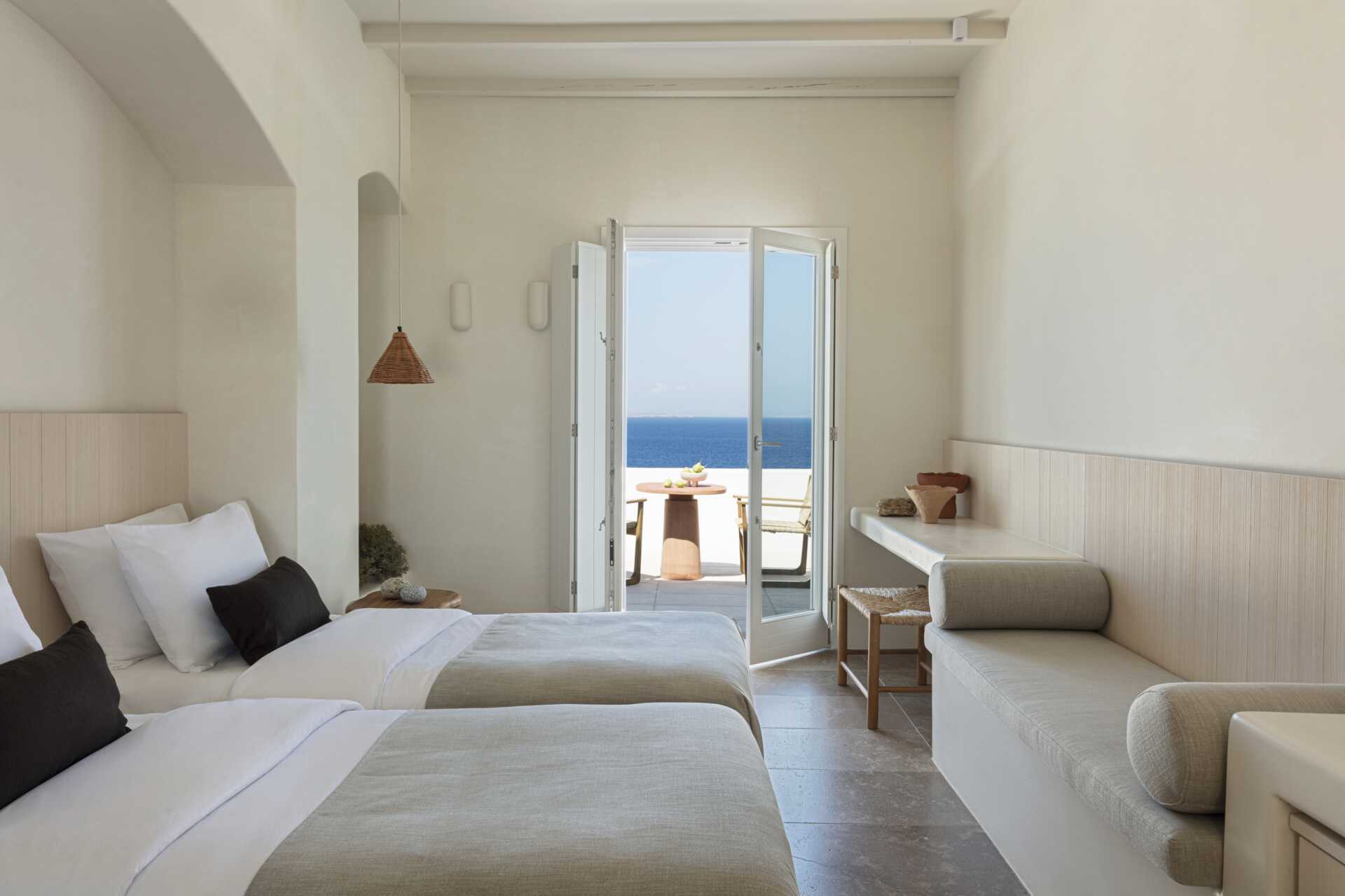 Deluxerum med balkong eller terrass och havsutsikt. En dubbelsäng eller två enkelsängar. Möjlighet till extrabädd. Wifi, luftkonditionering och deponering ingår. Minibar. Espressomaskin. Tv med internationella kanaler. Badrockar och tofflor. Hårtork. Badrum med dusch och wc. Städning 7 ggr/vecka. Barn under två år räknas in i maxantalet personer i rummet.