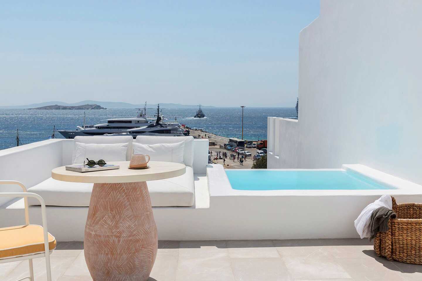 Deluxerum med privat pool på uteplatsen. En dubbelsäng. Wifi, luftkonditionering och deponering ingår. Minibar. Espressomaskin. Tv med internationella kanaler. Badrockar och tofflor. Hårtork. Badrum med dusch och wc. Städning 7 ggr/ vecka. Barn under två är räknas in i max antal personer i rummet.