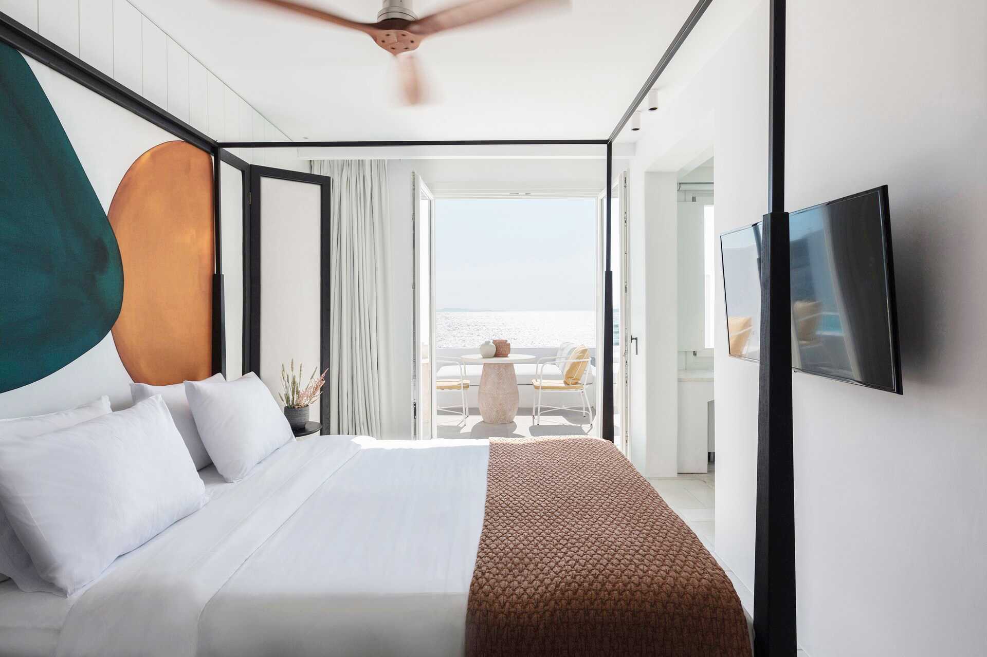 Deluxerum med balkong eller terrass och havsutsikt. En dubbelsäng eller två enkelsängar. Möjlighet till extrabädd. Wifi, luftkonditionering och deponering ingår. Minibar. Espressomaskin. Tv med internationella kanaler. Badrockar och tofflor. Hårtork. Badrum med dusch och wc. Städning 7 ggr/vecka. Barn under två år räknas in i max antal personer i rummet.