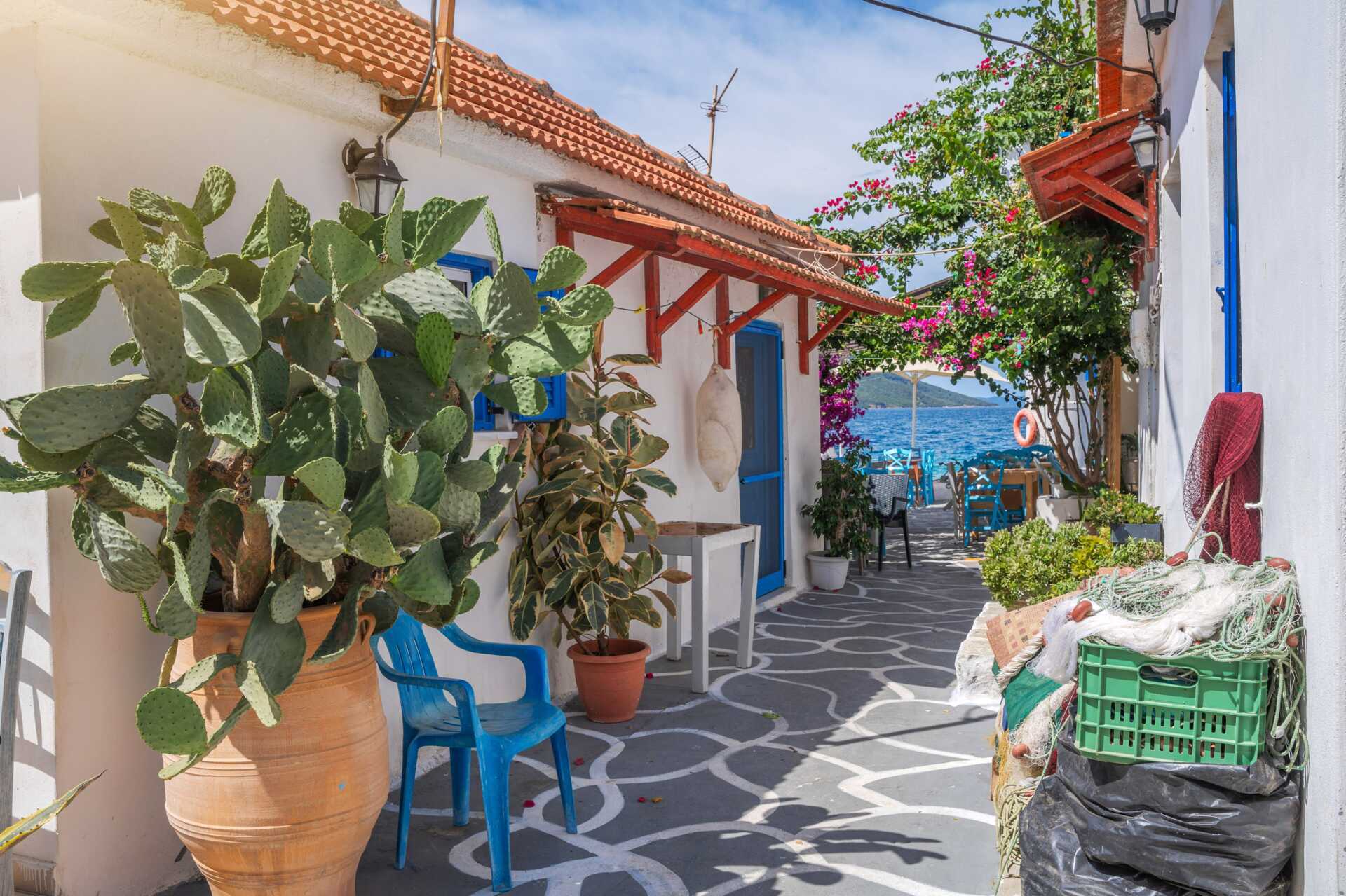 I Mytikas får du uppleva det äkta grekiska vardagslivet, långt från turistmassorna. Den charmiga byn ligger precis vid vattnet, där hus och affärer bokstavligen gränsar till havet. En mysig stenlagd huvudgata leder från byns ingång till hamnen och är perfekt för sköna promenader. På sommareftermiddagarna är gatan bilfri, vilket gör att barnen kan cykla runt och skapa en härlig och lekfull stämning.