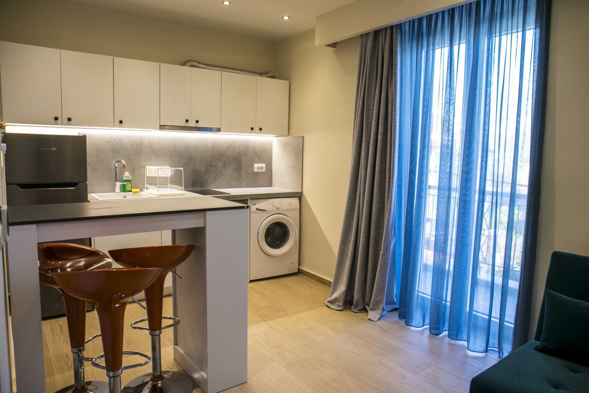 Tvårumslägenhet med balkong och havsutsikt. Sovrum och kombinerat vardagsrum/minikök. Några lägenheter har snedtak. En dubbelsäng. Möjlighet till extrabädd i bäddsoffa. Minikök med matplats vid bardisk, kylskåp och frys, kokplattor, ugn och enkel köksutrustning. Tv med internationella kanaler. Strykjärn och strykbräda. Tvättmaskin. Hårtork. Städning 6 ggr/vecka. Barn under två är räknas in i max antal personer i lägenheten.