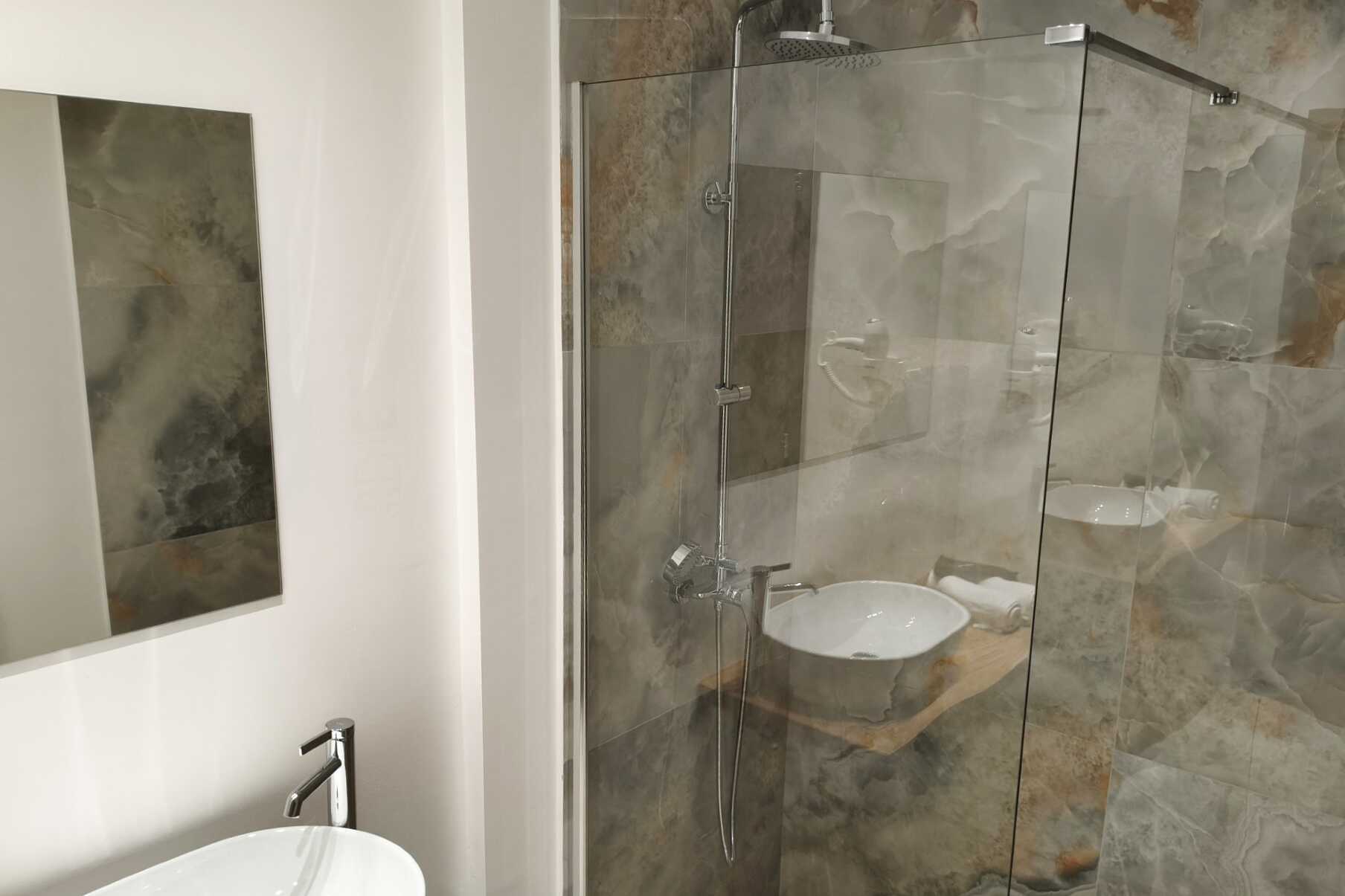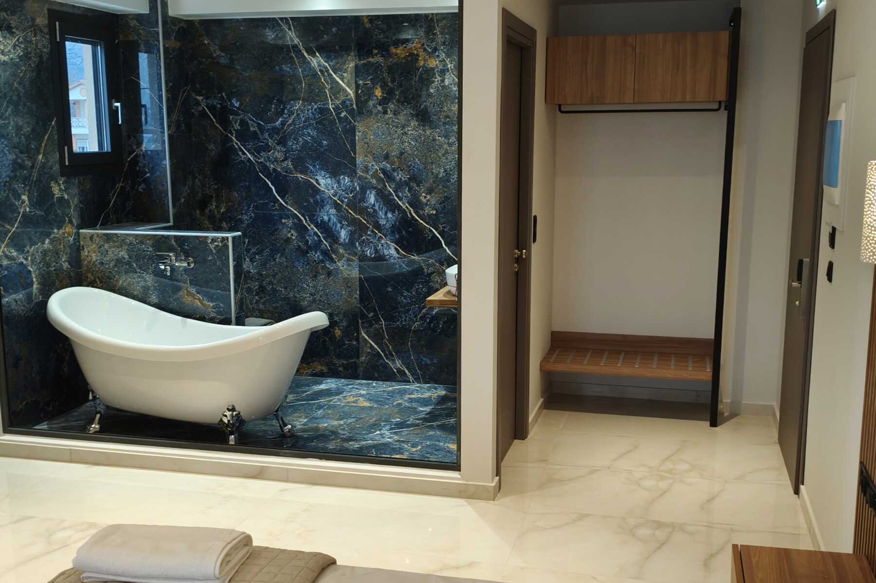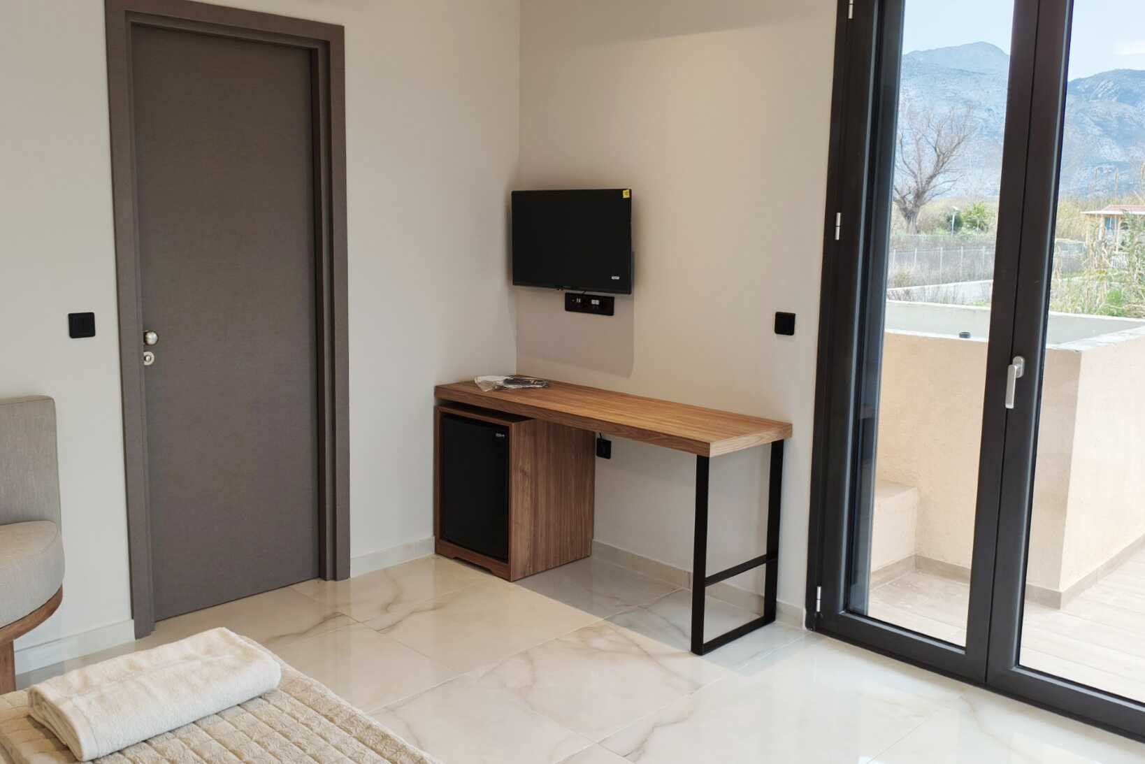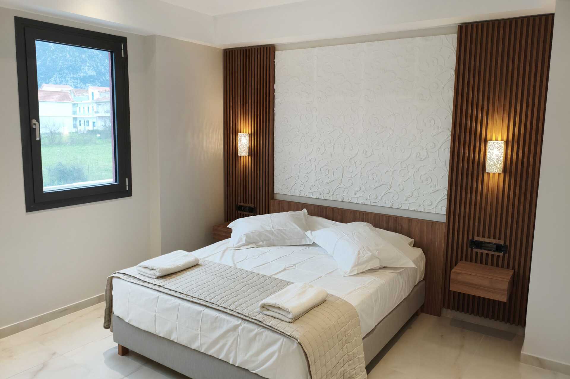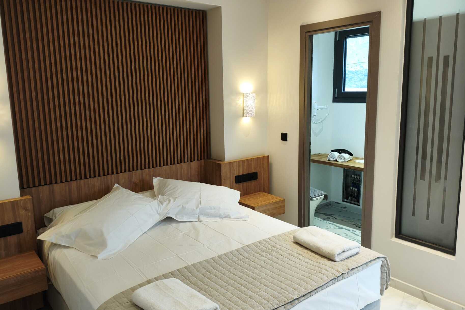 Dubbelrum med balkong, vissa med havsutsikt. En dubbelsäng. I vissa rum finns möjlighet till en extrabädd i enkelsäng. Wifi, luftkonditionering och deponering ingår. Kylskåp. Tv med lokala kanaler. Badrum med badkar eller dusch samt wc. Städning 5 ggr/vecka.