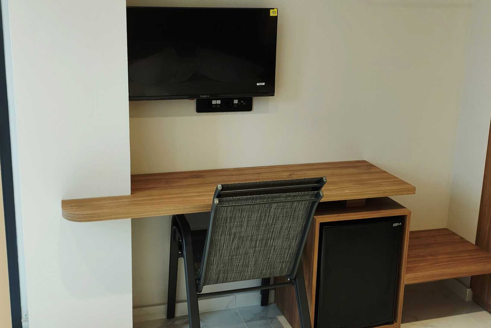 Standardrum utan uteplats. En dubbelsäng. Wifi, luftkonditionering och deponering ingår. Kylskåp. Tv med lokala kanaler. Hårtork. Badrum med badkar eller dusch samt wc. Städning 5 ggr/vecka.