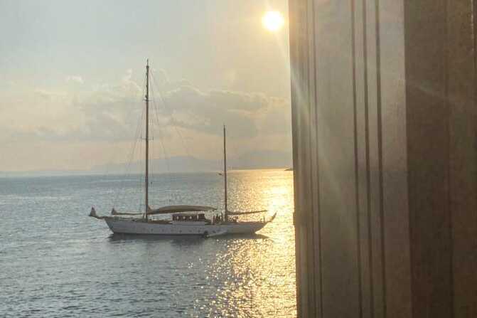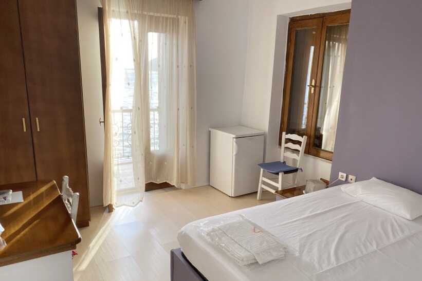 Dubbelrum med balkong och begränsad havsutsikt eller havsutsikt. En dubbelsäng. Wifi, luftkonditionering och deponering ingår. Kylskåp. Badrum med dusch och wc. Städning 5 ggr/vecka.