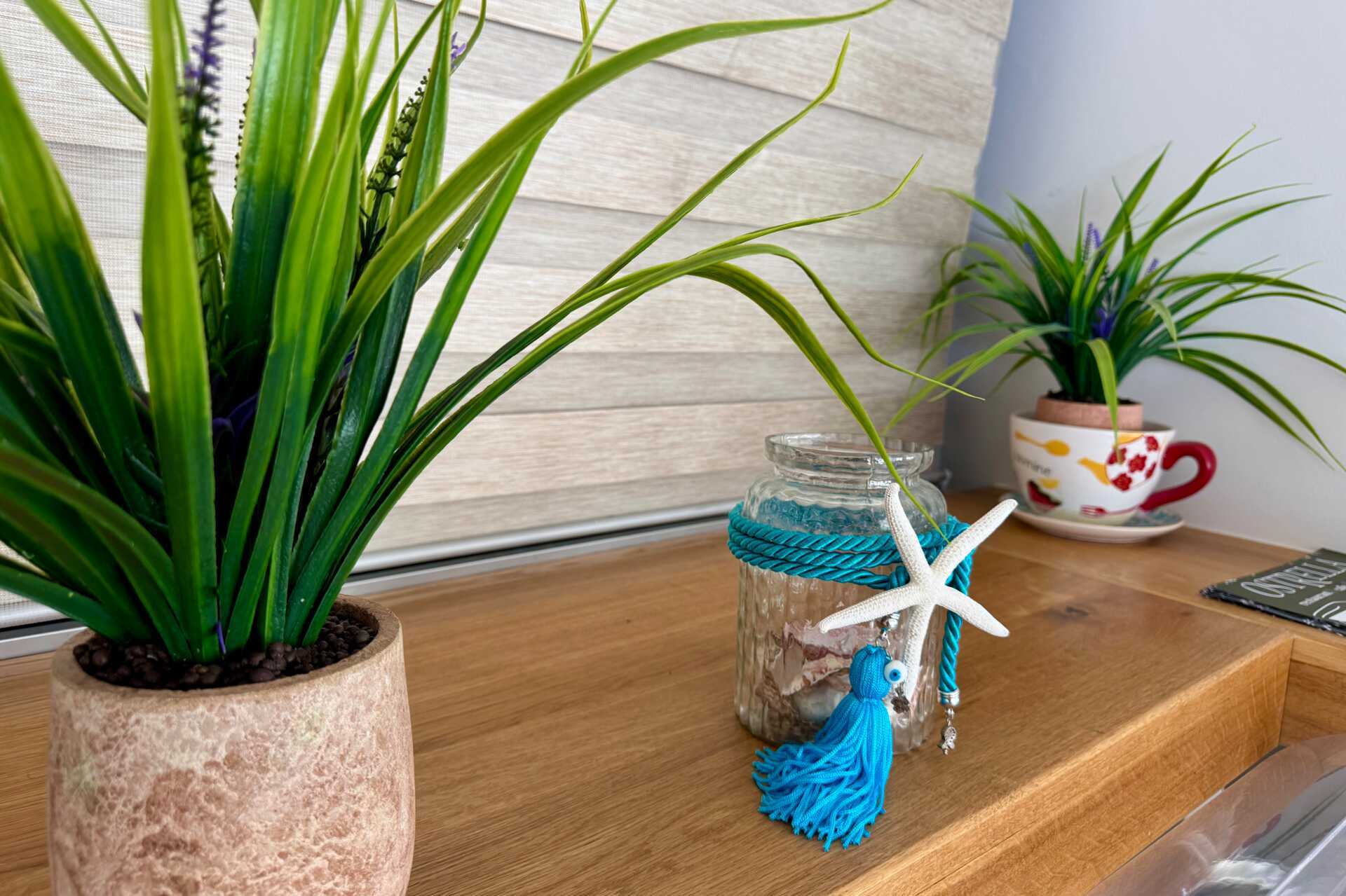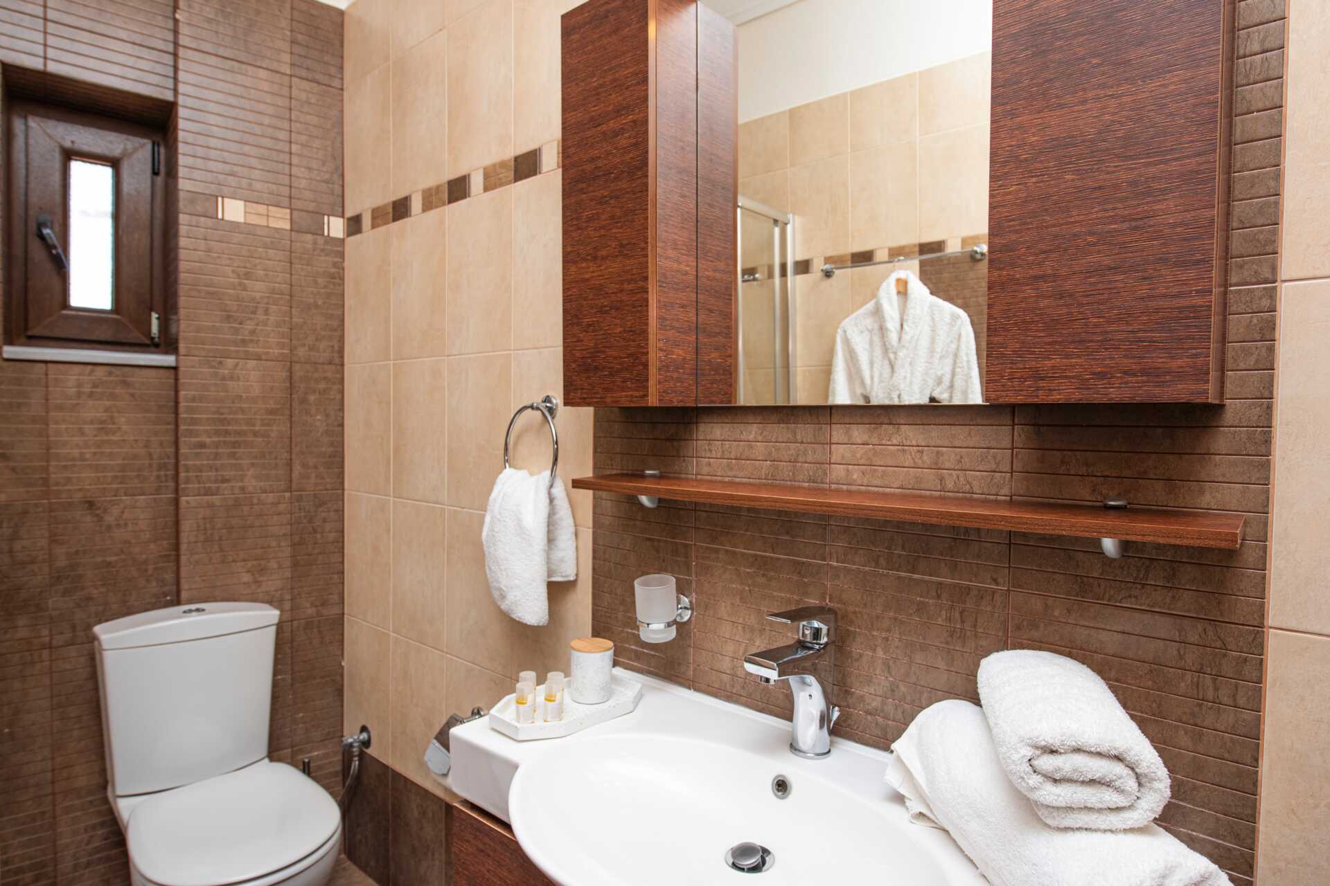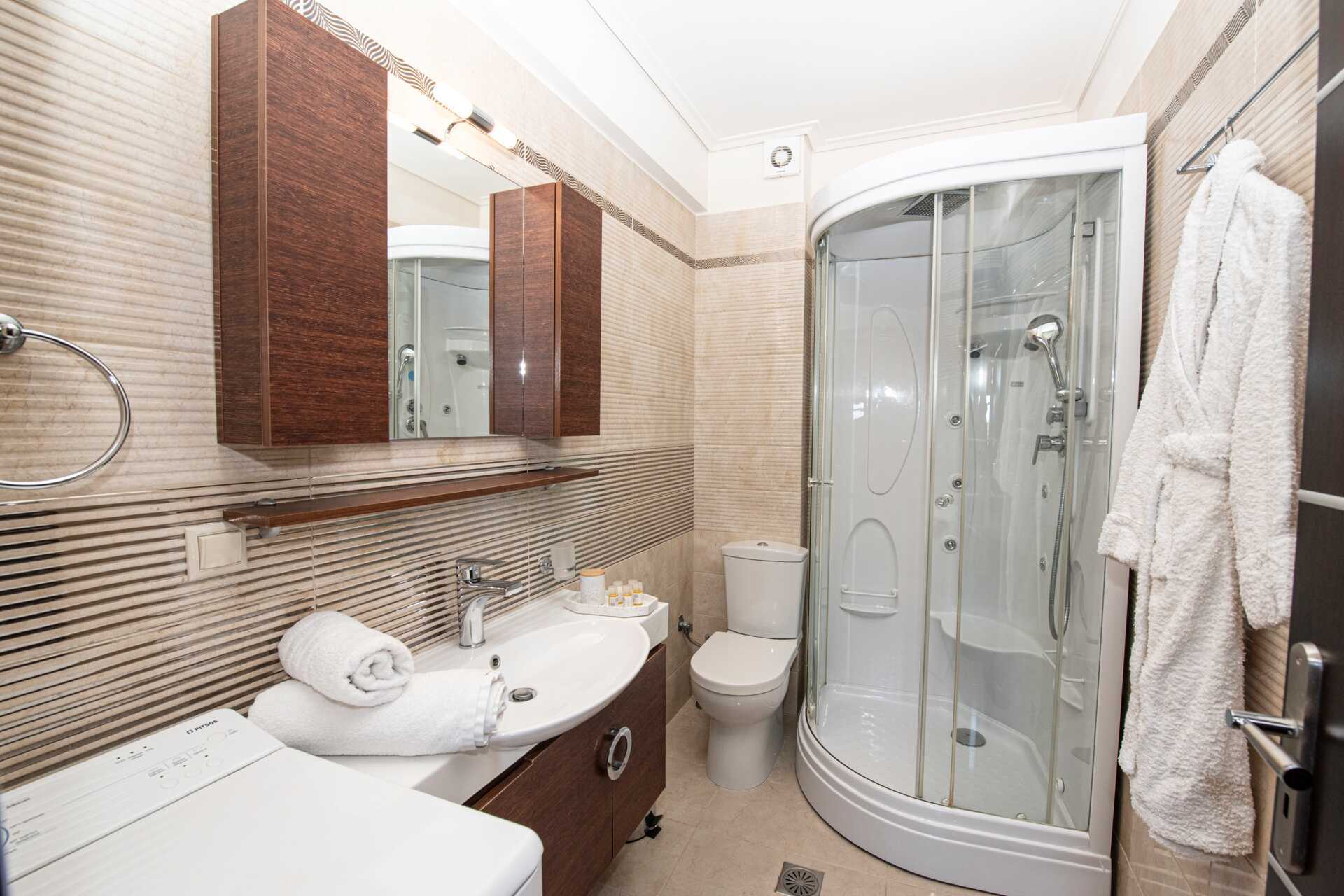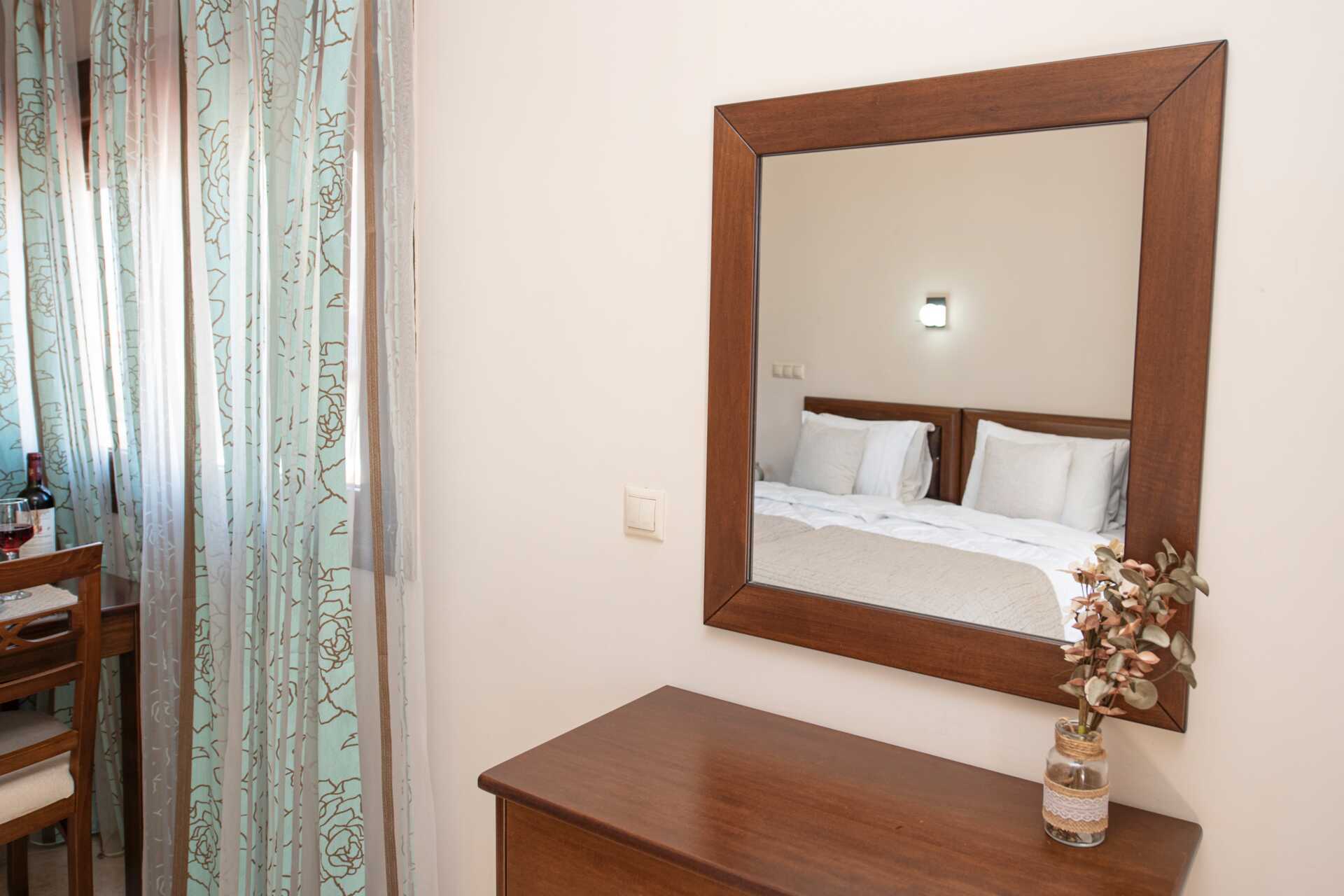 Tvårumslägenhet med balkong, vissa med havsutsikt. Sovrum och kombinerat vardagsrum med minikök. I vardagsrummet finns en öppen spis. En dubbelsäng eller två enkelsängar. Möjlighet till extrabädd i bäddsoffa. Minikök med kokplattor och ugn, kylskåp med frys, vattenkokare, kaffebryggare och enkel köksutrustning. Kaffemaskin - två kapslar per dag ingår. Wifi, luftkonditionering och deponering ingår. Tv med internationella kanaler. Tvättmaskin. Badrockar. Badrum med dusch och wc. Städning 6 ggr/vecka. Barn under två år räknas in i maxantalet personer i lägenheten.