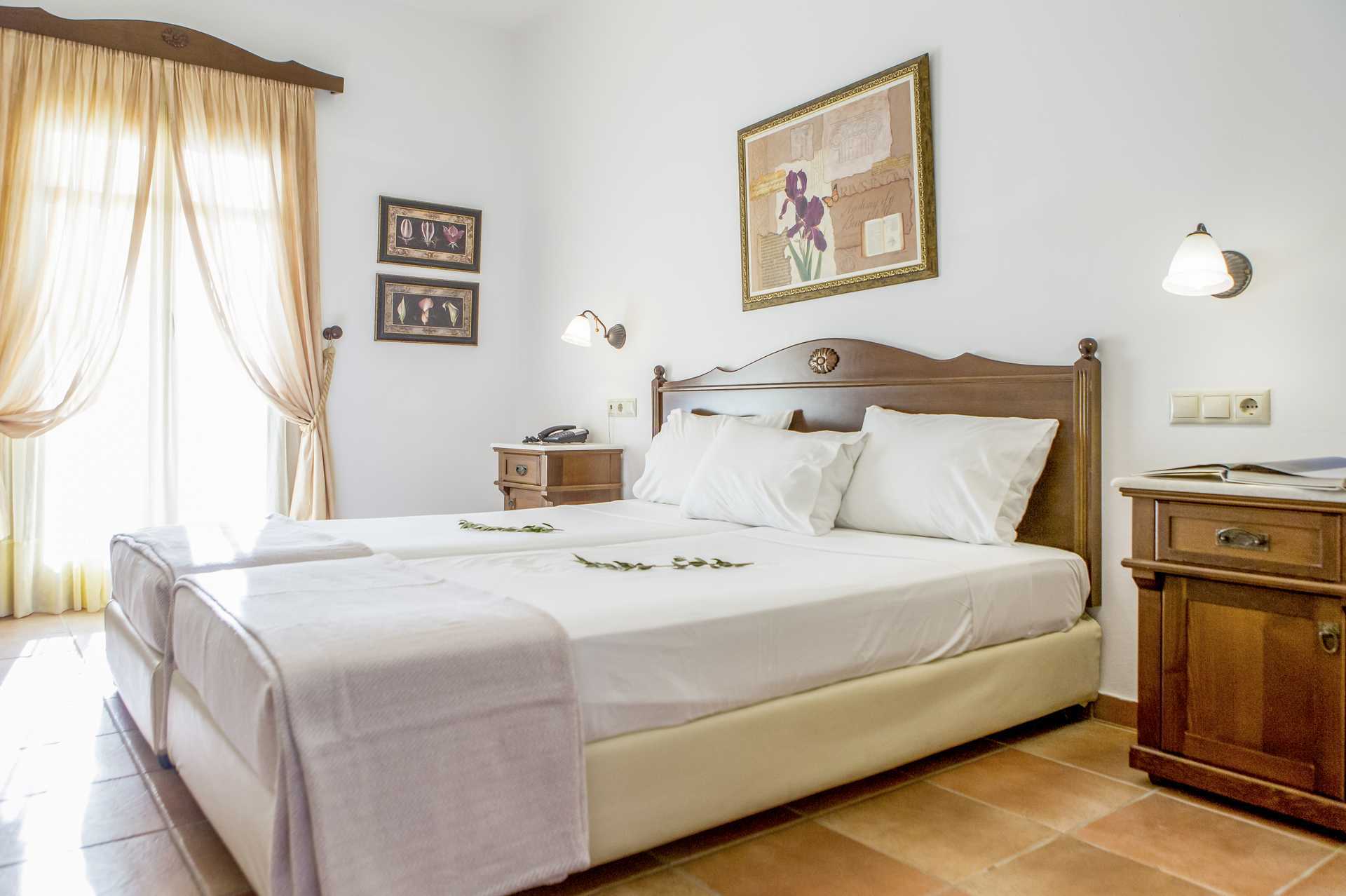 Dubbelrum med balkong eller terrass. Två enkelsängar. Möjlighet till extrabädd. Wifi, luftkonditionering och deponering ingår. Kylskåp. Tv med lokala kanaler. Hårtork. Badrum med dusch och wc. Städning 7 ggr/vecka. Barn under två år räknas in i maxantalet personer i rummet.
