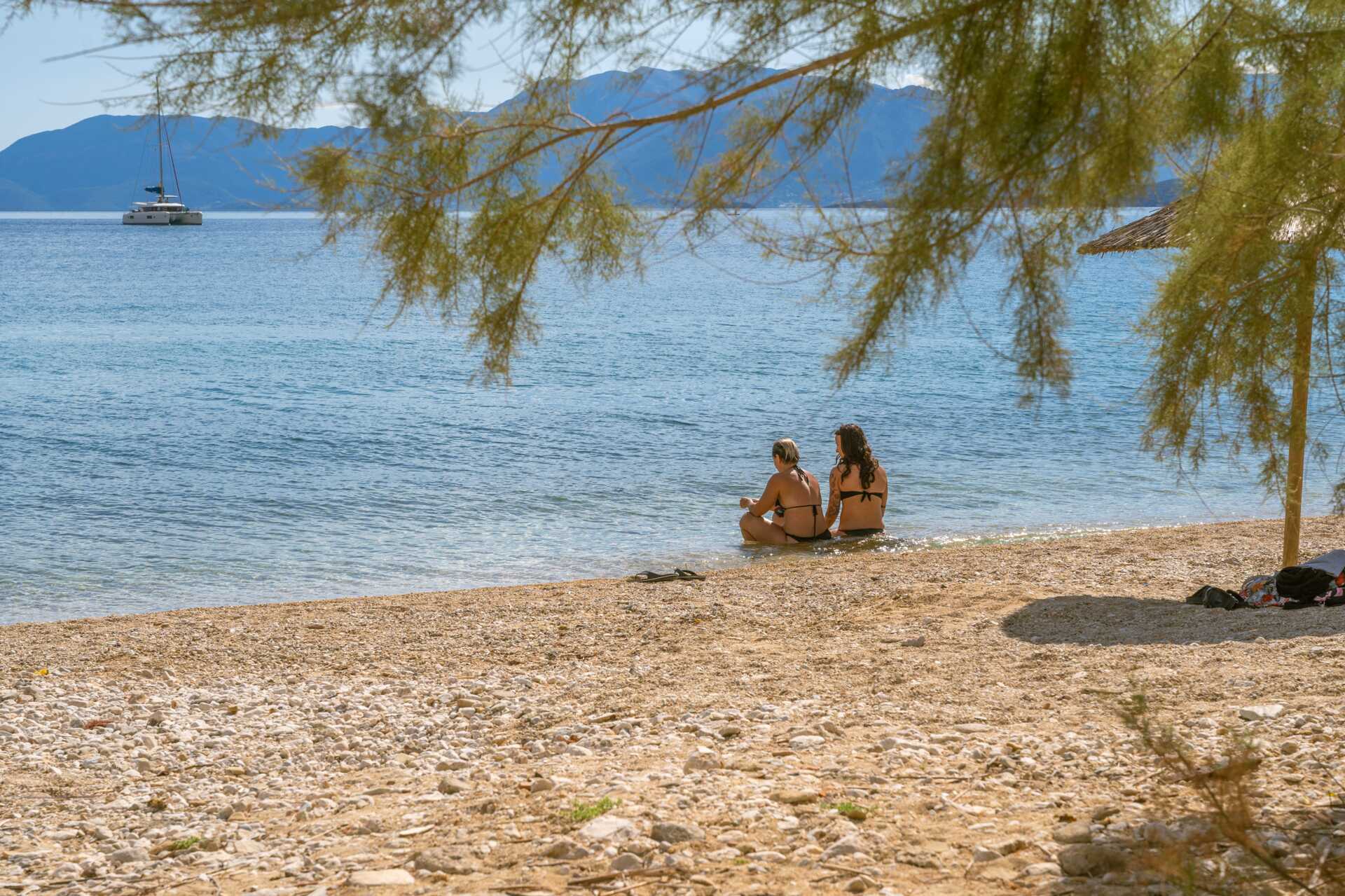 Det finns en mindre sandstrand mitt i byn som är långgrund och grovkornig, och ett antal badvikar längs med kusten norrut. Den mest populära sandstranden heter Potamaki Beach, som är ca 2 kilometer lång och ligger ett par kilometer bort. Besök stranden Varko, ca 15 minuter med bil från Paleros, som är en av de finaste stränderna i området. Cirka 30 minuter bort, utanför Lefkas stad, hittar du ett vackert lagunområde med två vackra sandstränder och några restauranger. Självklart finns det många fler stränder att upptäcka, till exempel genom att hyra en bil eller cykel på egen hand.