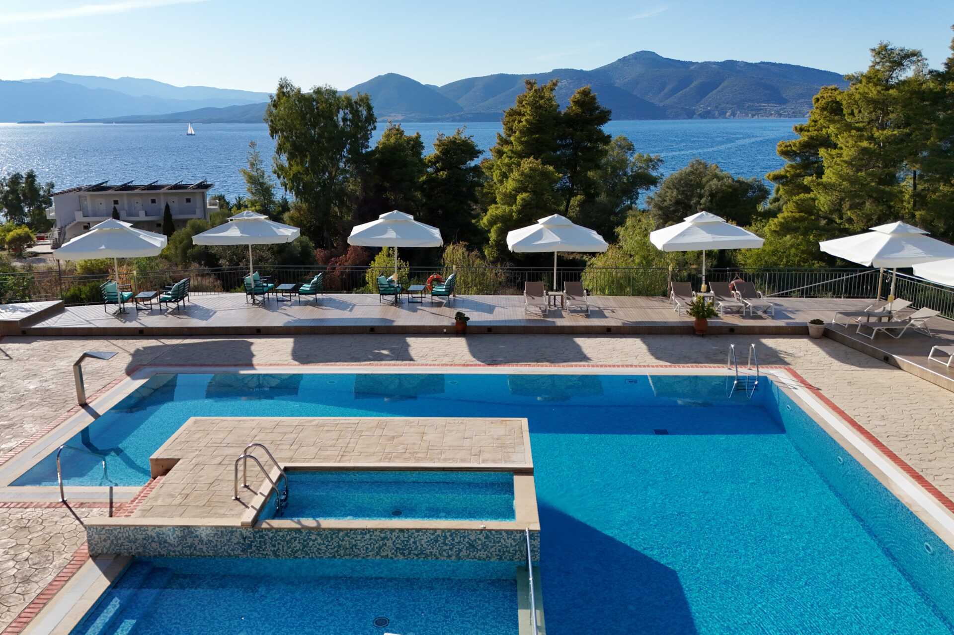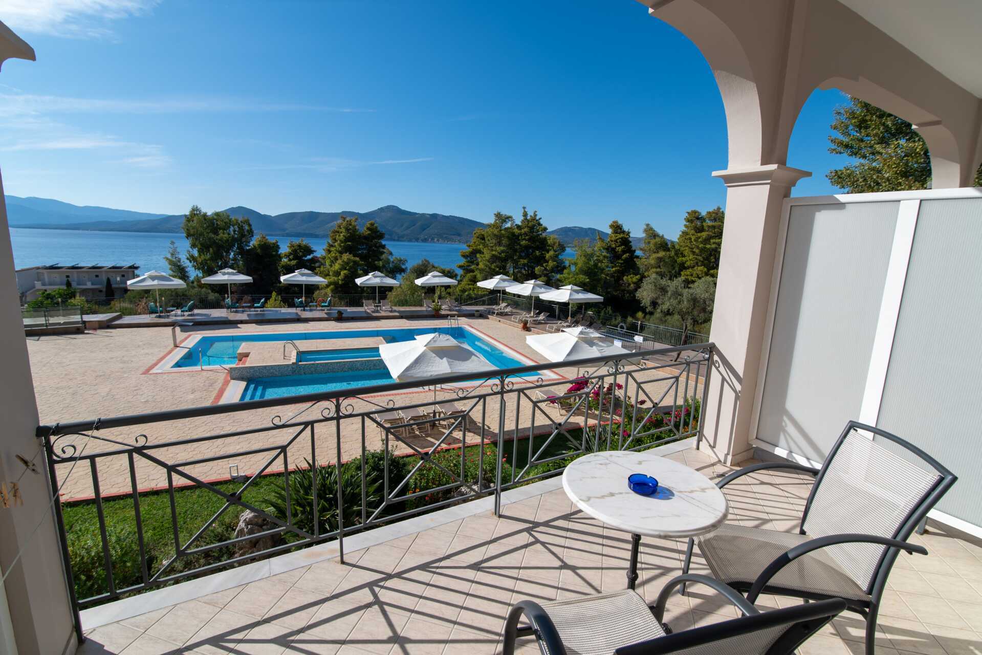 Nästan allt! Att hotellet var litet, lugnt och familjärt. Närheten till egen strand. Det fina poolområdet. Bra frukost (det största utbud jag har upplevt i Grekland!). God lunch och middag med rimliga priser och generösa öppettider i restaurangen. Sköna sängar och välfungerande AC utan extra kostnad. Stora uteplatser/balkonger till varje rum. Perfekt wifi på hela hotellområdet.