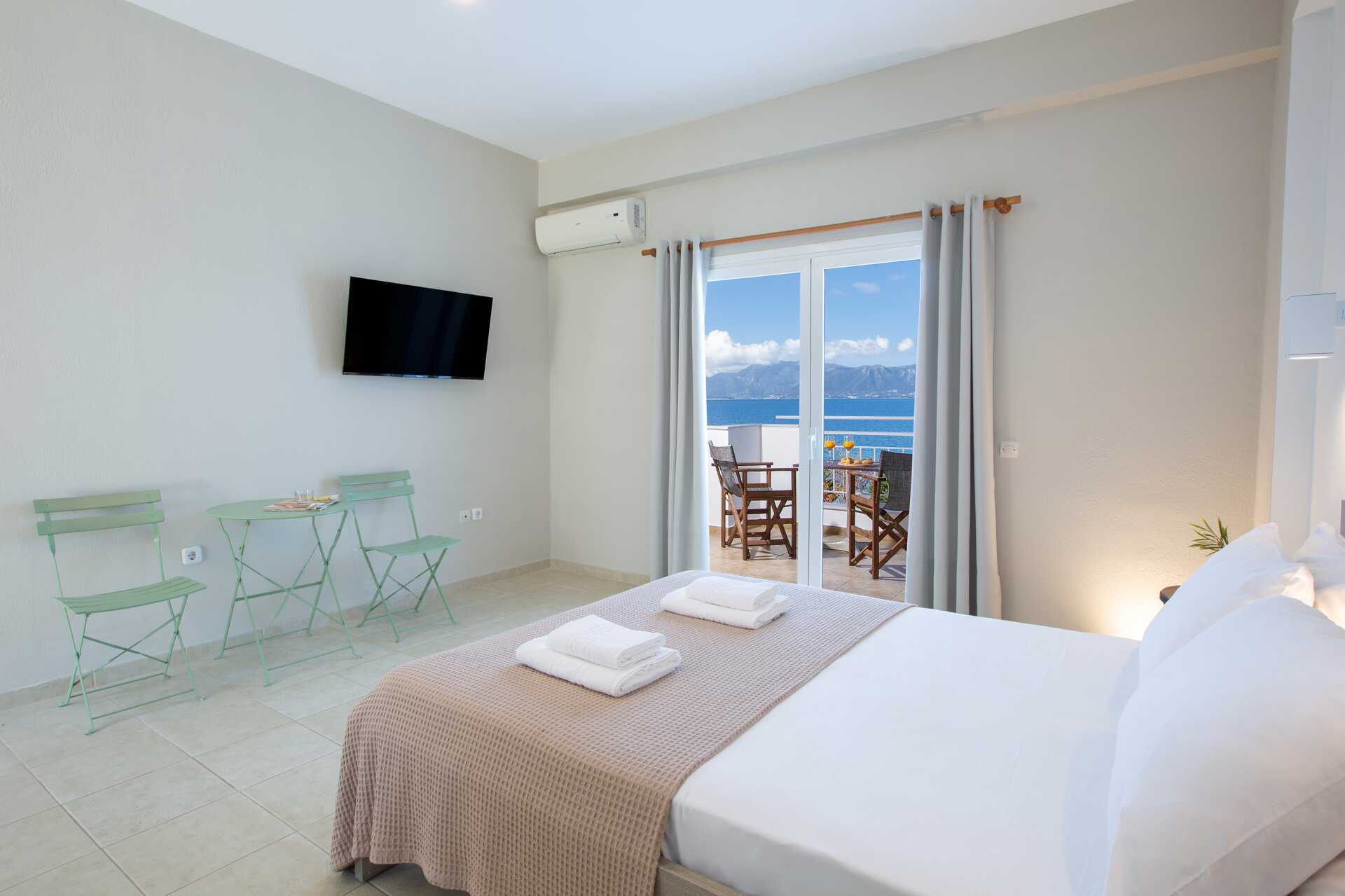 Hotellets rymliga och ljusa rum lockar med en balkong eller terrass mot havet. Från balkongerna har du havsutsikt och från markterrasserna en begränsad havsutsikt.