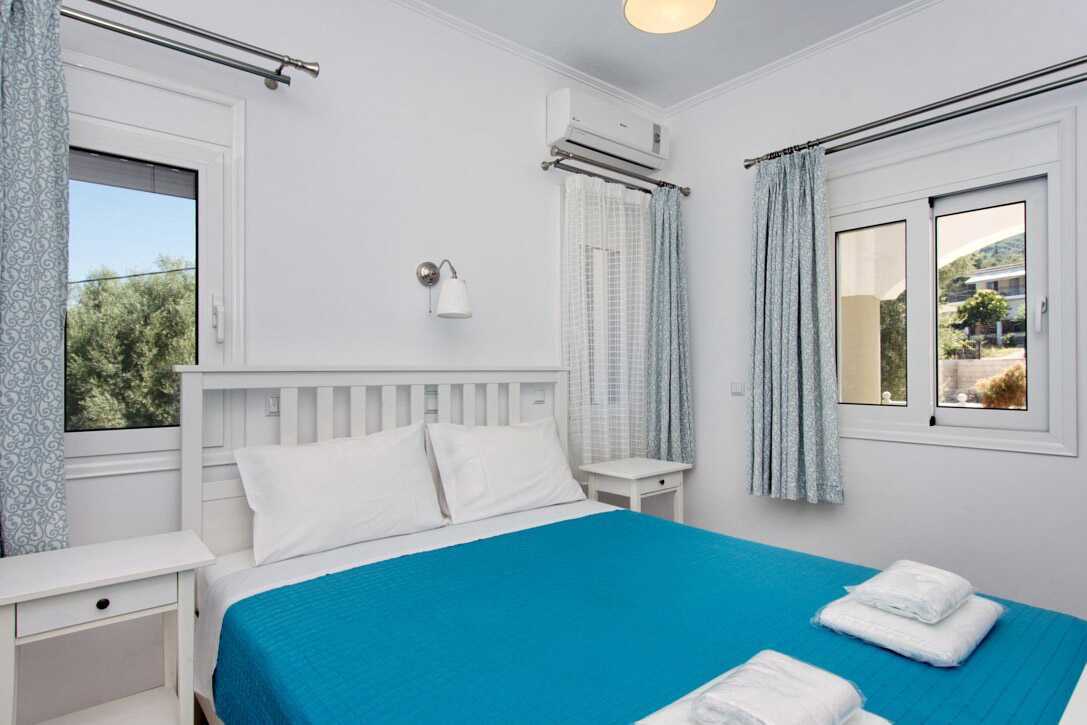 Trerumslägenhet med markterrass och begränsad havsutsikt. Två sovrum och ett kombinerat vardagsrum med minikök. Minikök med kokplattor, ugn, kylskåp, kaffebryggare, mikrovågsugn, vattenkokare och enkel köksutrustning. Tvättmaskin. Wifi, luftkonditionering och deponering ingår. Tv med internationella kanaler. Städning 5 ggr/vecka.