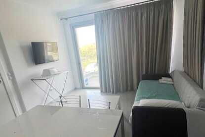 Tvårumslägenhet med balkong. Ett sovrum och ett kombinerat vardagsrum med minikök. En dubbelsäng eller två enkelsängar. Möjlighet till extrabädd i bäddsoffa. Minikök med kokplattor, ugn, kylskåp och enkel köksutrustning. Wifi, luftkonditionering och deponering ingår. Tvättmaskin. Badrum med dusch och wc. Städning 5 ggr/vecka.