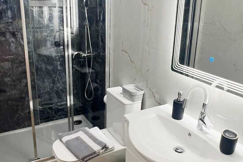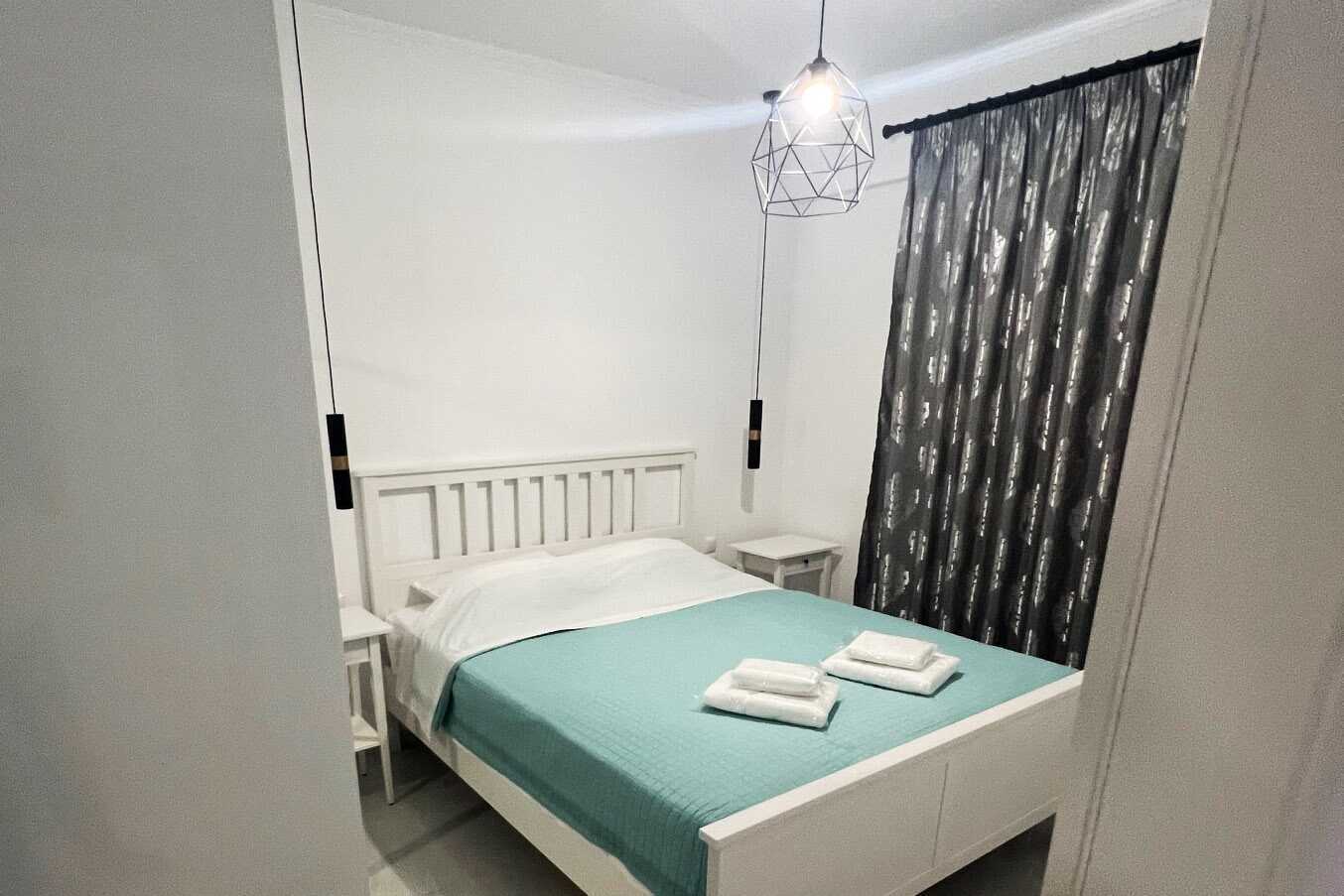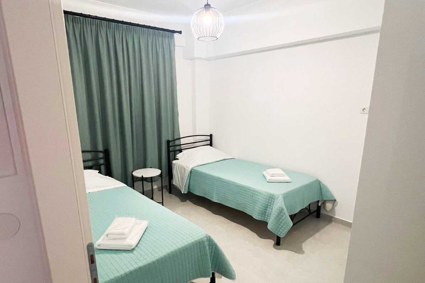 Trerumslägenhet med balkong. Två sovrum och ett kombinerat vardagsrum med minikök. Ett sovrum med en dubbelsäng och ett sovrum med två enkelsängar. Minikök med kokplattor, ugn, kylskåp och enkel köksutrustning. Wifi, luftkonditionering och deponering ingår. Tvättmaskin. Badrum med dusch och wc. Städning 5 ggr/vecka.