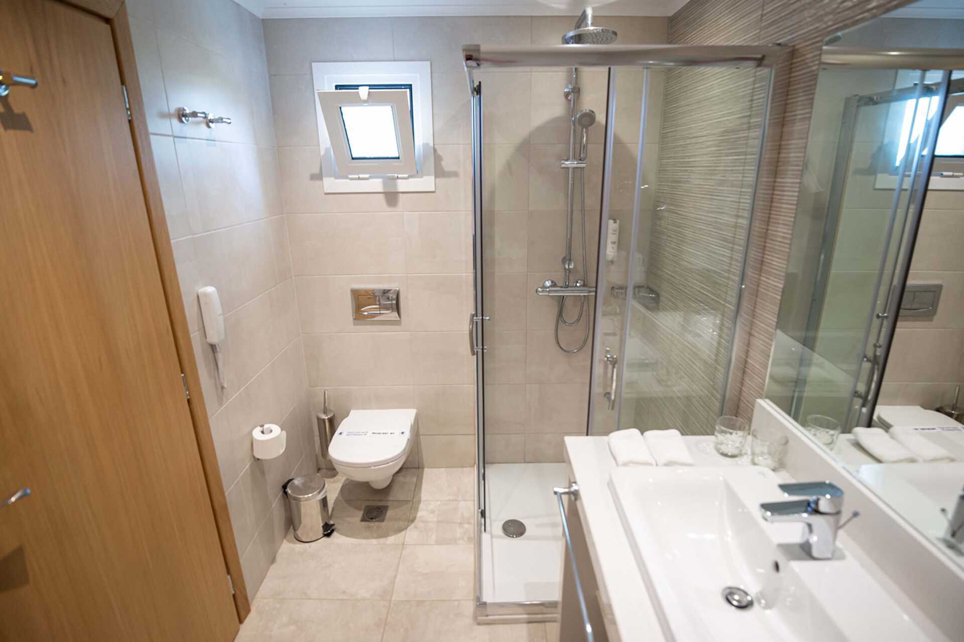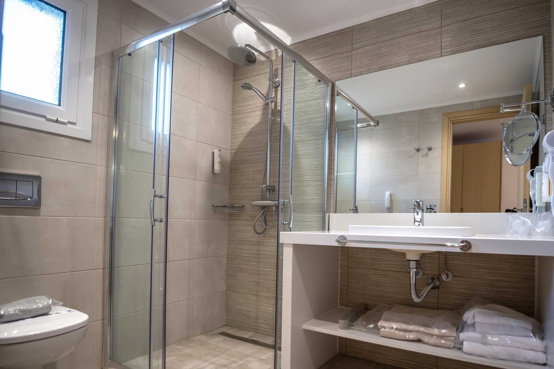 Dubbelrum med balkong eller markterrass. En dubbelsäng eller två enkelsängar. Möjlighet till extrabädd i bäddsoffa. Wifi, luftkonditionering och deponering ingår. Kylskåp. Vattenkokare samt kaffe och te. Tv med internationella kanaler. Hårtork. Badrum med dusch och wc. Städning 7 ggr/vecka.