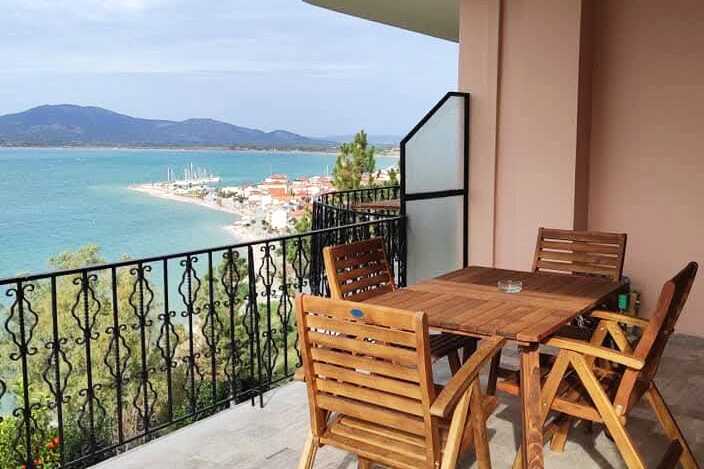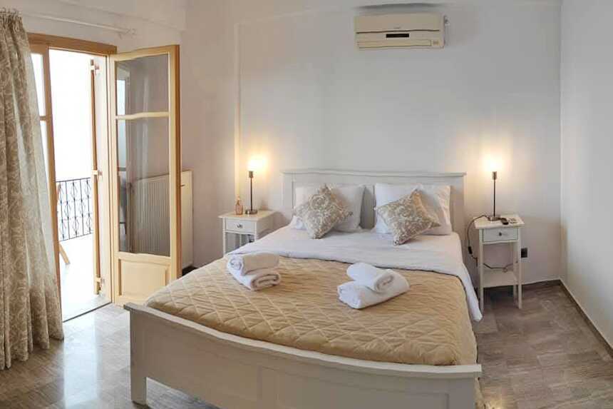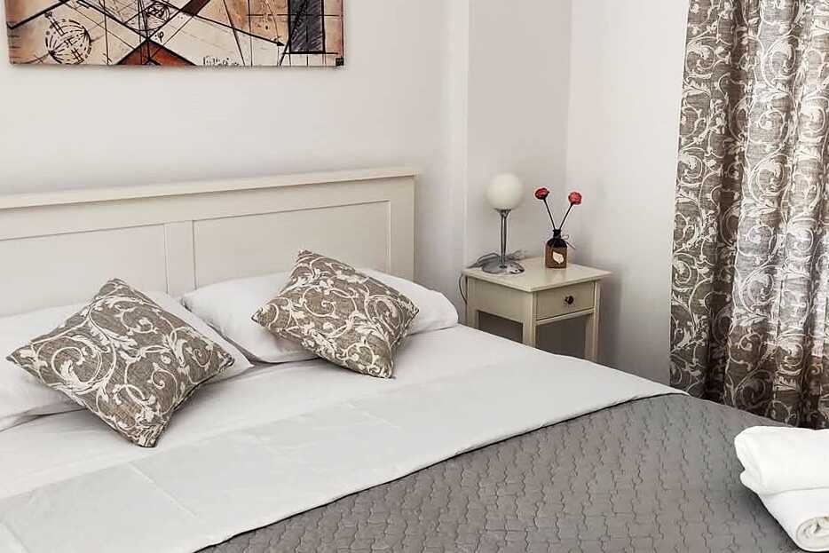 Enrumslägenhet med balkong med havsutsikt eller markbalkong med havsutsikt. Sovrum kombinerat med minikök. En dubbelsäng. Minikök med kokplattor, kylskåp, mikrovågsugn, vattenkokare och enkel köksutrustning. Wifi och luftkonditionering ingår. Tv med lokala kanaler. Hårtork. Badrum med dusch och wc. Städning 3 ggr/vecka.