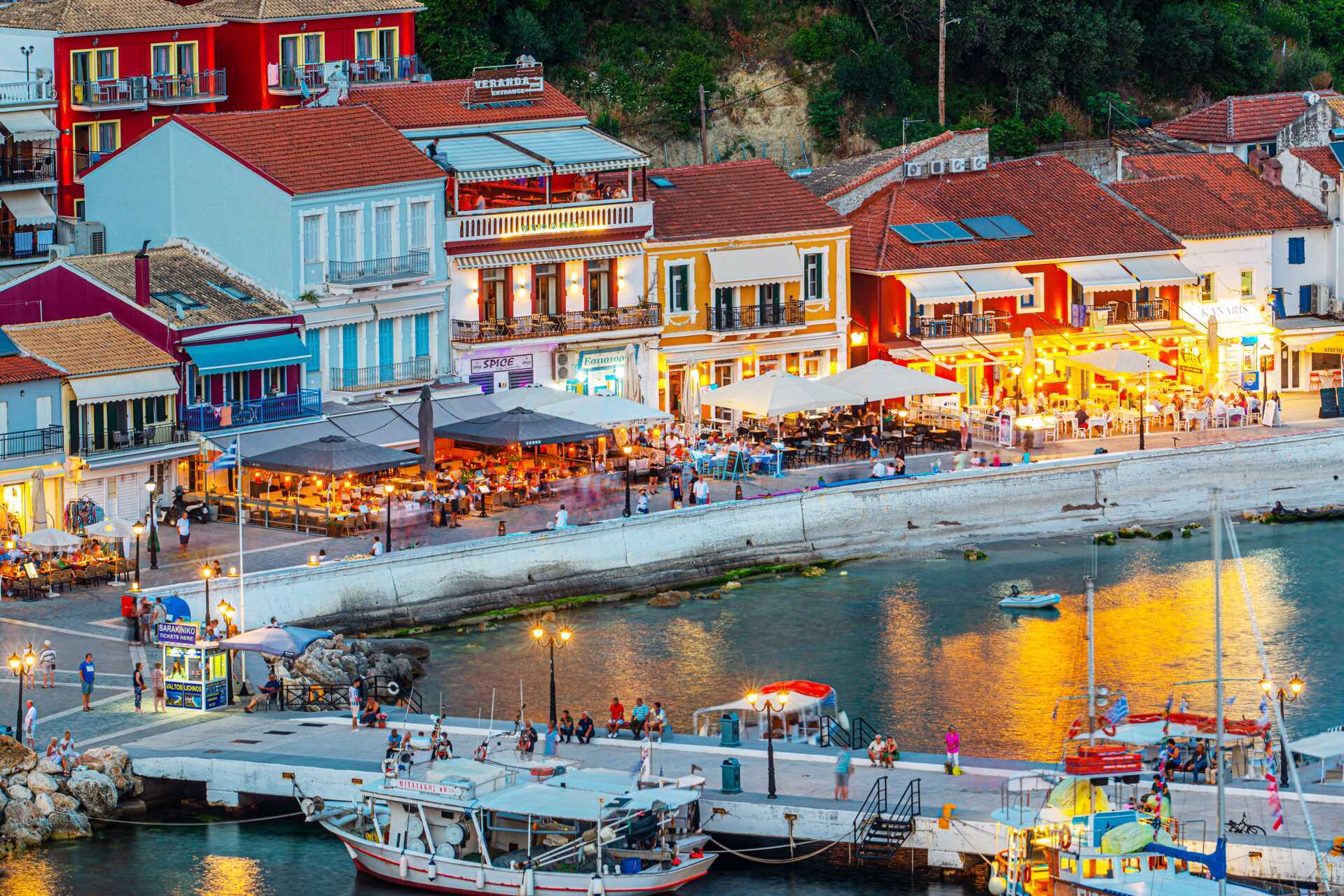 Parga ligger som en vacker amfiteater vid hamnen. På kvällarna är det full fart runt hamnen, med mysig belysning från de populära tavernorna som ligger tätt intill varandra. Det doftar grillat och semestrande par strosar runt i den ljumma kvällsbrisen.