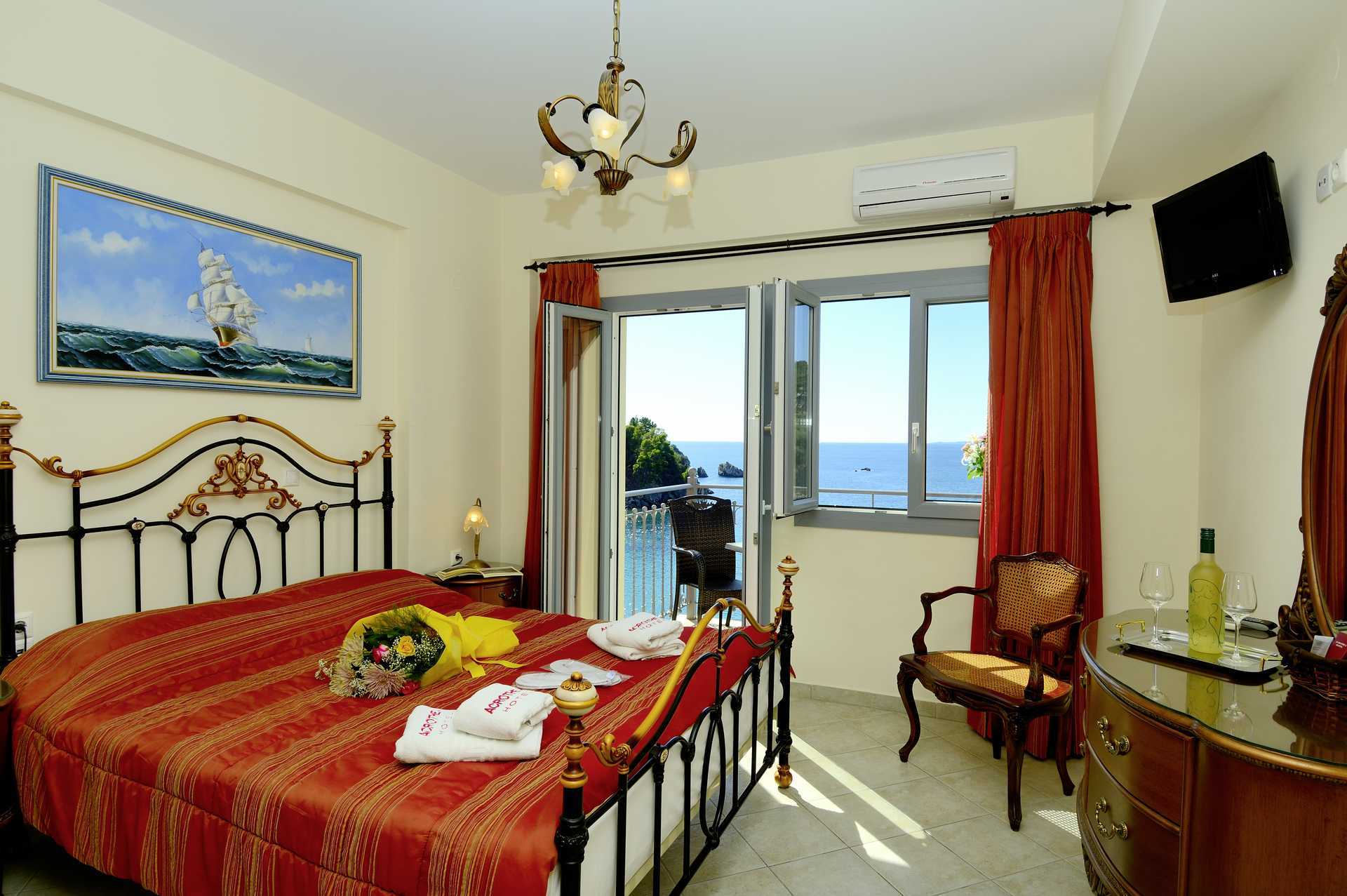 Dubbelrum med balkong eller terrass, vissa med begränsad havsutsikt. En dubbelsäng eller två enkelsängar. Wifi, luftkonditionering och deponering ingår. Kylskåp. Vattenkokare. Tv med lokala kanaler. Hårtork. Badrum med badkar eller dusch och wc. Städning 7 ggr/vecka.