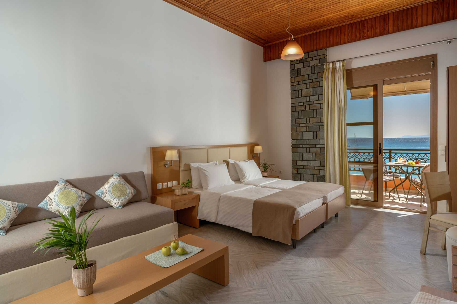 Större enrumslägenheter med balkong och havsutsikt. Varierande storlek. Sovrum med kombinerat minikök. Två enkelsängar. Möjlighet till extrabäddar i bäddsoffa. Minikök och kokplattor, kylskåp, kaffebryggare, vattenkokare, brödrost, mikrovågsugn och enkel köksutrustning. Wifi och luftkonditionering ingår. Deponering mot avgift. Tv med internationella kanaler. Hårtork. Badrum med dusch och wc. Städning 6 ggr/vecka.