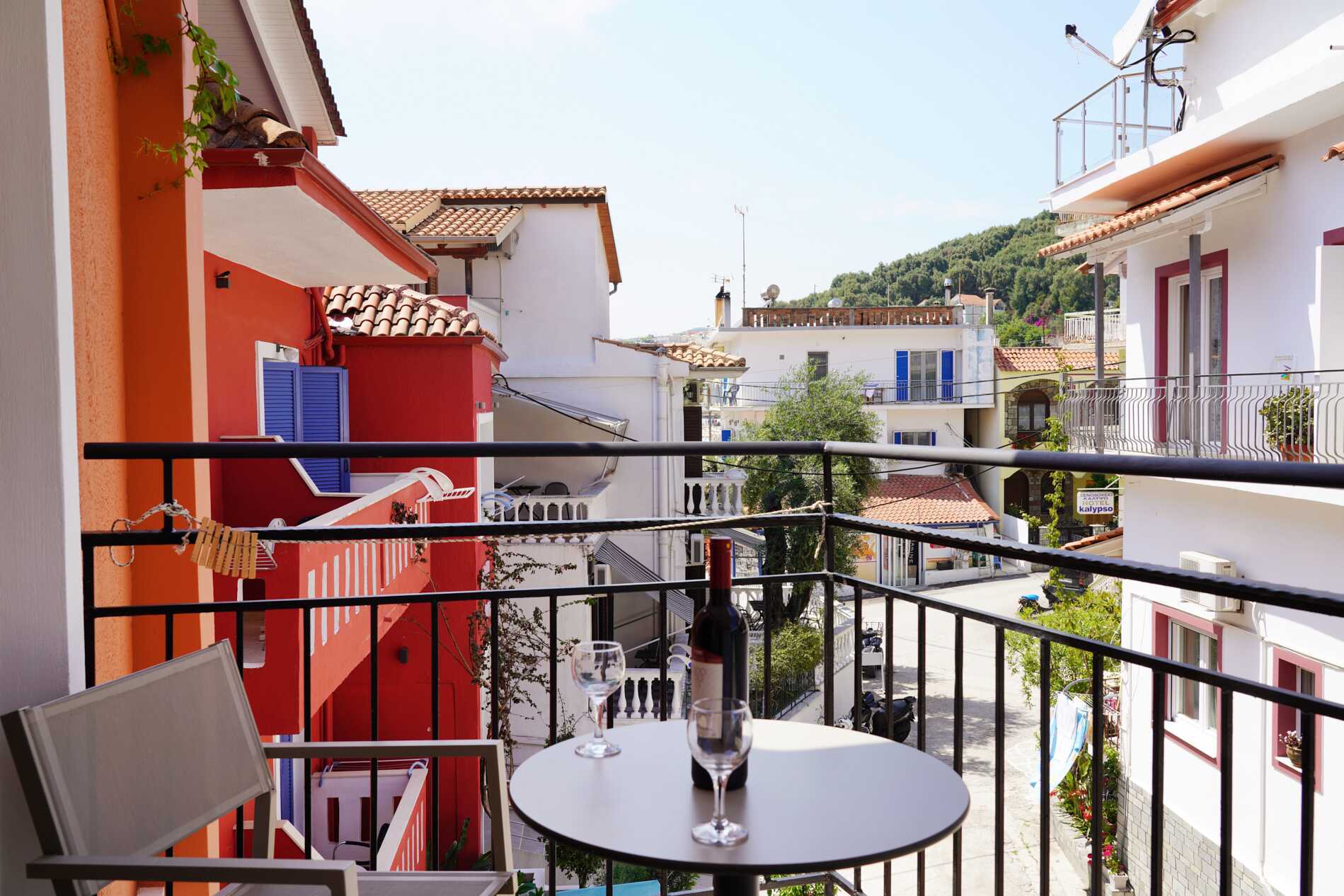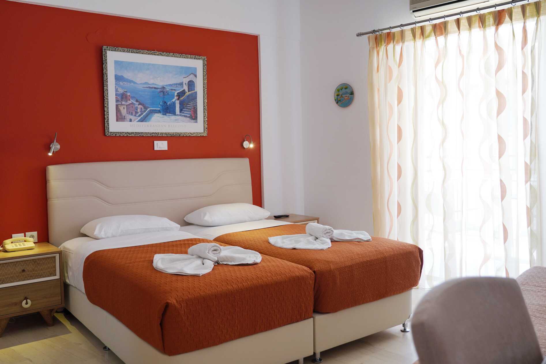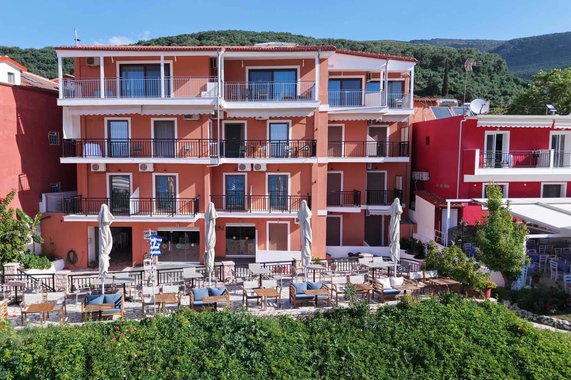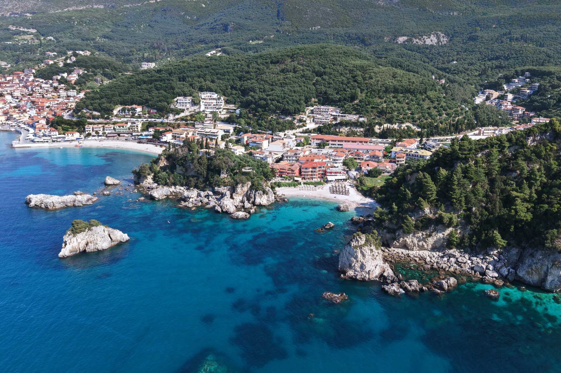 Hotellet ligger precis vid den lilla Piso Krioneri Beach i utkanten av Parga och nedanför hotellet finns solstolar och parasoller att hyra under högsäsong.