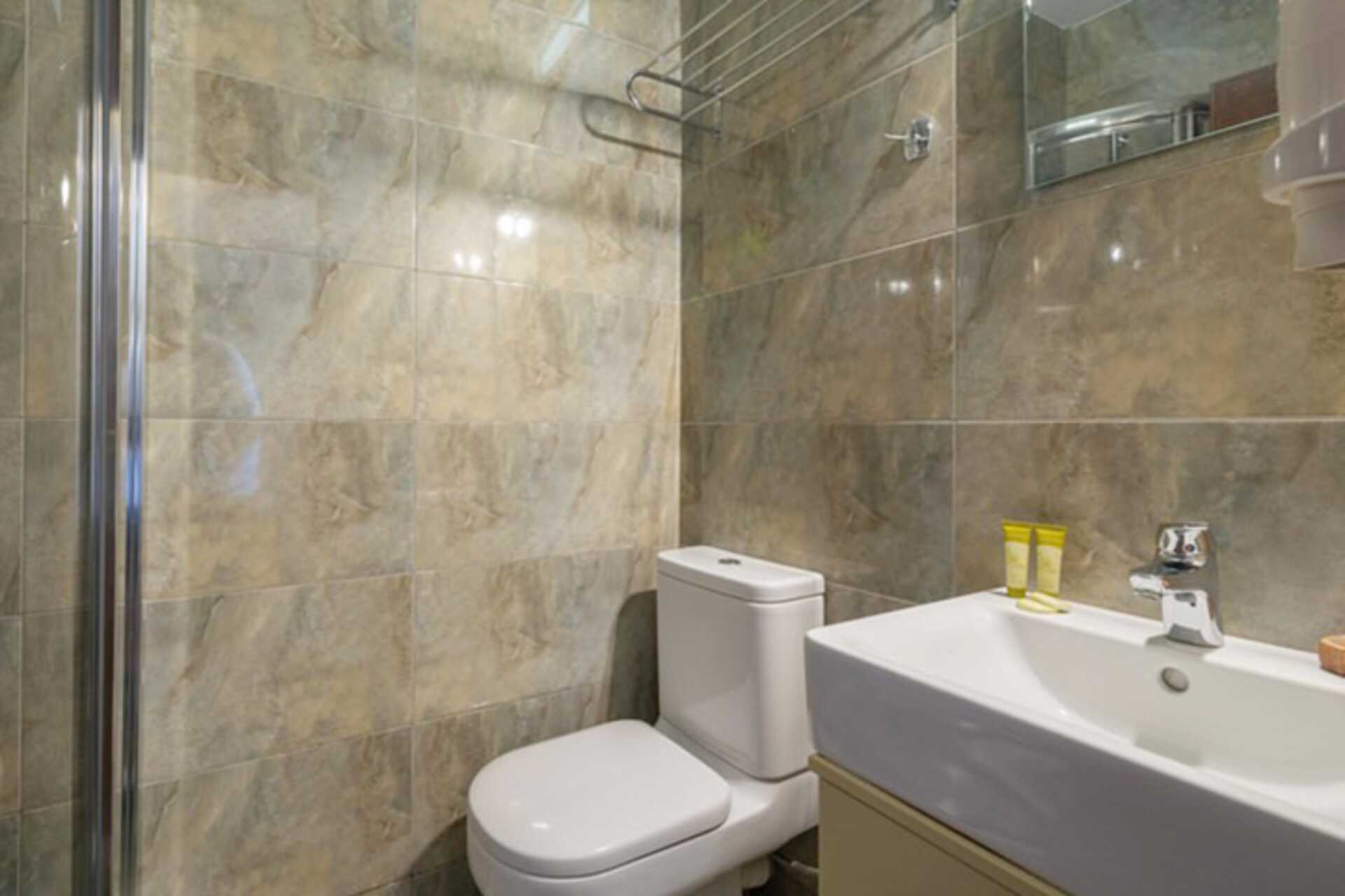Trerumslägenhet balkong eller terrass. Två sovrum och minikök med matplats. En dubbelsäng eller två enkelsängar varje sovrum. Minikök med kokplattor, kylskåp, kaffebryggare, vattenkokare och enkel köksutrustning. Matplats på uteplatsen. Luftkonditionering, deponering och wifi ingår. Tv med internationella kanaler. Hårtork. Badrum med badkar eller dusch och wc. Städning 7 ggr/vecka. Barn under två år räknas in i maxantalet personer i lägenheten.