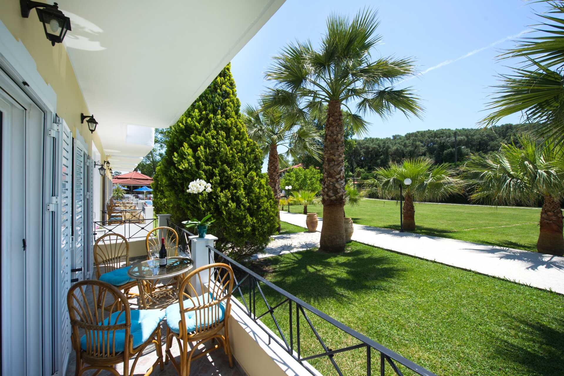 Deluxerum med balkong. En dubbelsäng eller två enkelsängar. Bäddsoffa i rummen för 3 personer. Luftkonditionering, deponering och wifi ingår. Kylskåp. Vattenkokare. Espresso kaffemaskin, kapslar ingår. Tv med internationella kanaler. Badrockar och tofflor. Hårtork. Badrum med dusch och wc. Städning 7 ggr/vecka. Barn under två år räknas in i maxantalet personer i rummet.