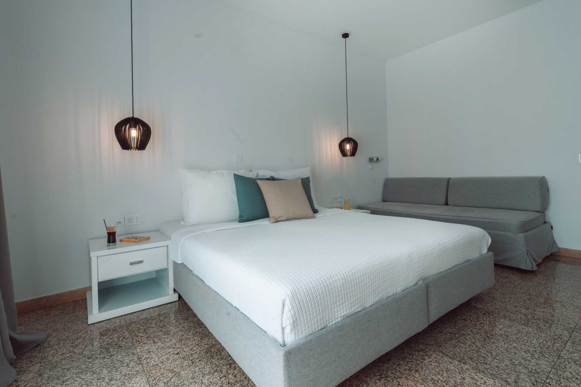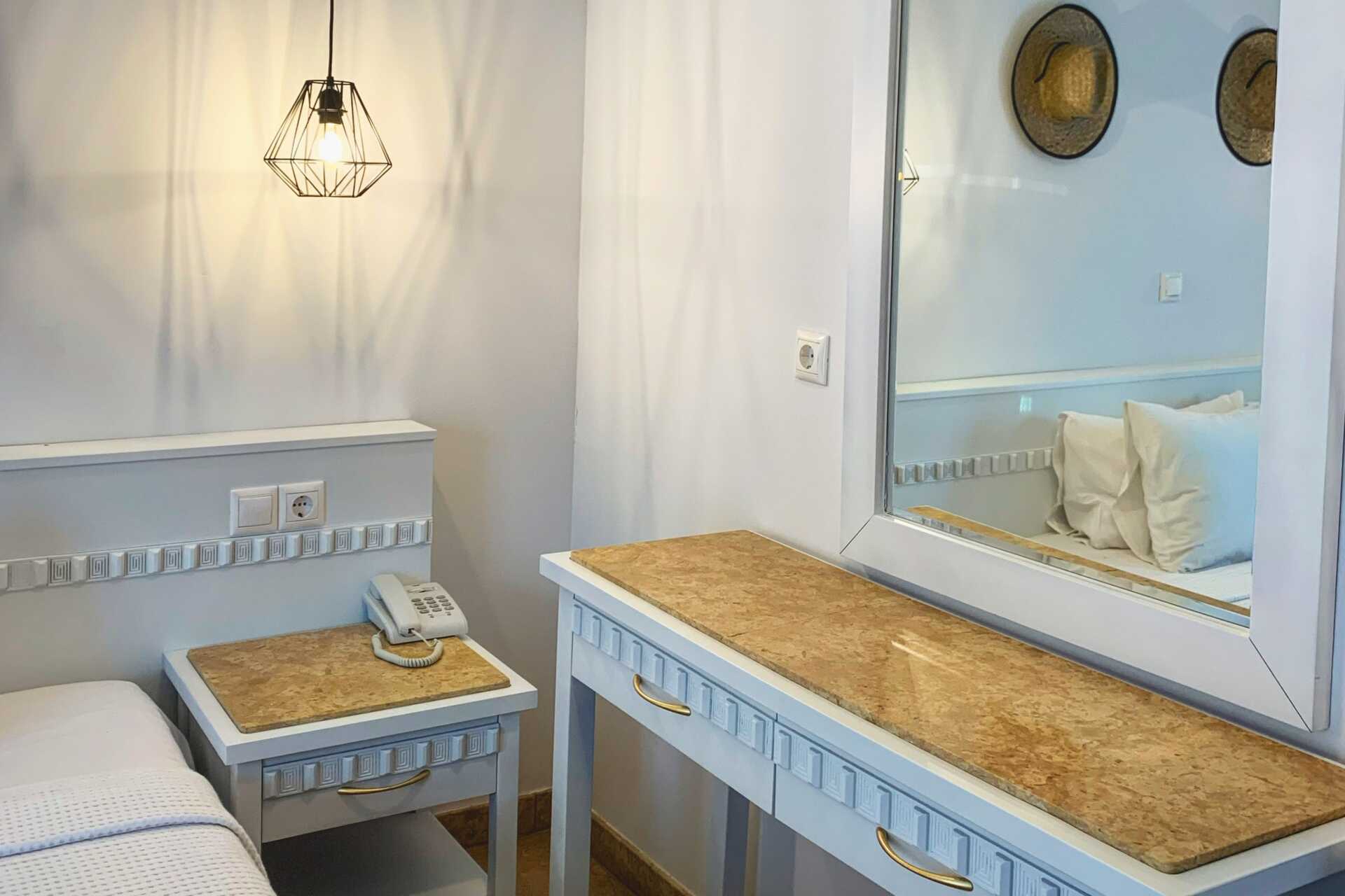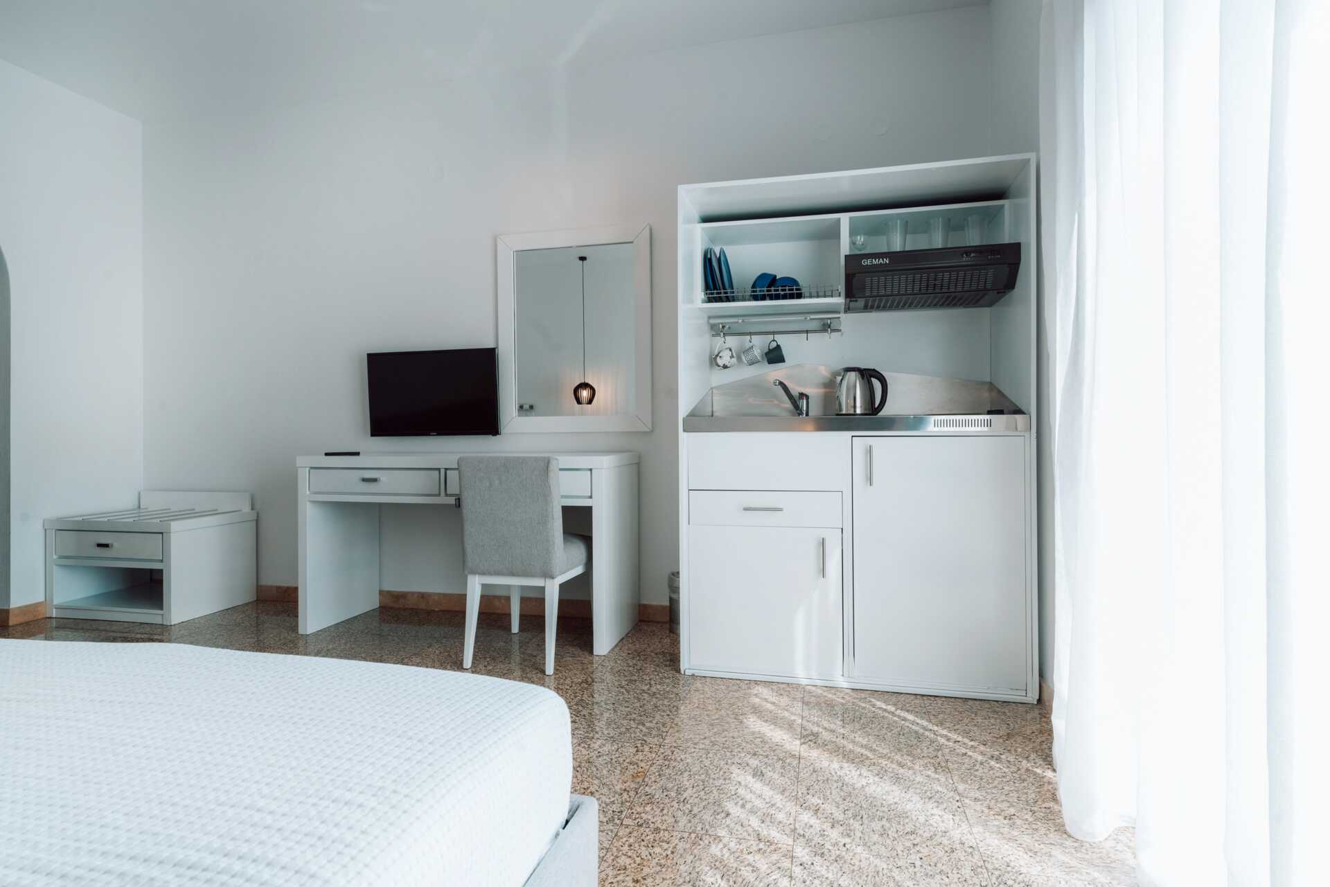 Enrumslägenhet med terrass, markterrass eller balkong. Sovrum kombinerat med minikök. Två enkelsängar. Minikök med kokplattor, kylskåp, vattenkokare samt enkel köksutrustning. Wifi, deponering och luftkonditionering ingår. Tv med internationella kanaler. Hårtork. Badrum med dusch och wc. Städning 7 ggr/vecka.