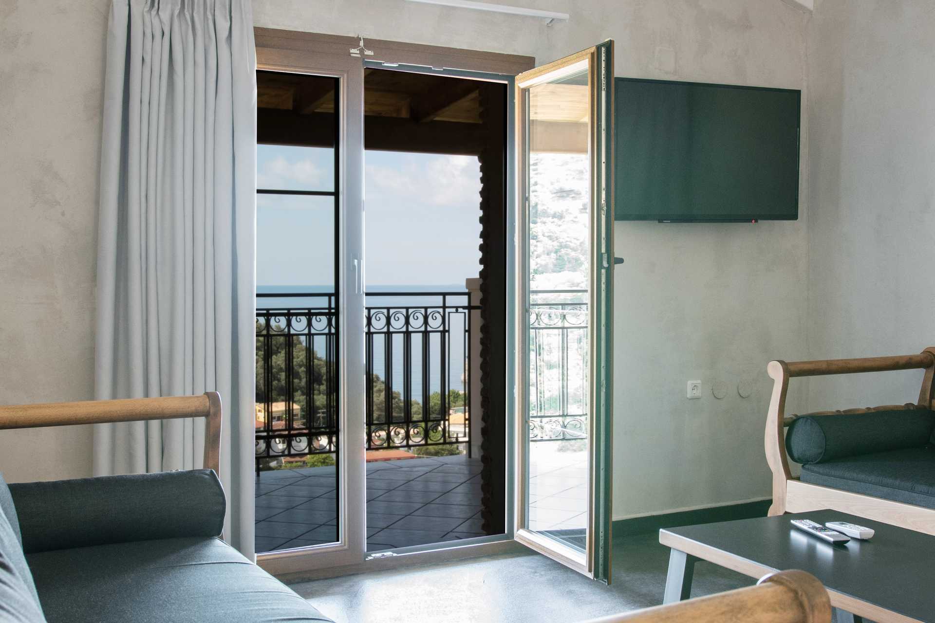 Superiorsvit med balkong eller terrass och havsutsikt. Ett sovrum med två enkelsängar och ett vardagsrum med möjlighet till extrabäddar i bäddsoffa. Wifi, luftkonditionering och deponering ingår. Kylskåp. En flaska vatten väntar i rummet vid ankomst. Tv med internationella kanaler. Badrum med badkar, separat dusch samt wc. Städning 6 ggr/vecka.
