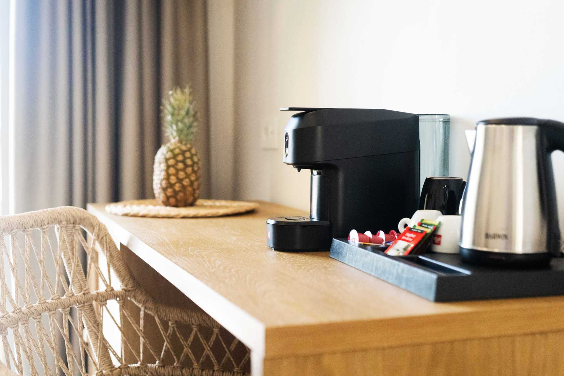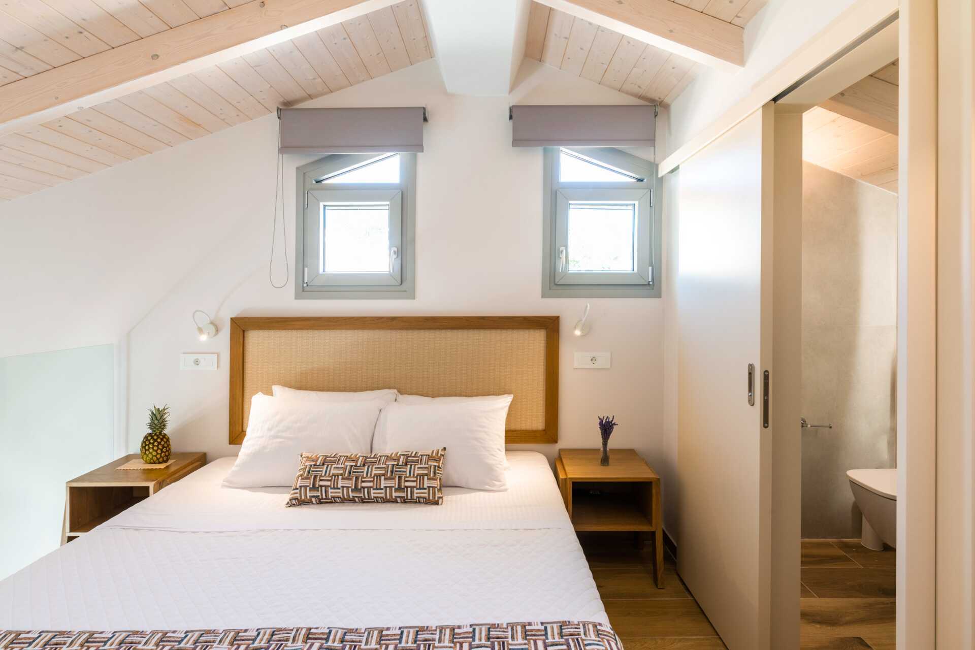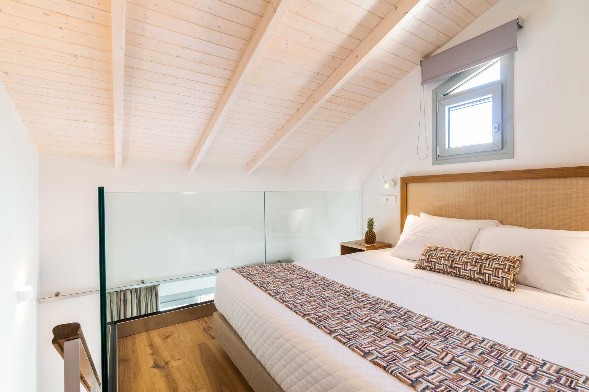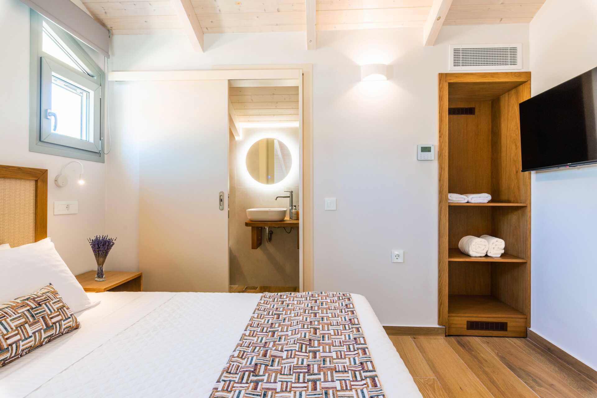 Dubbelrum med balkong, vissa med havsutsikt. På entréplan finns ett vardagsrum med en soffa samt ett badrum med hårtork, dusch och wc. En trappa upp finns ett sovloft med en dubbelsäng samt ett badrum med hårtork, dusch och wc. Wifi, luftkonditionering och deponering ingår. Kylskåp. Vattenkokare samt kaffe och te. Illy kaffemaskin - kapslar ingår vid ankomsten och finns sedan att köpa i receptionen. Tv med internationella kanaler. Tofflor. Städning 7 ggr/vecka.