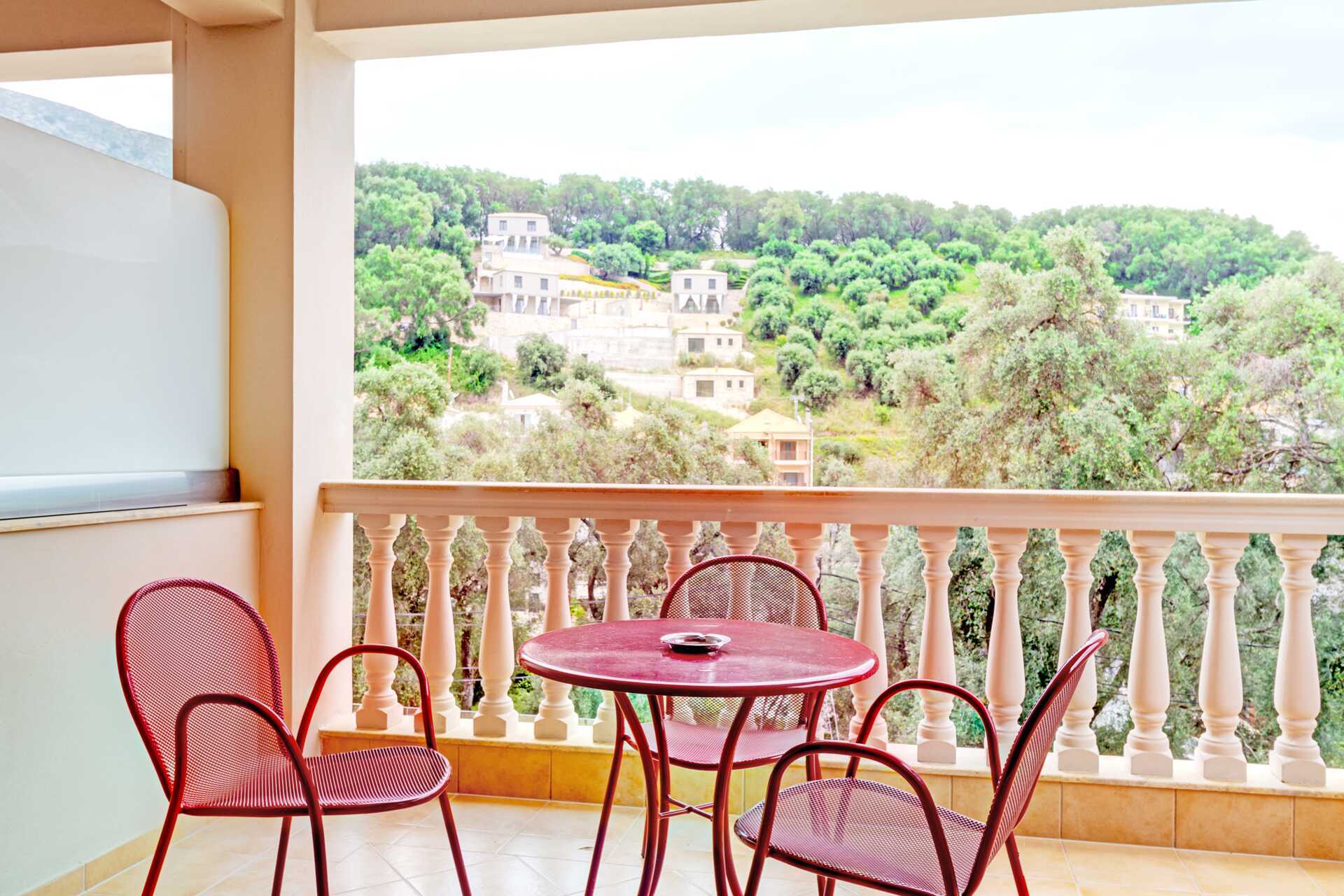 Deluxerum med balkong. En dubbelsäng eller två enkelsängar. Wifi, luftkonditionering och deponering ingår. Kylskåp. Tv med internationella kanaler. Hårtork. Badrum med dusch och wc. Städning 6 ggr/vecka.