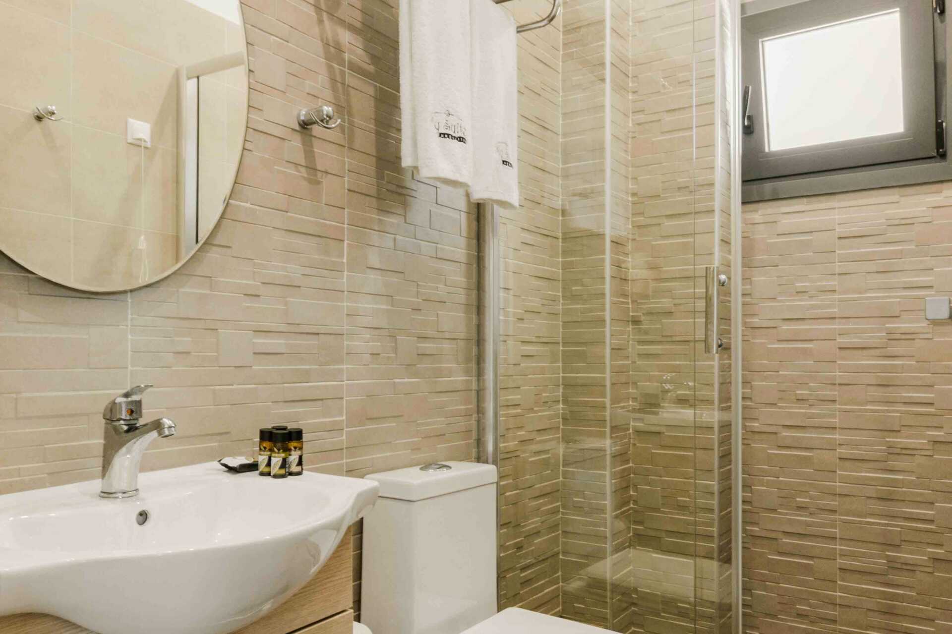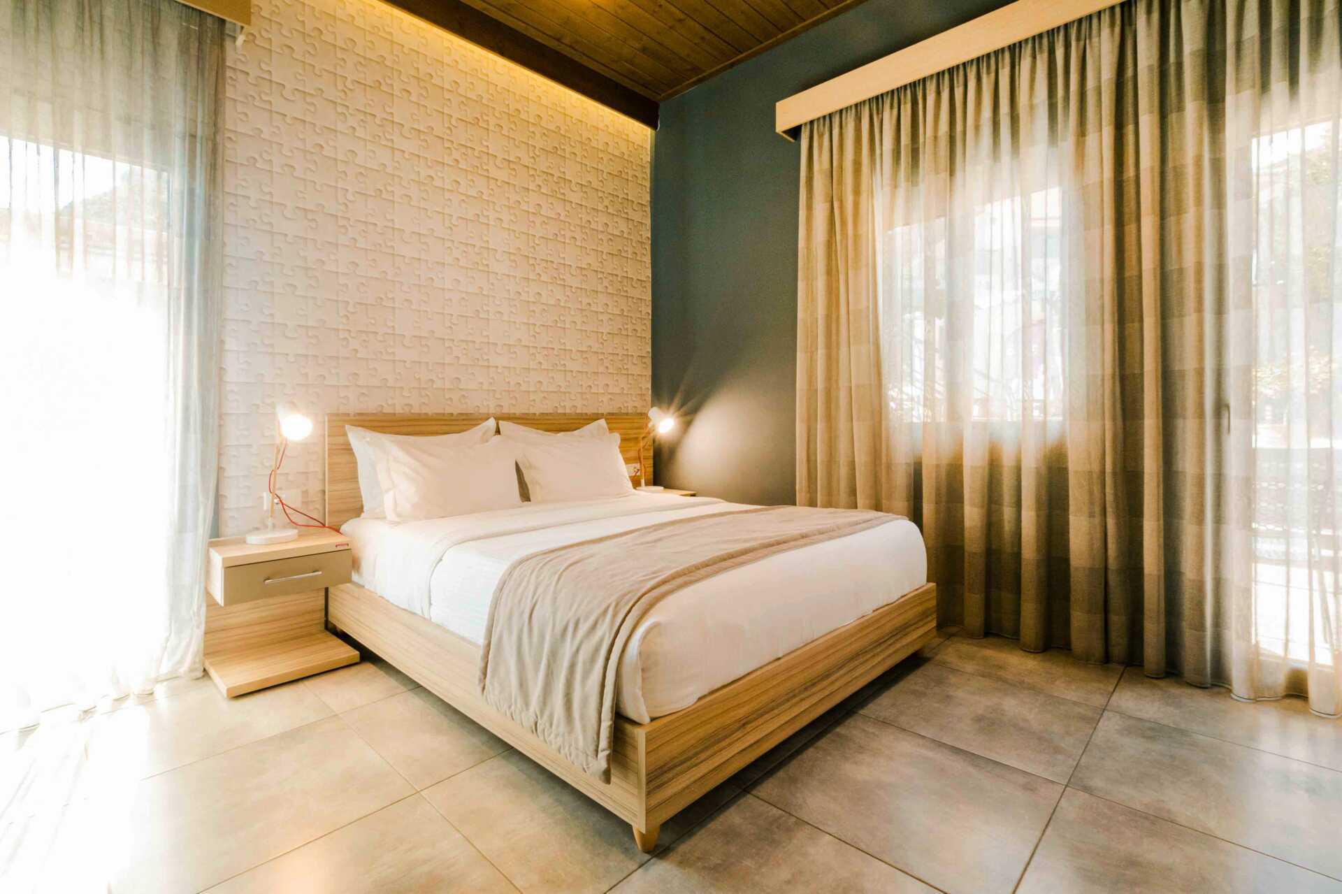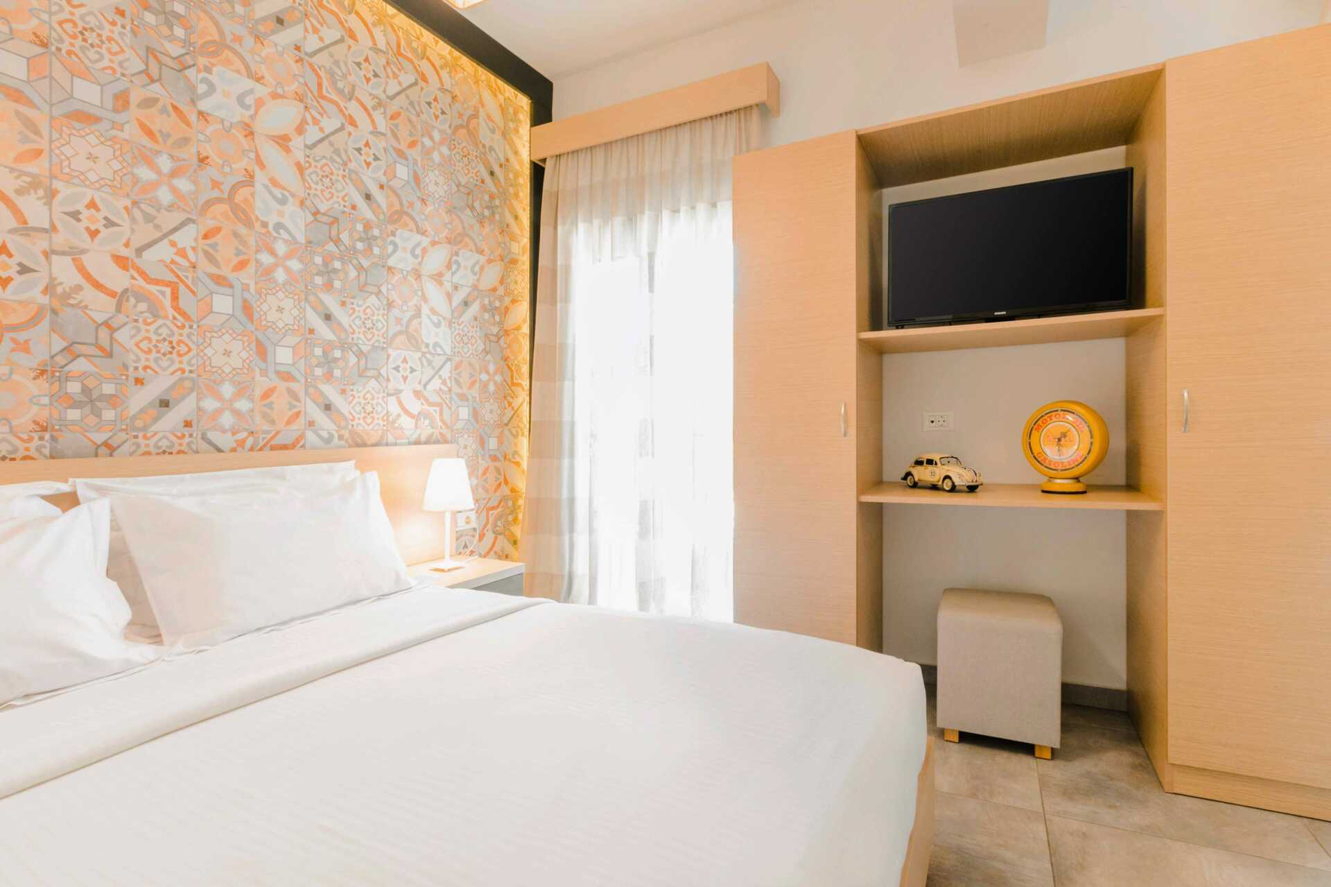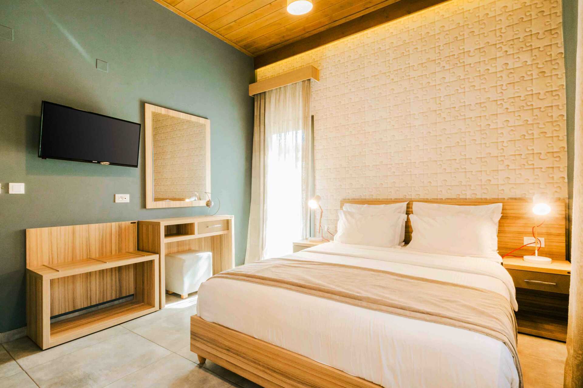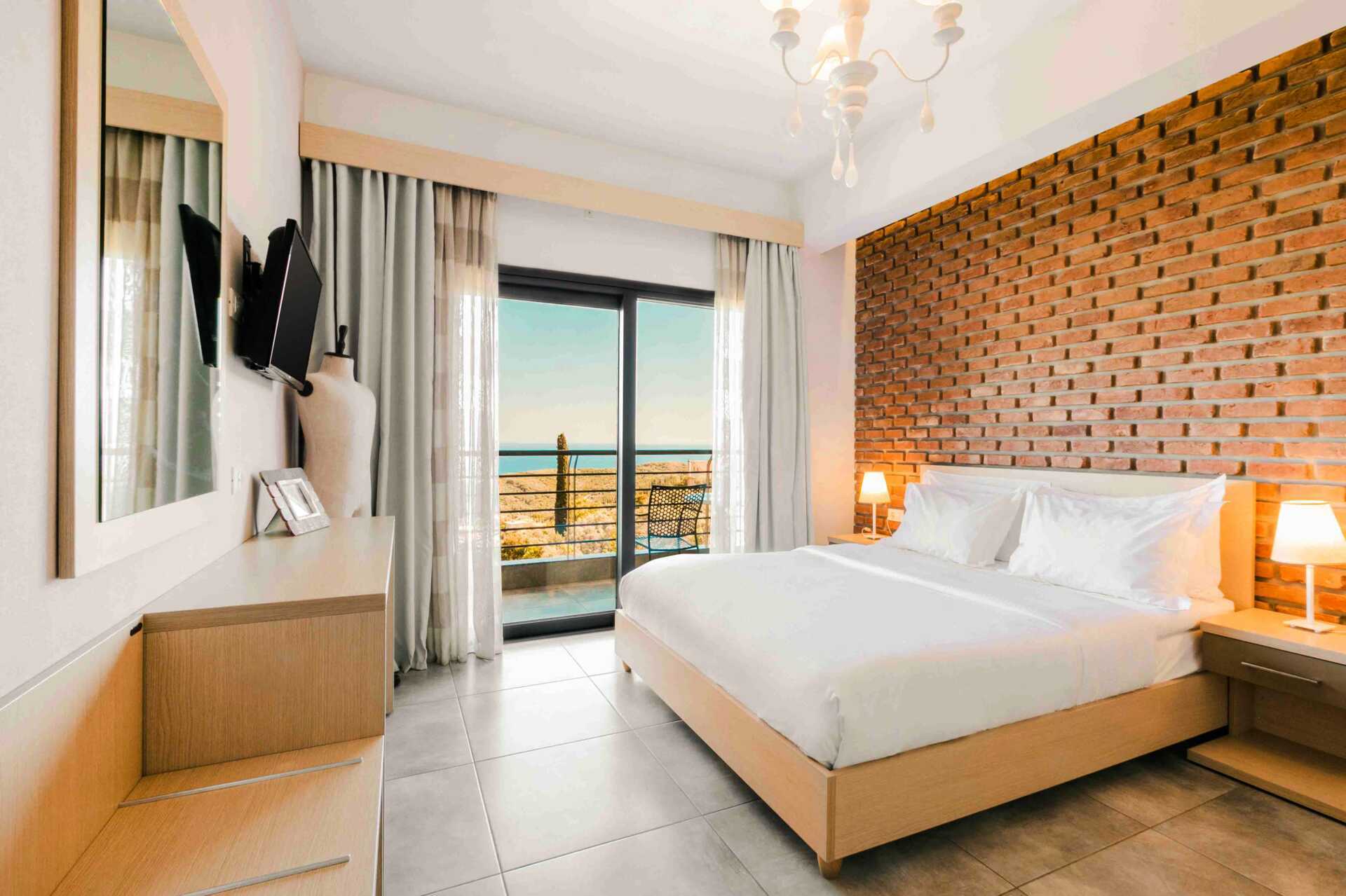Deluxerum med balkong, vissa med havsutsikt. En dubbelsäng. Wifi, luftkonditioneringoch deponring ingår. Kylskåp. Tv med internationella kanaler. Tofflor. Hårtårk. Badrum med dusch och wc. Städning 6 ggr/vecka.