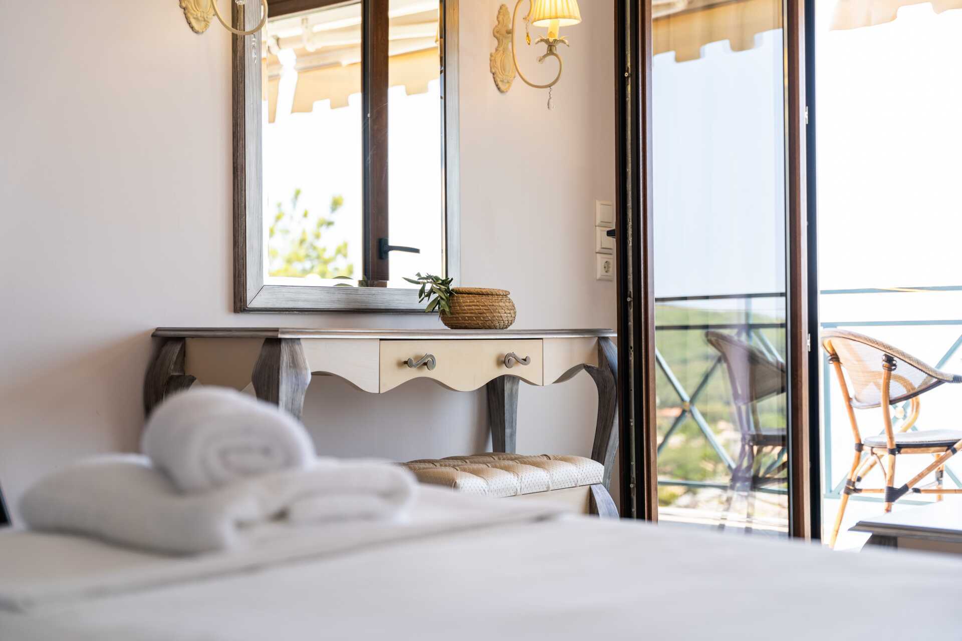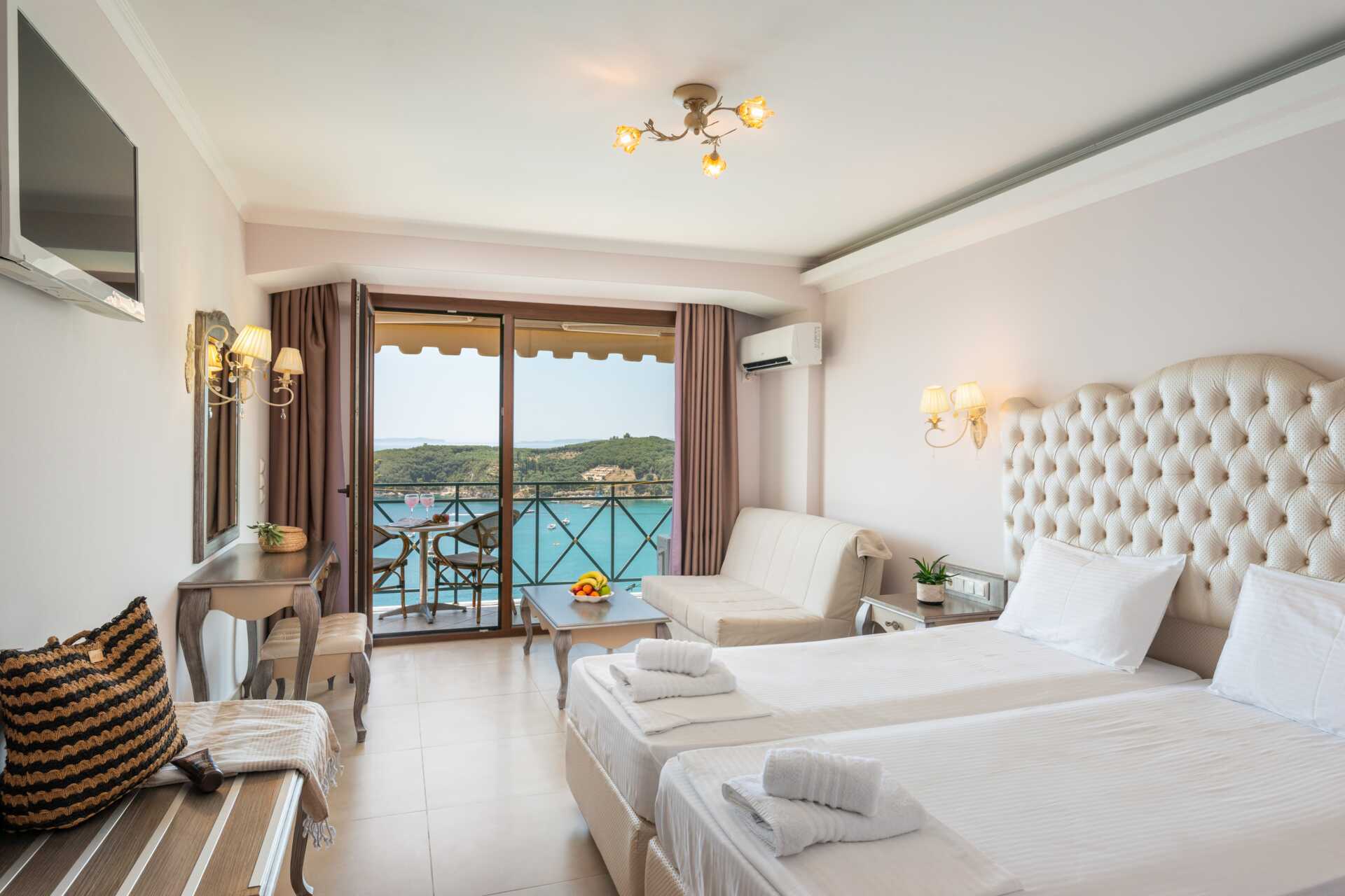 Svit med balkong och havsutsikt. En dubbelsäng eller två enkelsängar. Wifi och luftkonditionering ingår. Deponering mot avgift. Kylskåp. Tv med lokala kanaler. Hårtork. Badrum med dusch eller badkar samt wc. Städning 7 ggr/vecka.