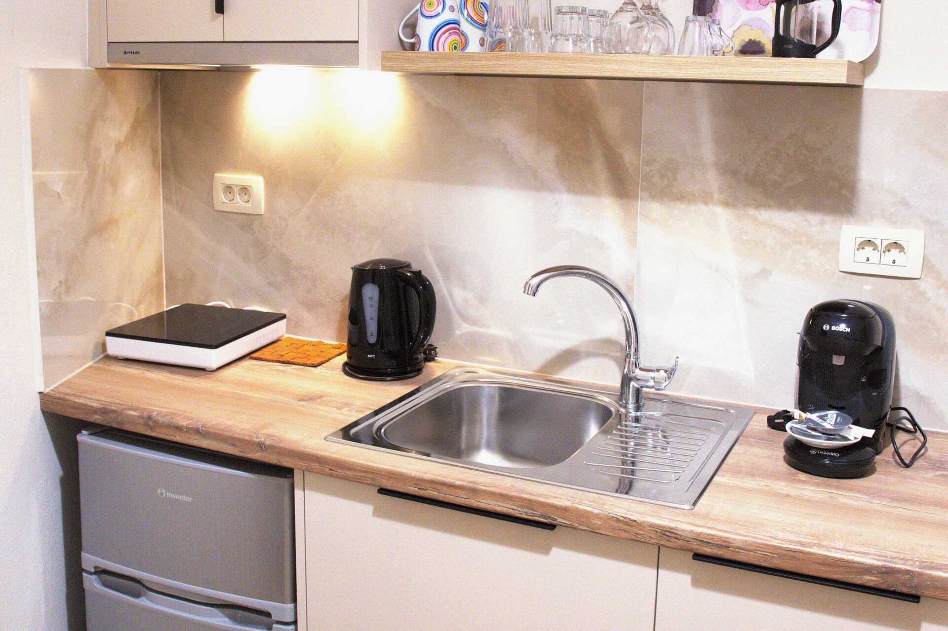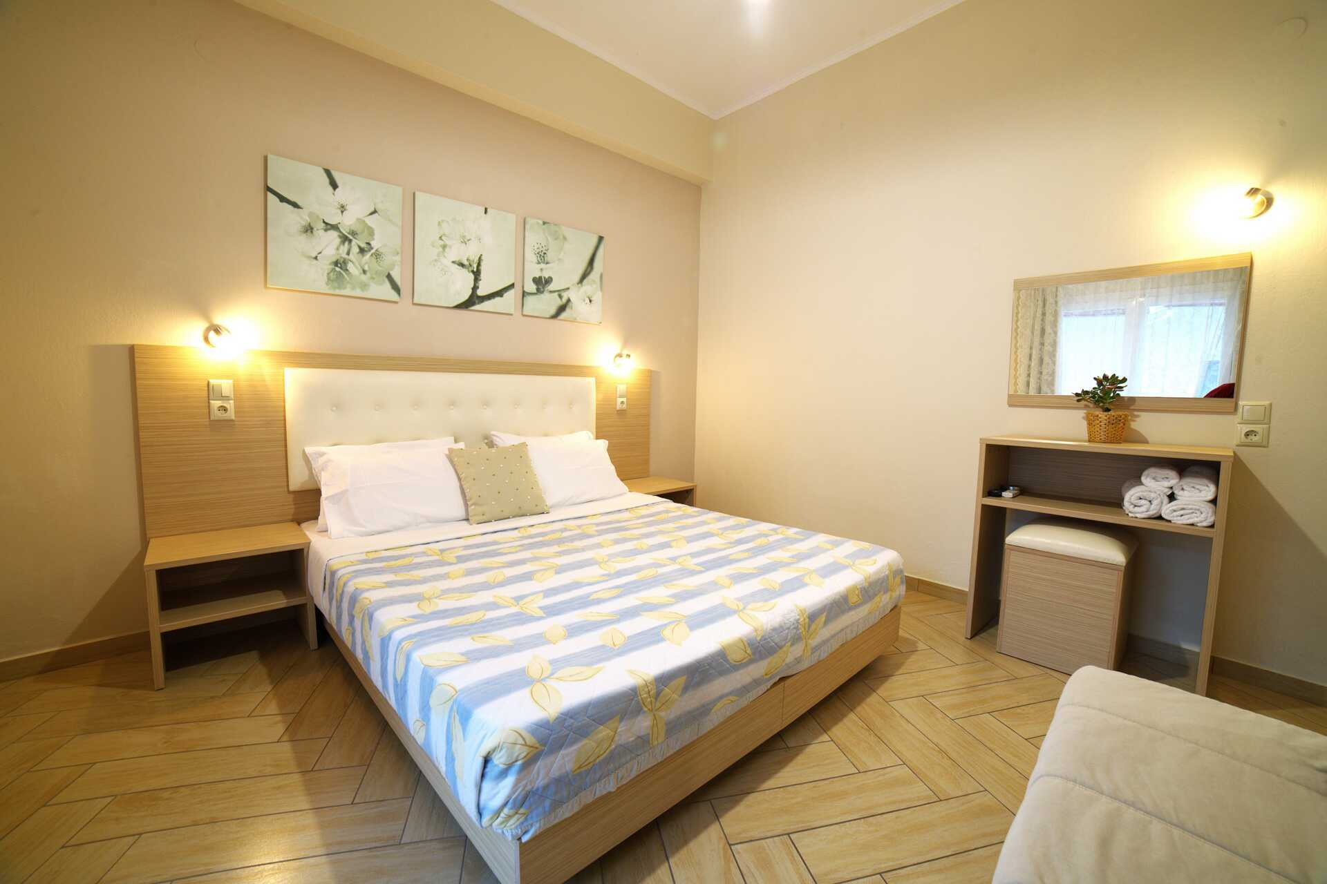 Enrumslägenhet med balkong. Sovrum kombinerat med minikök. En dubbelsäng. Minikök med kokplatta, kylskåp, vattenkokare, kaffemaskin och enkel köksutrustning. Wifi, luftkonditionering och deponering ingår. Hårtork. Badrum med dusch och wc. Städning 5 ggr/vecka.