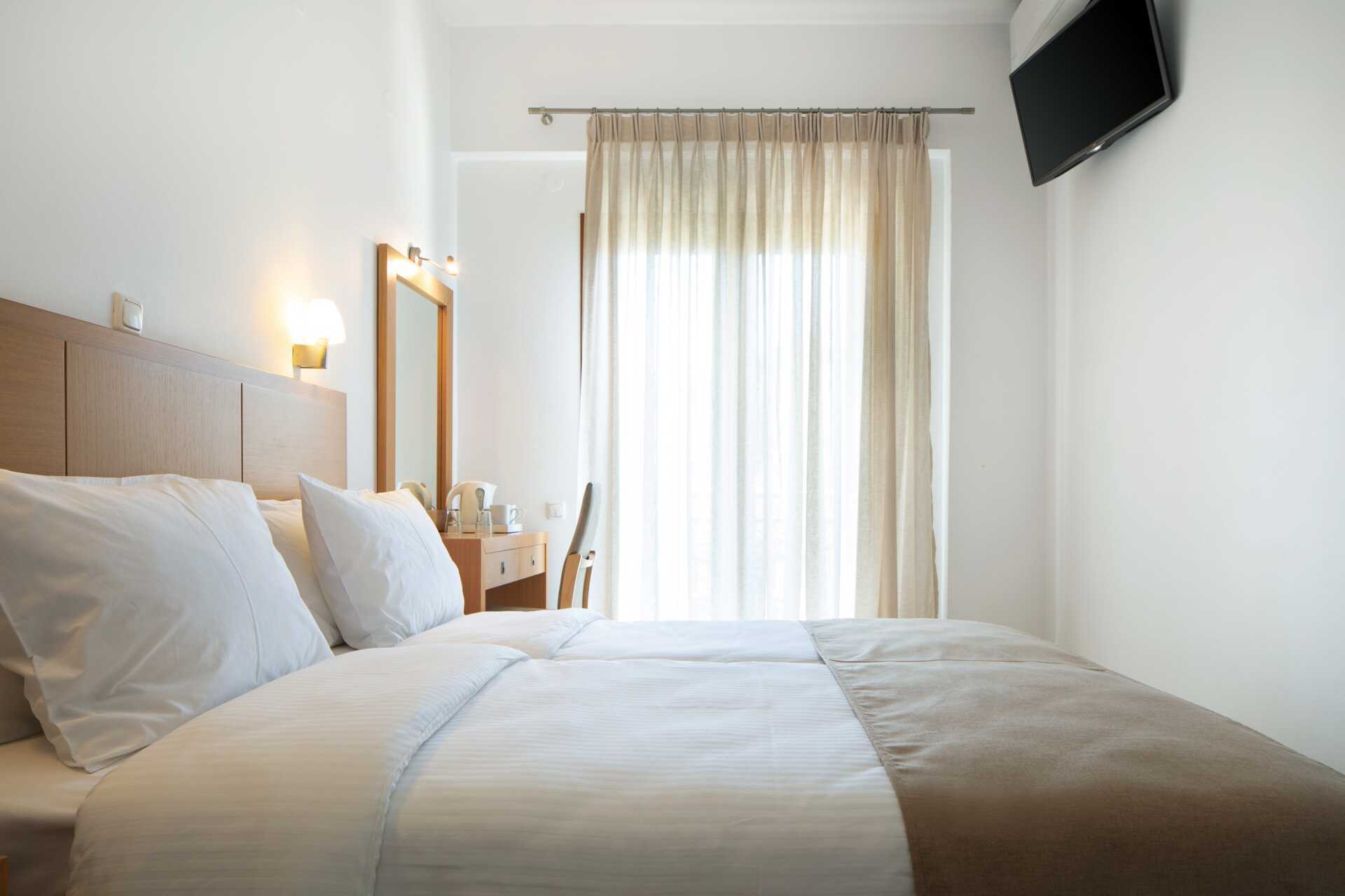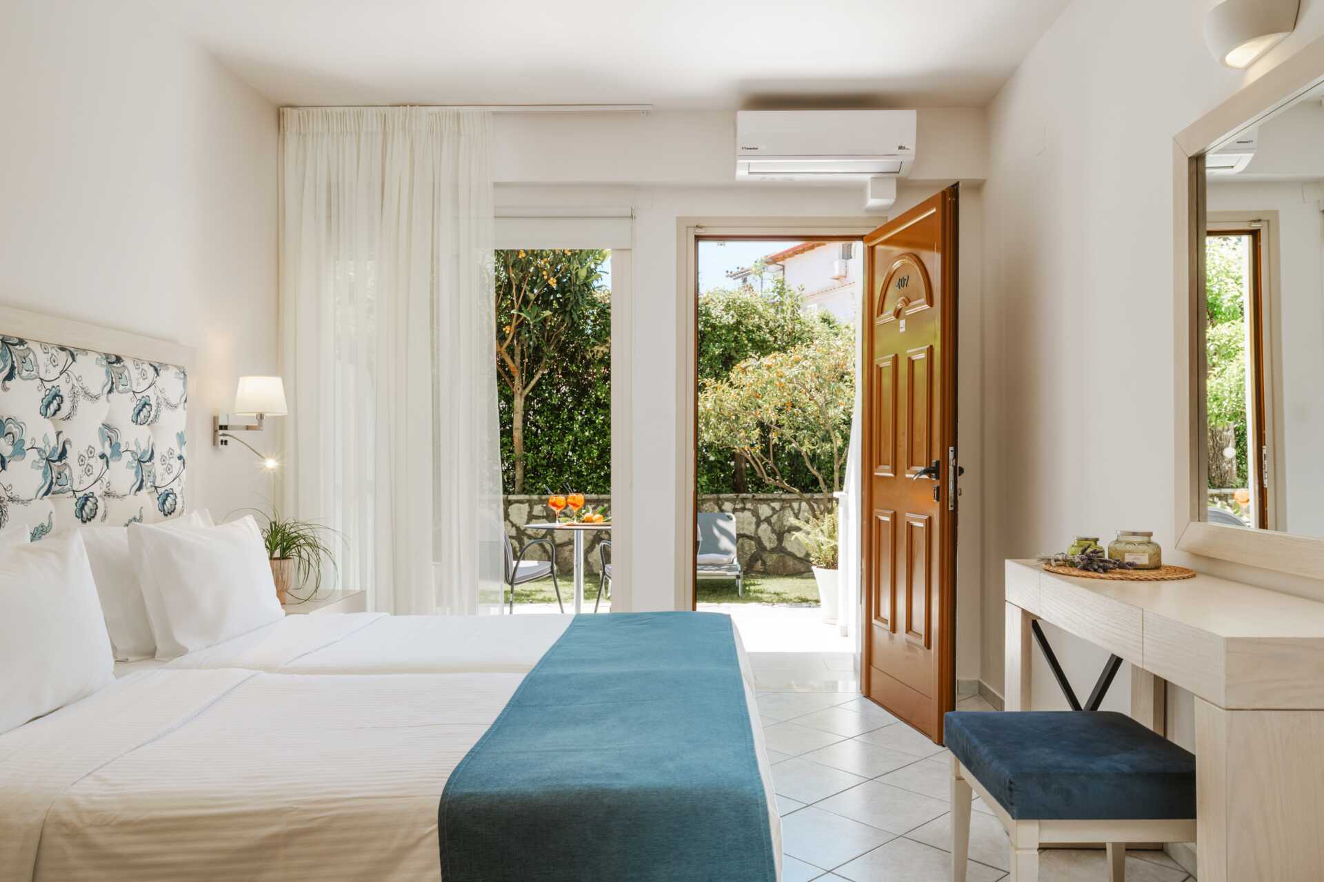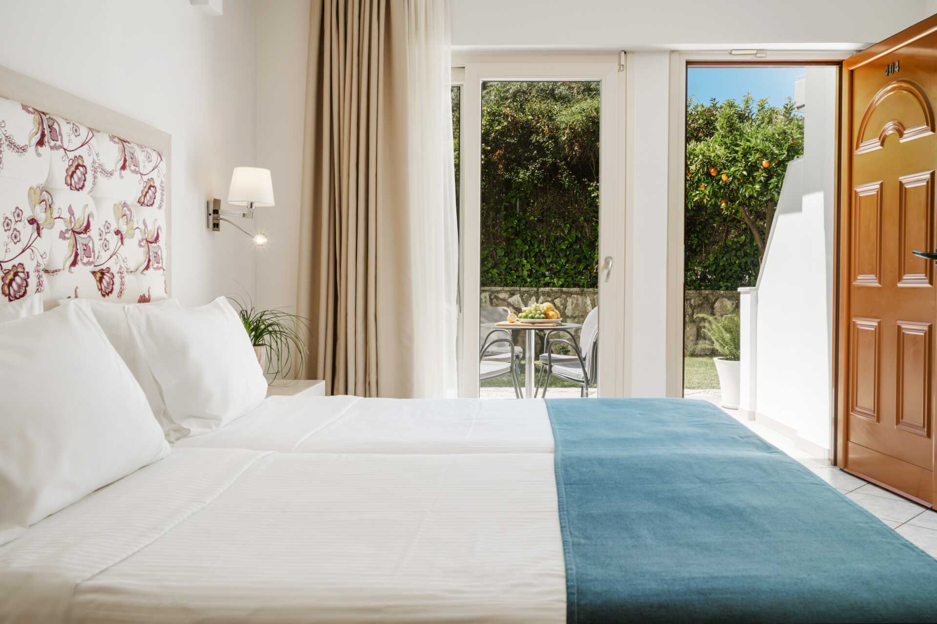 Dubbelrum med balkong med utsikt över trädgården, bergen eller staden. En dubbelsäng eller två enkelsängar. Wifi och luftkonditionering ingår. Deponering mot avgift. Kylskåp. Vattenkokare. Tv med internationella kanaler. Hårtork. Badrum med dusch och wc. Vissa dubbelrum har små badrum. Städning 7 ggr/vecka.