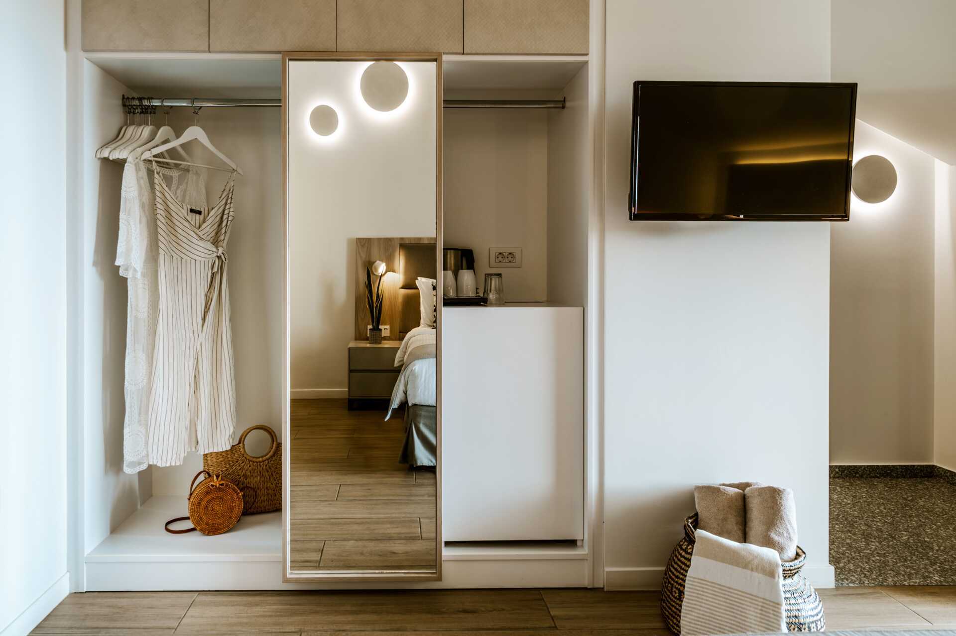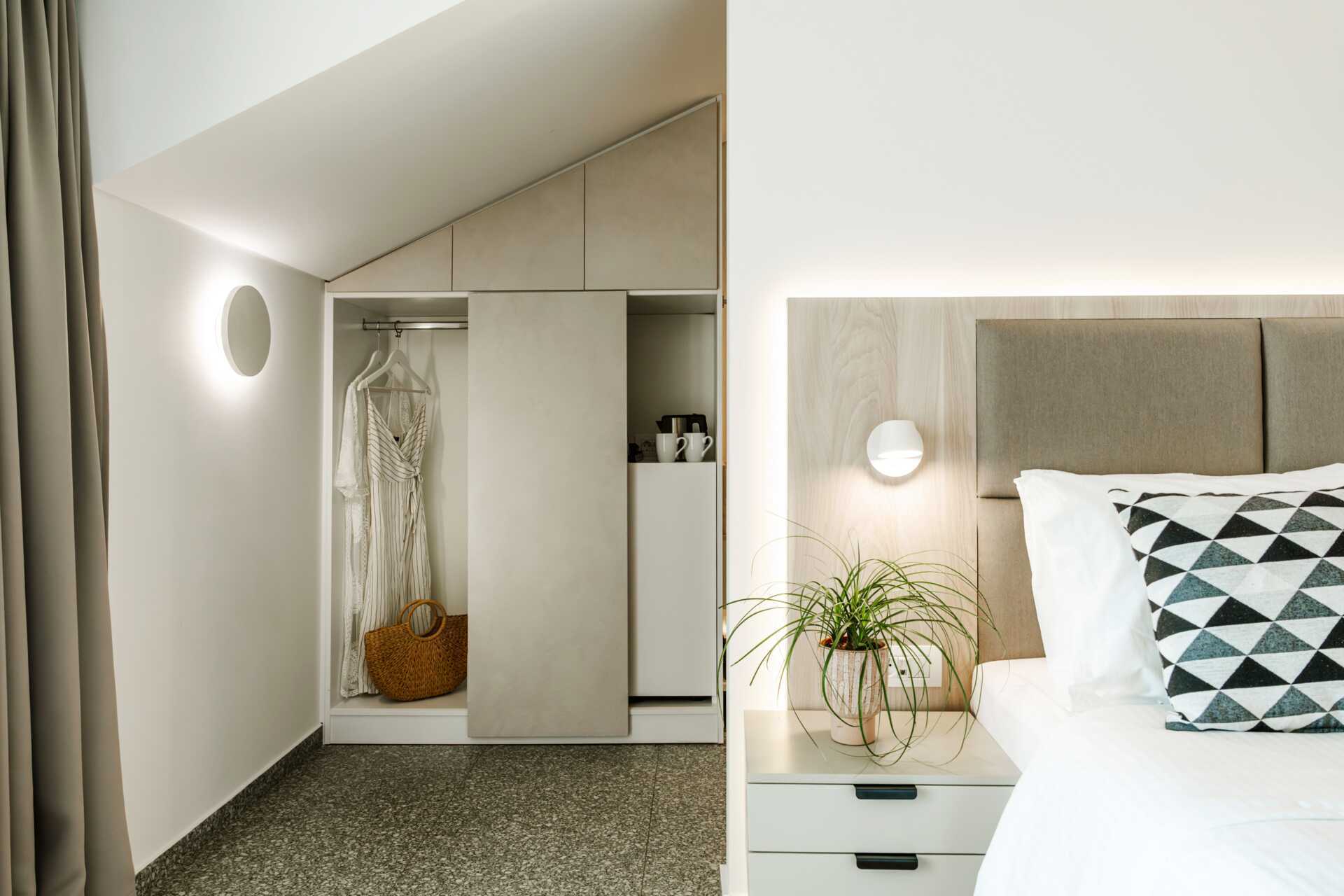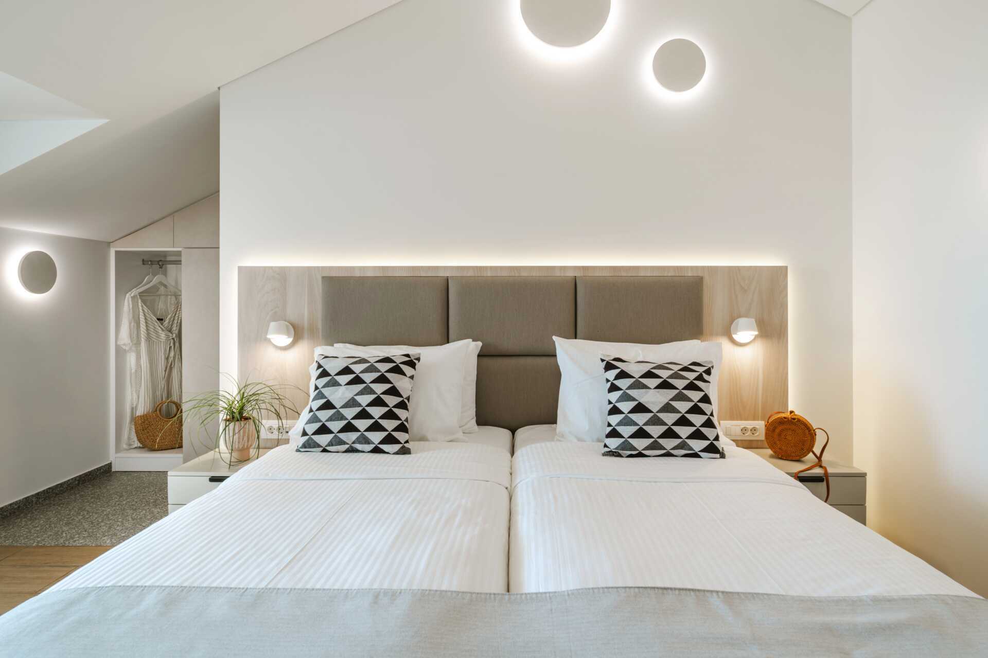 Dubbelrum med balkong med utsikt över trädgården, bergen eller staden. En dubbelsäng eller två enkelsängar. Wifi och luftkonditionering ingår. Deponering mot avgift. Kylskåp. Vattenkokare. Tv med internationella kanaler. Hårtork. Badrum med dusch och wc. Vissa dubbelrum har små badrum. Städning 7 ggr/vecka.